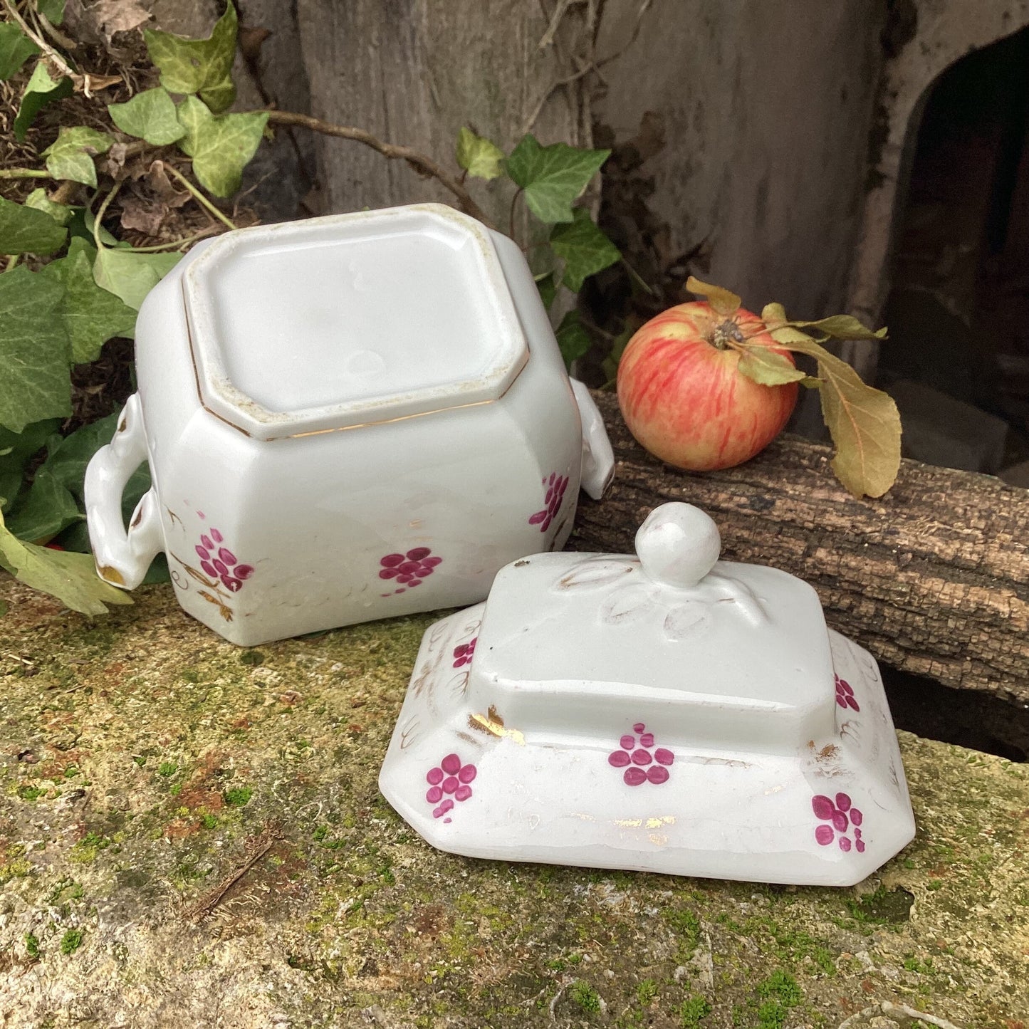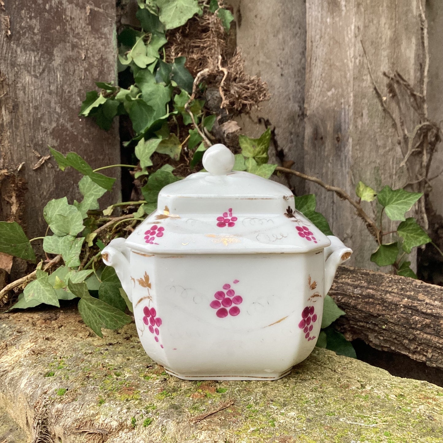 Add Antique Paris Porcelain Lidded Sugar Bowl - French Country Decor to the cart