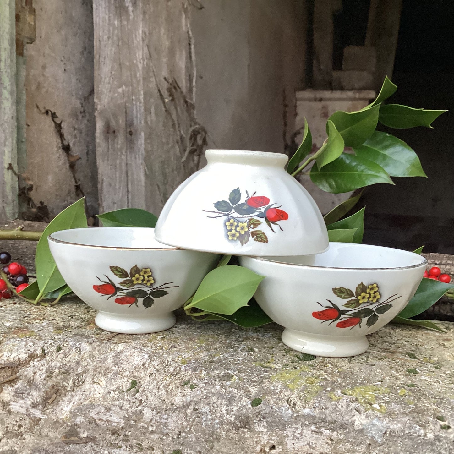 Add Vintage French Cafe Au Lait Bowls, Floral Demi-Porcelain, Set of 3 to the cart
