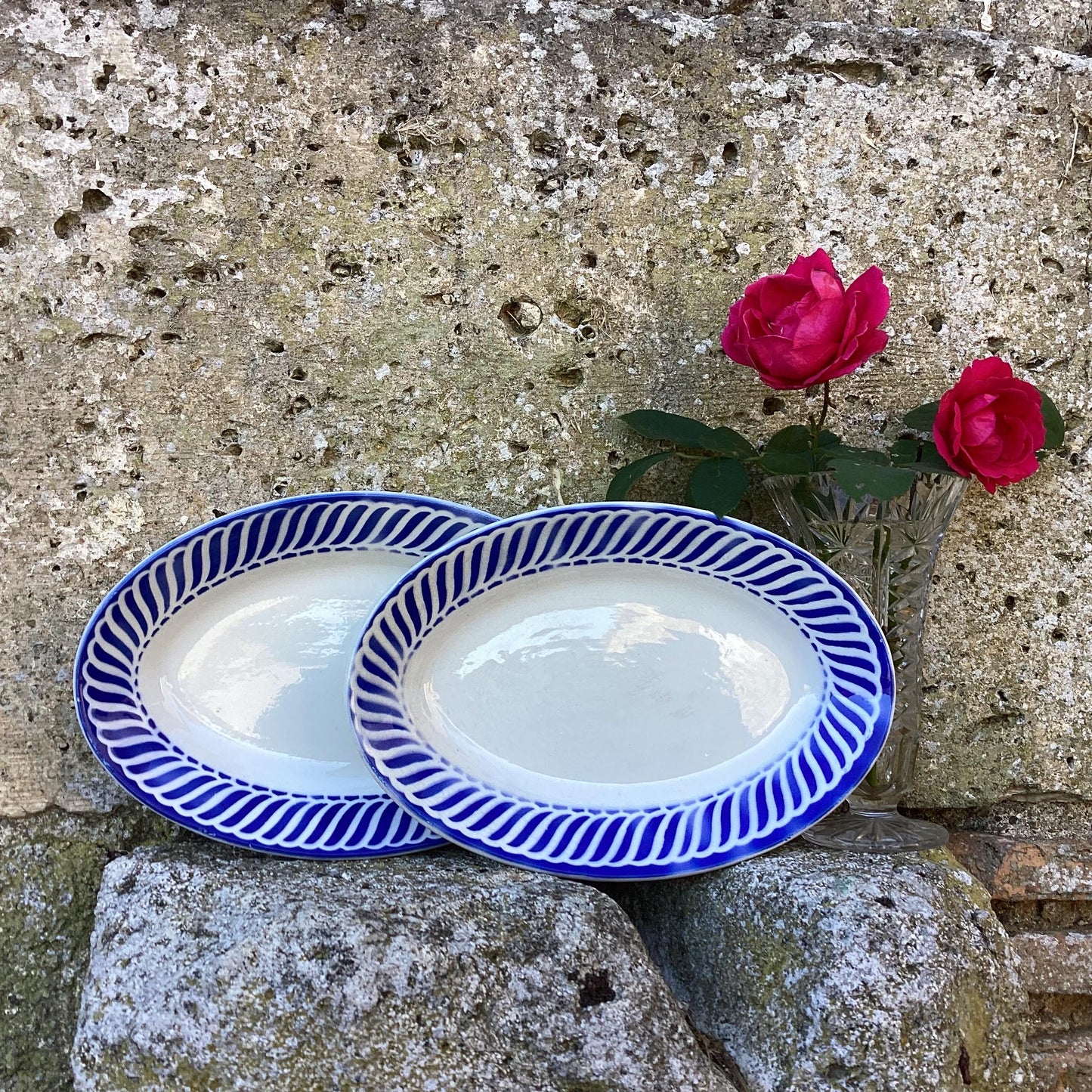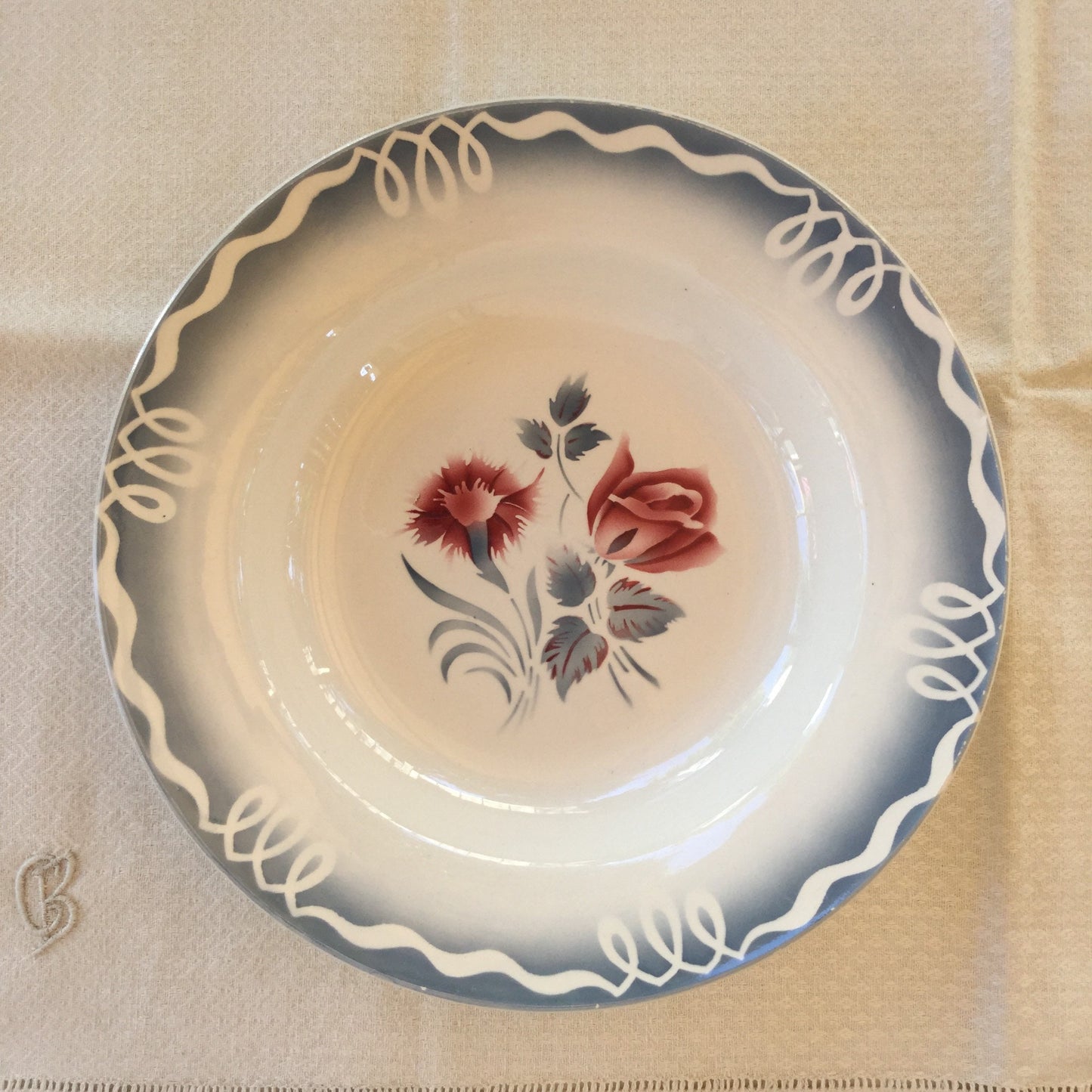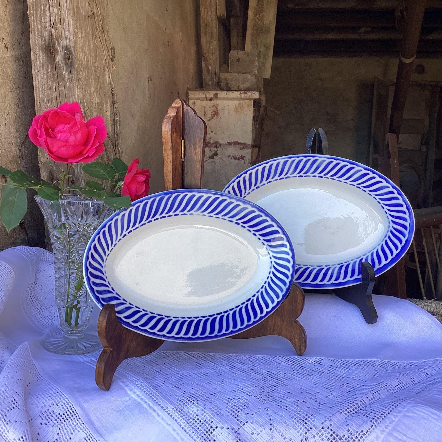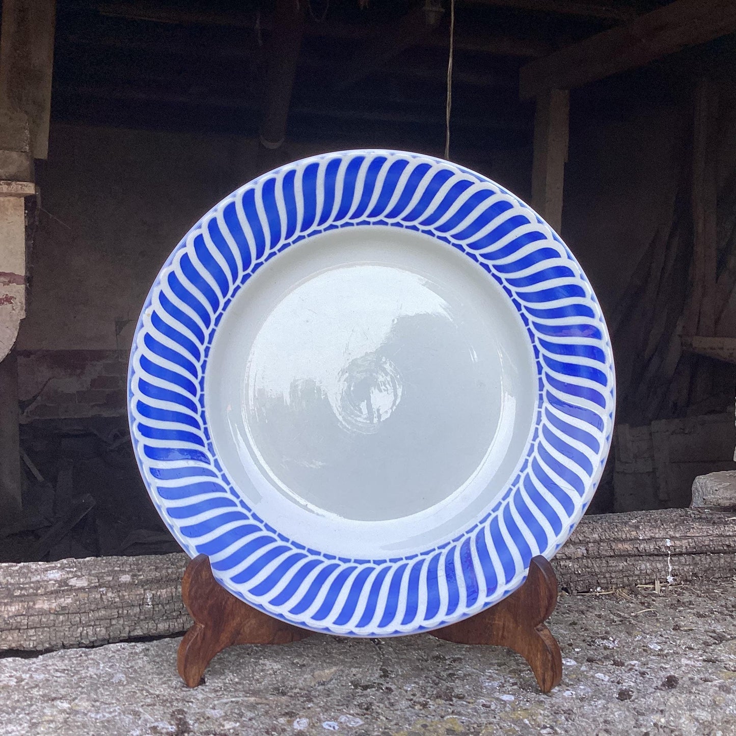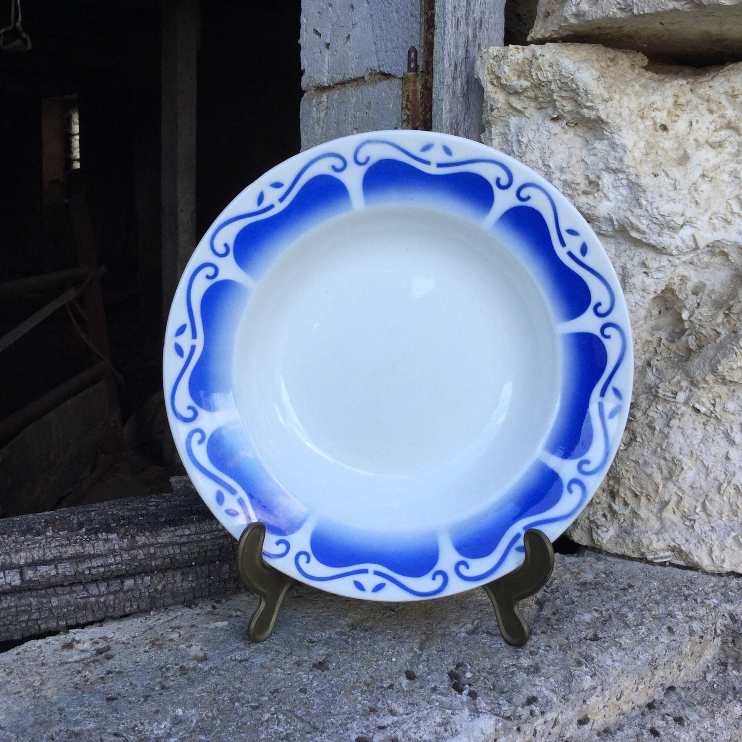 Add Vintage Jacquot Serving Plate, Digoin Sarreguemines Blue and White French Farmhouse Decor to the cart