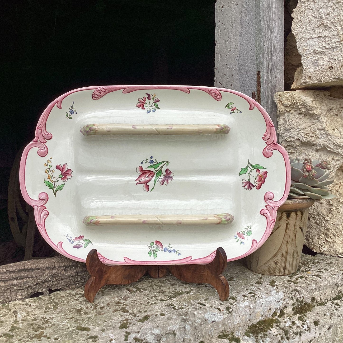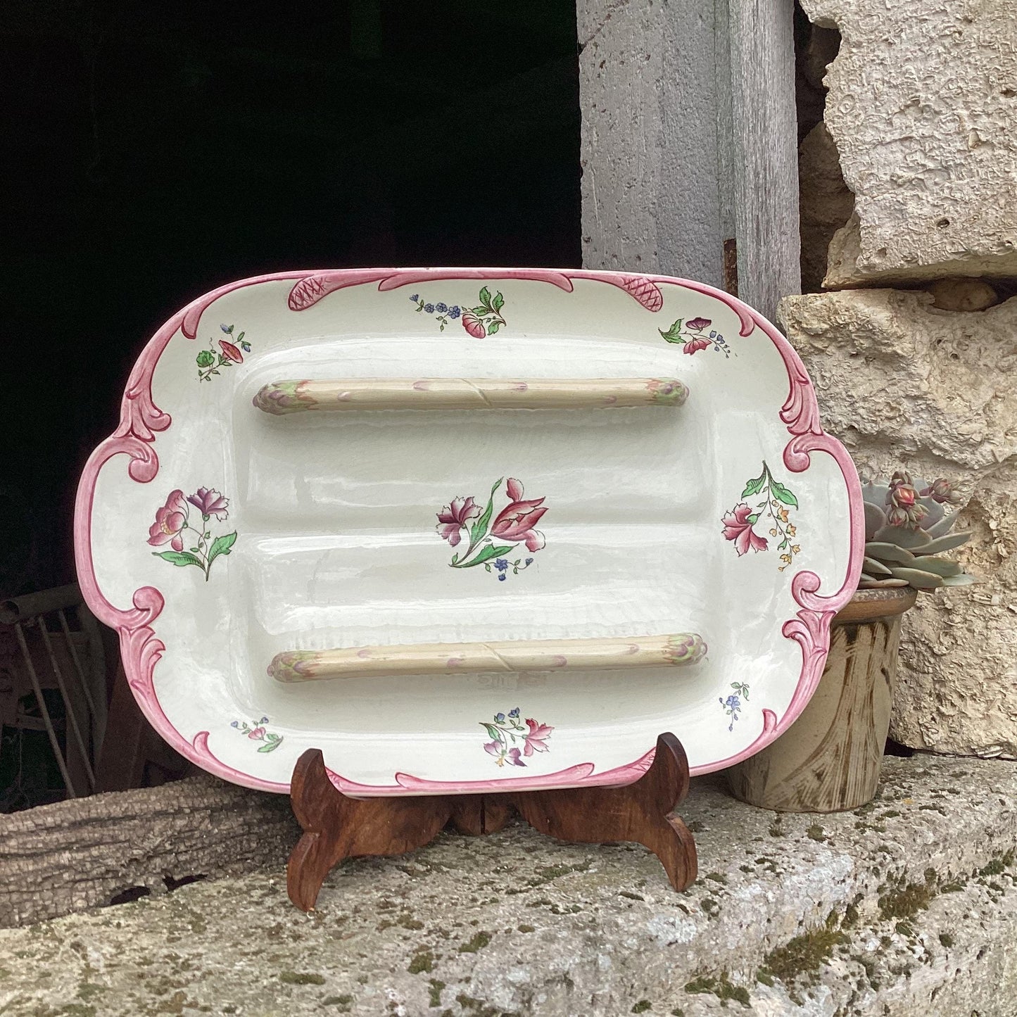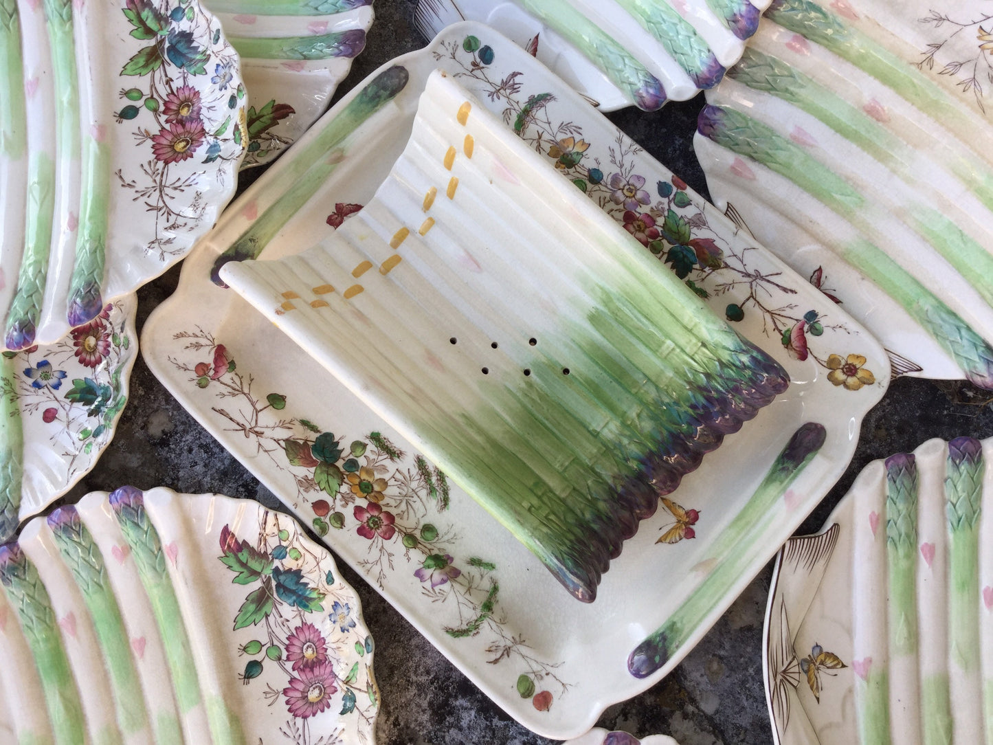 Add Antique Sarreguemines Asparagus Dish, Hand-Painted Majolica Serving Plate to the cart