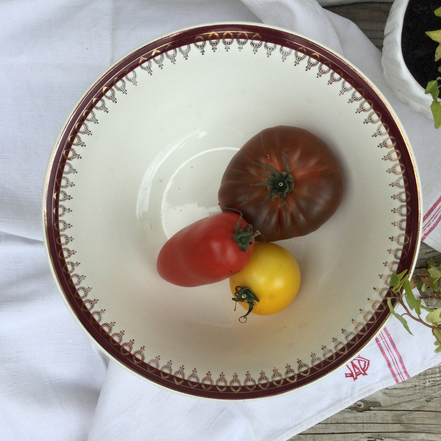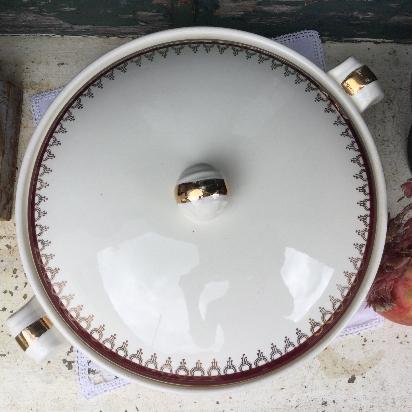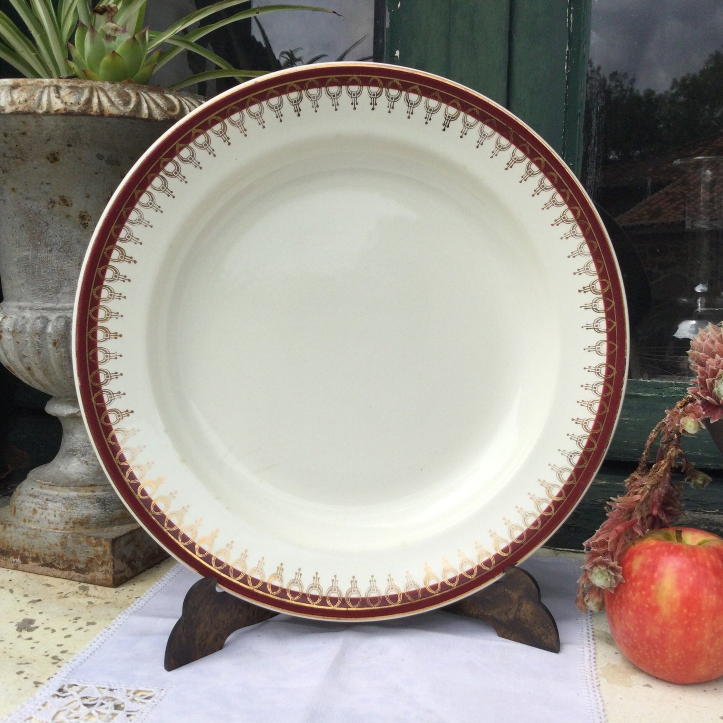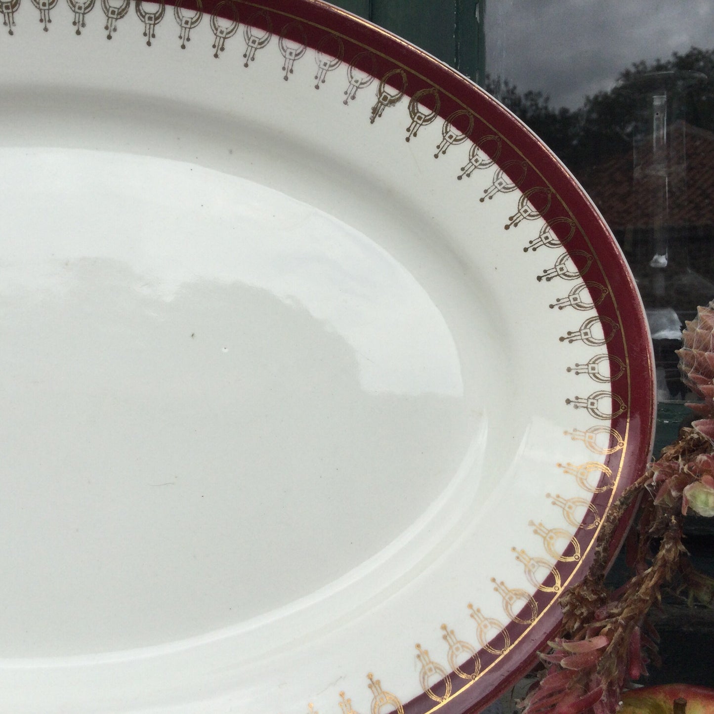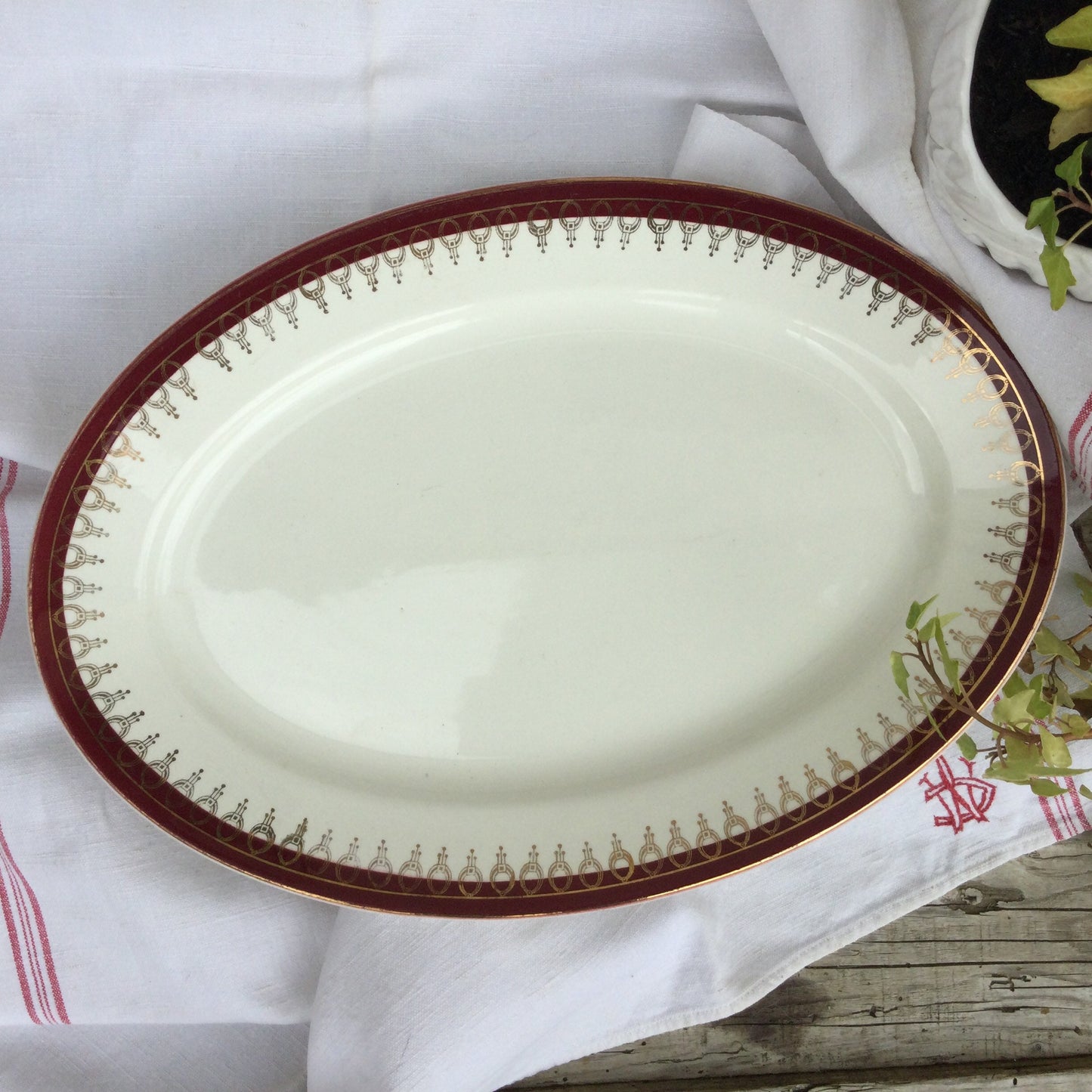 Add 1920s Salins Porcelain Serving Platter, Lima Rouge Design, Bordeaux Red & Gold to the cart