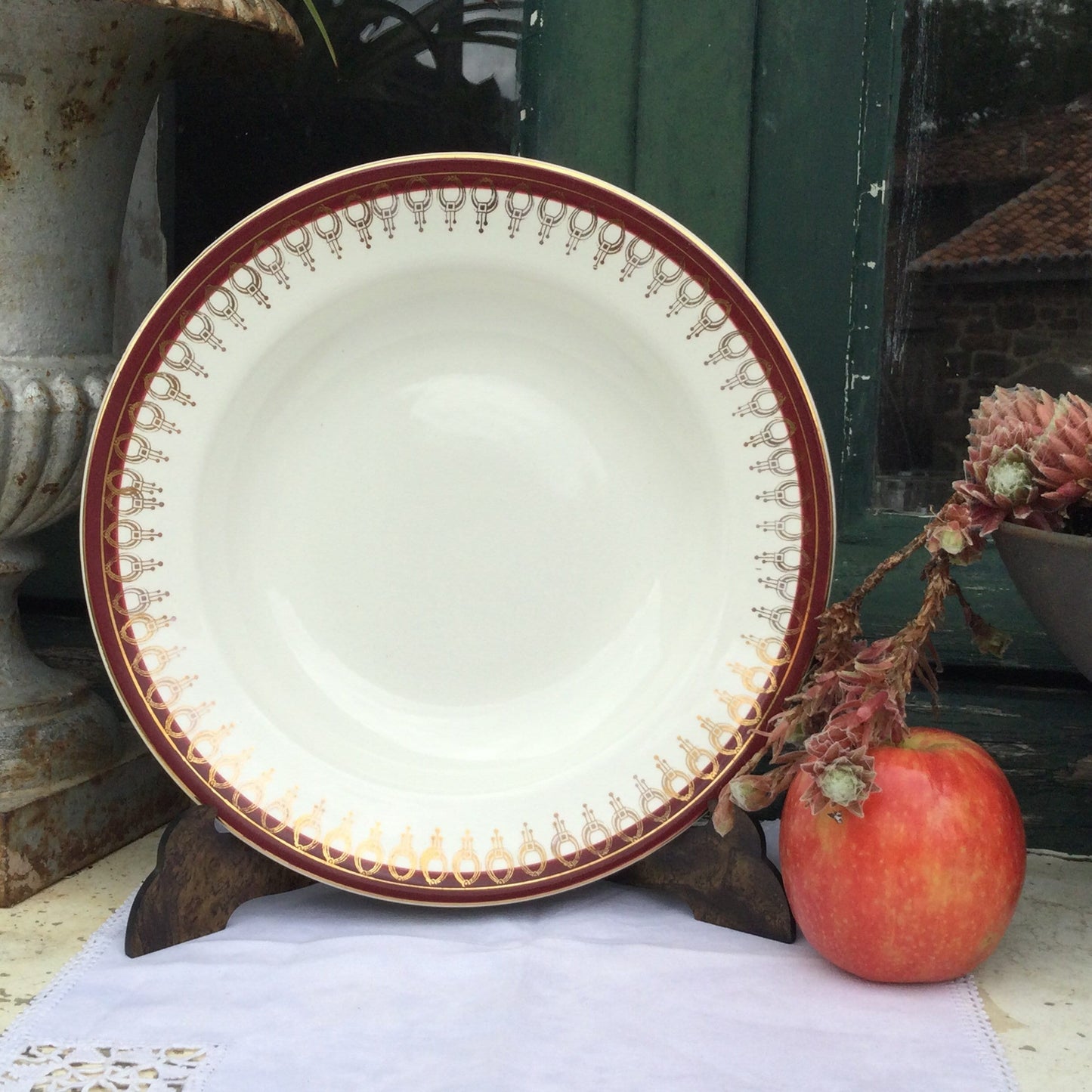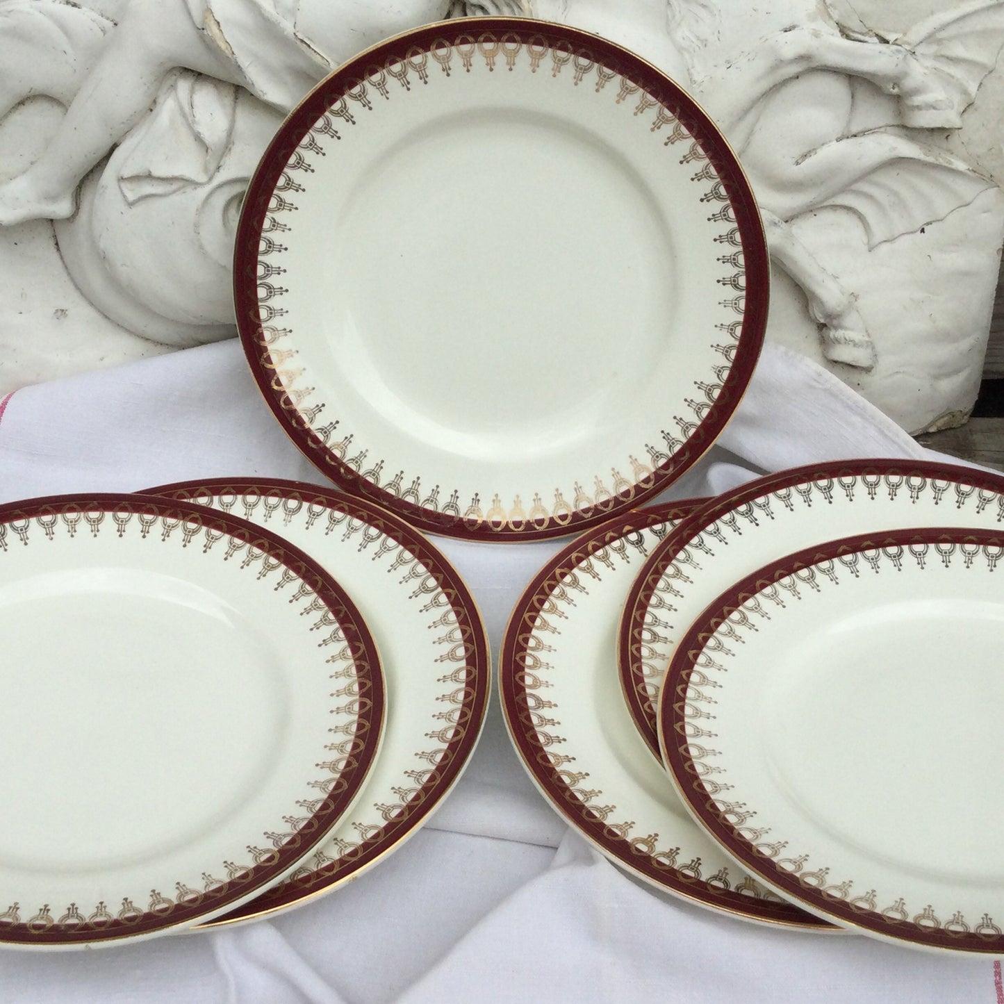 Add Vintage Salins Porcelain Dinner Plates (Set of 6), Lima Rouge Bordeaux Gold to the cart
