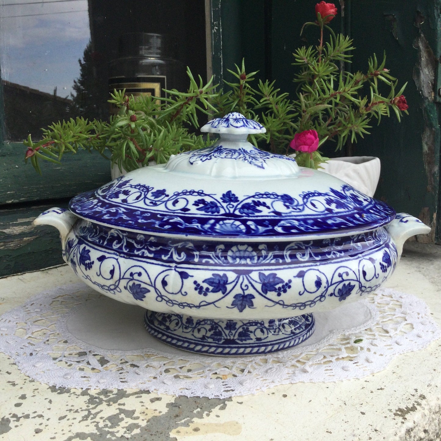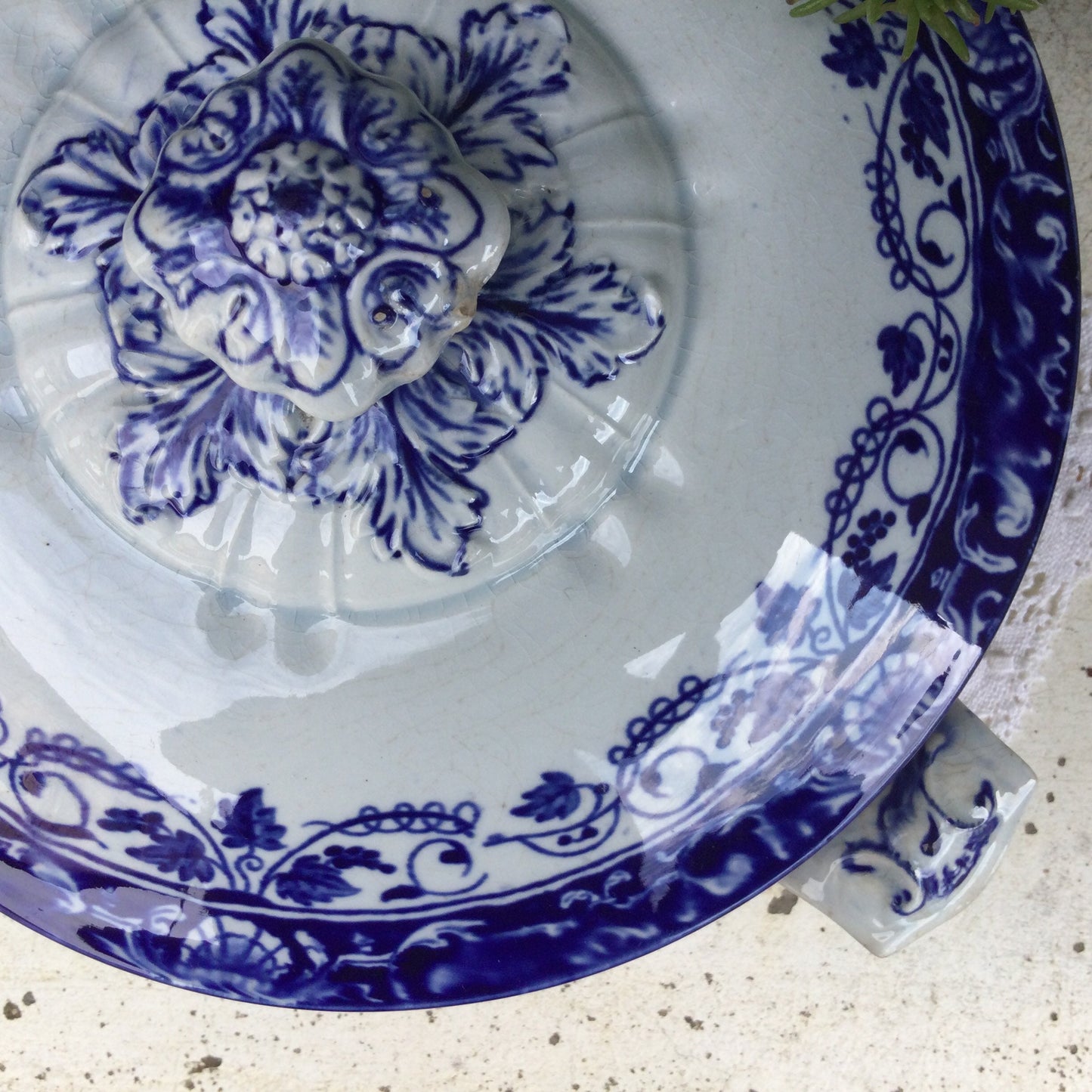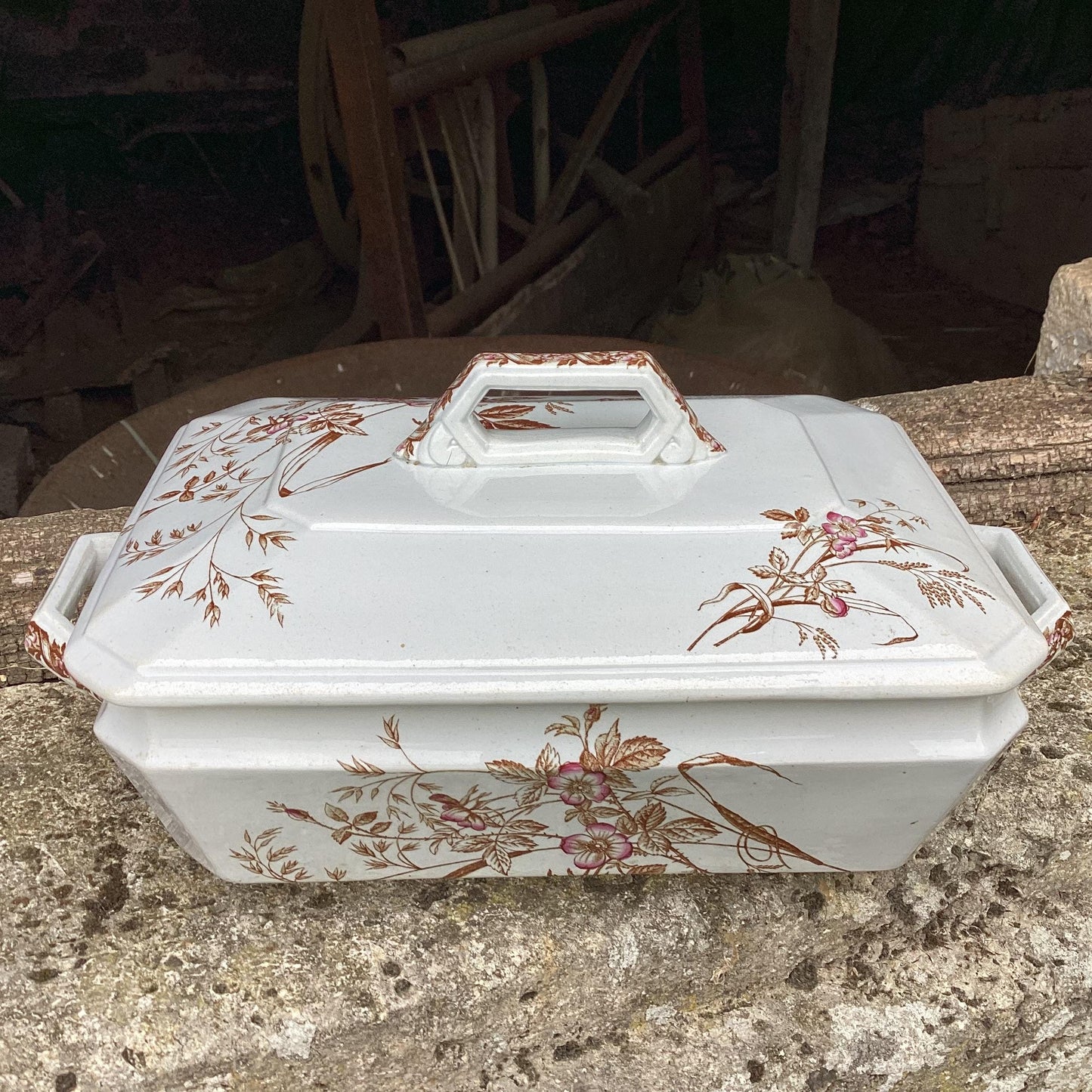 Add Antique Carouge Faïence Lidded Serving Dish, Wild Rose Design to the cart