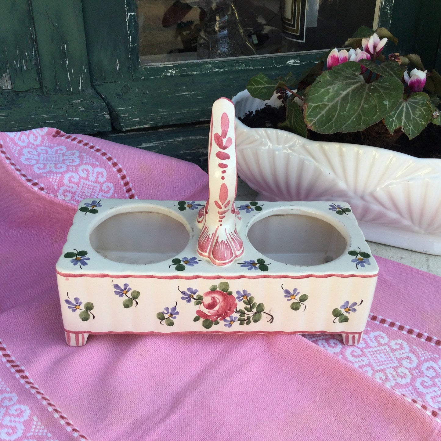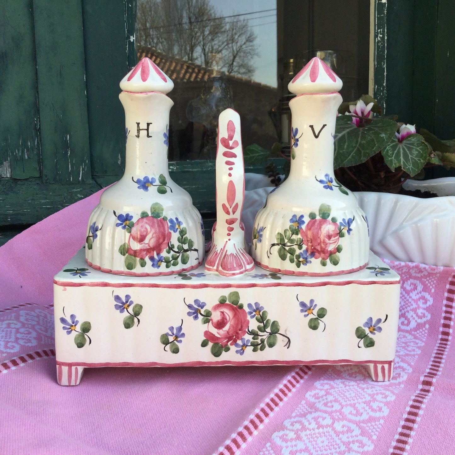 Add Vintage French Pink Ceramic Oil and Vinegar caddy to the cart