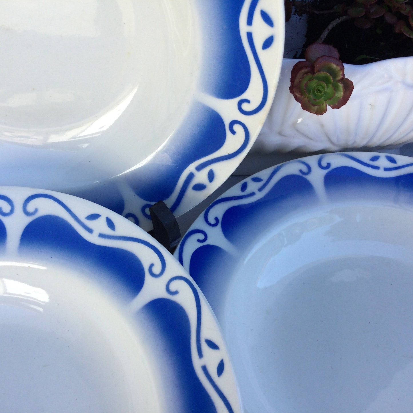 Add Set of 6 Digoin Sarreguemines Soup Bowls, Blue White French Farmhouse Tableware to the cart