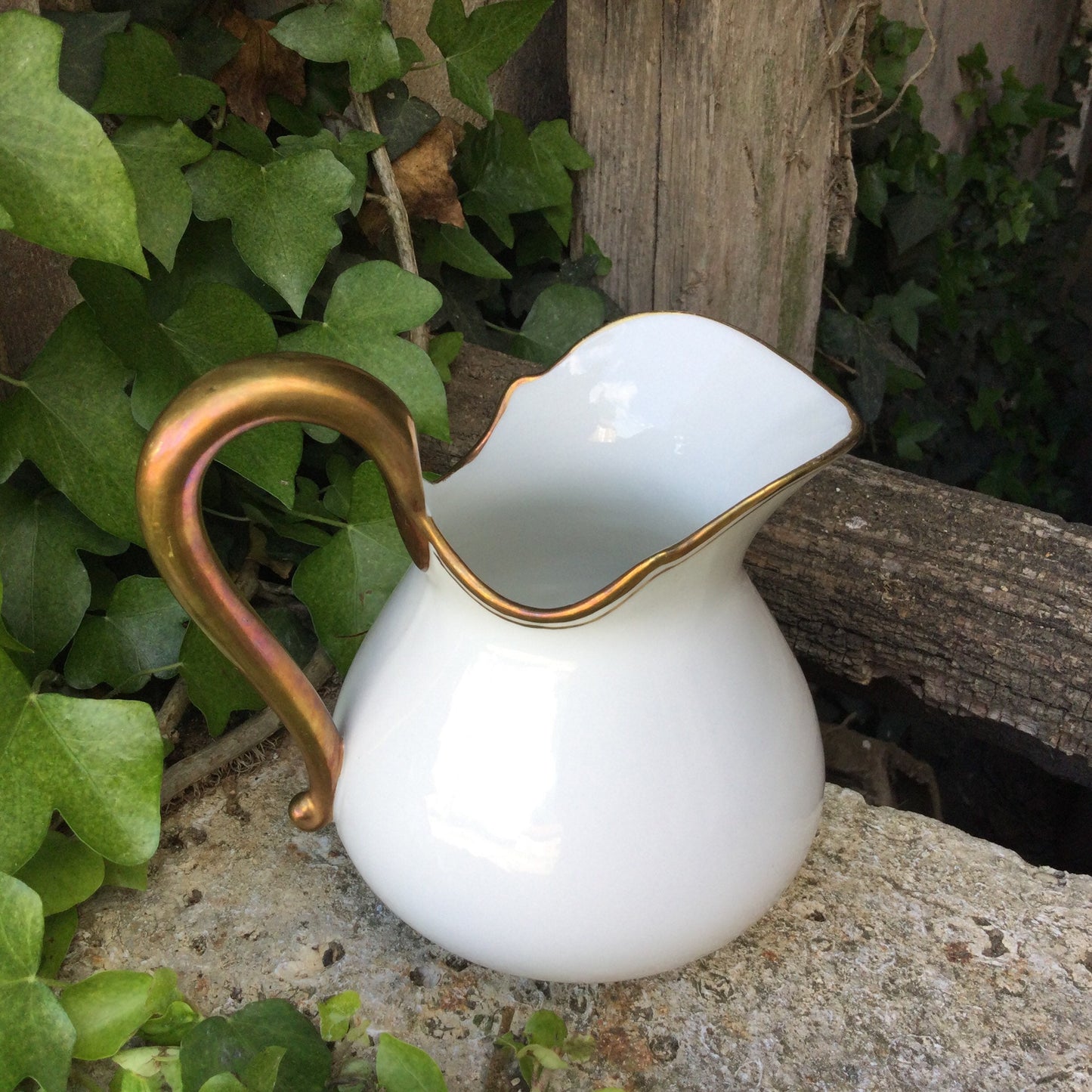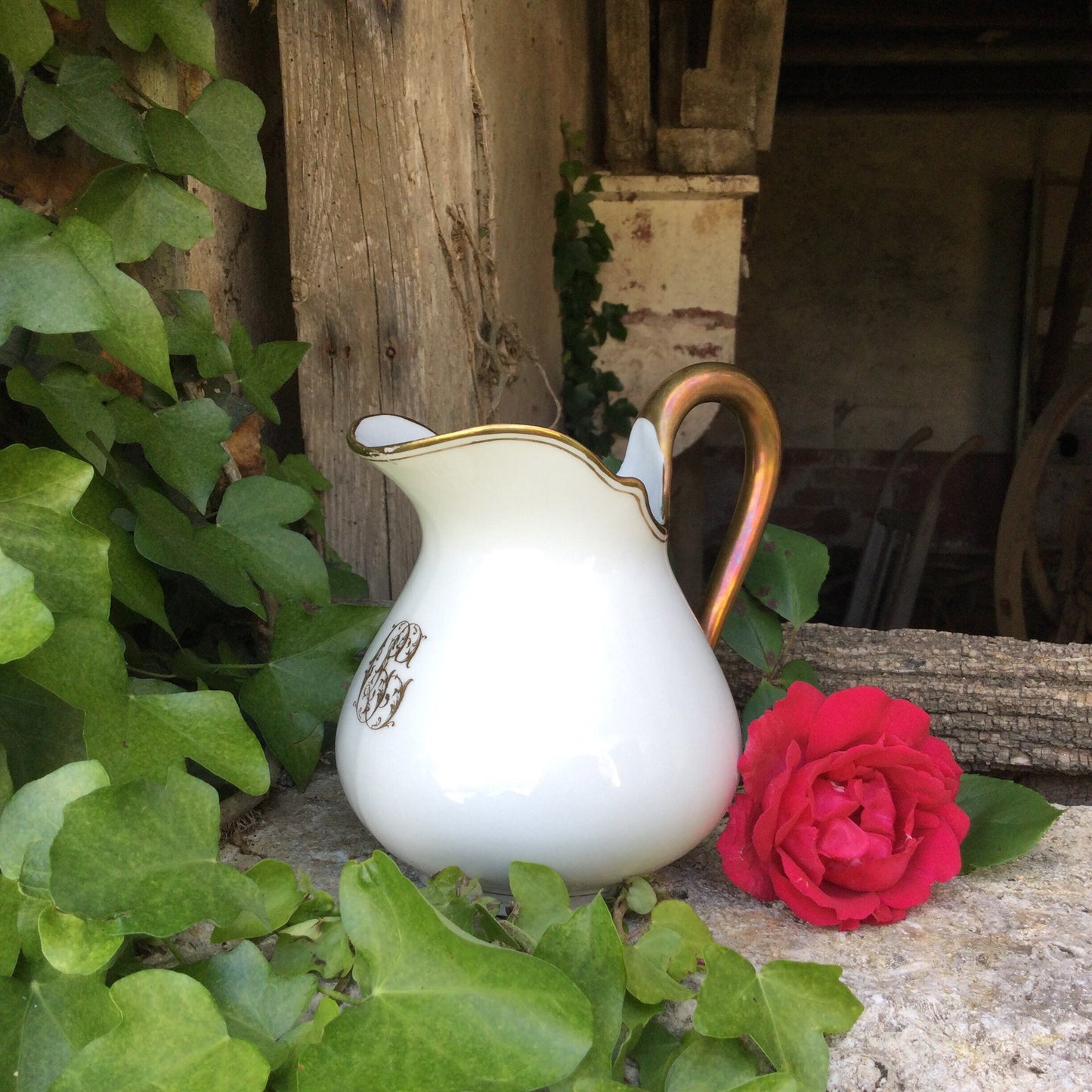 Add 1920's Limoges Porcelain Creamer: French Country Chic Gold Decor to the cart
