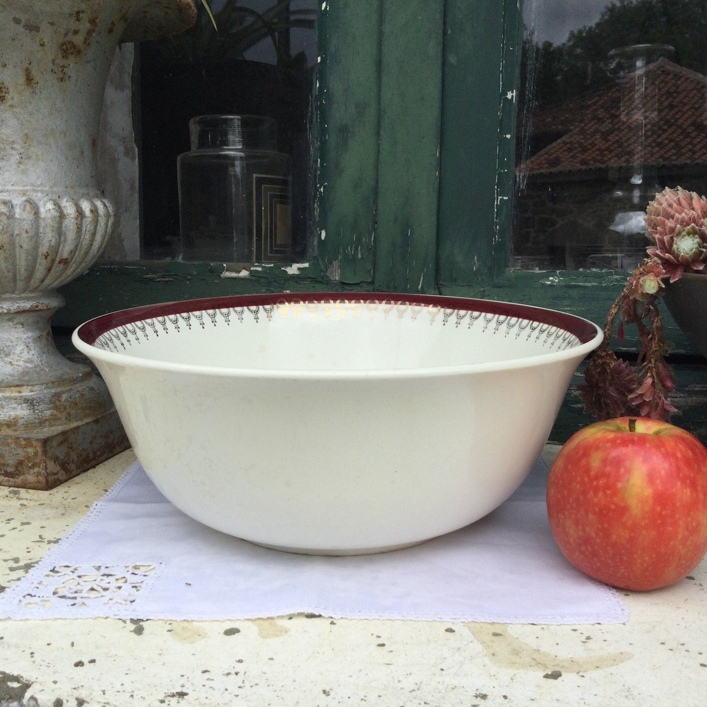 Add 1920s Salins Porcelain Bowl: Lima Rouge, Bordeaux Red & Gold to the cart
