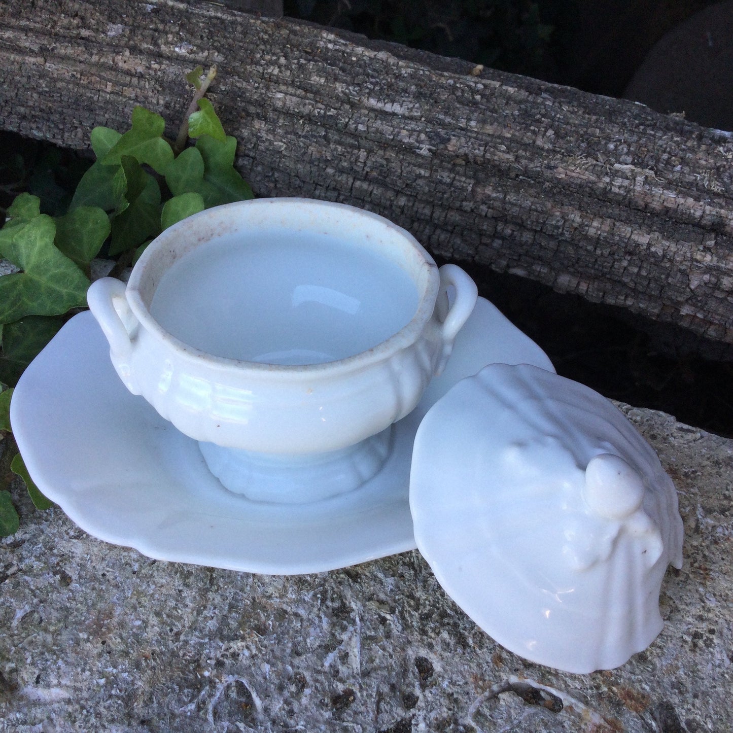 Add Vintage French Porcelain Mustard Pot with Silver Spoon, Country Decor to the cart