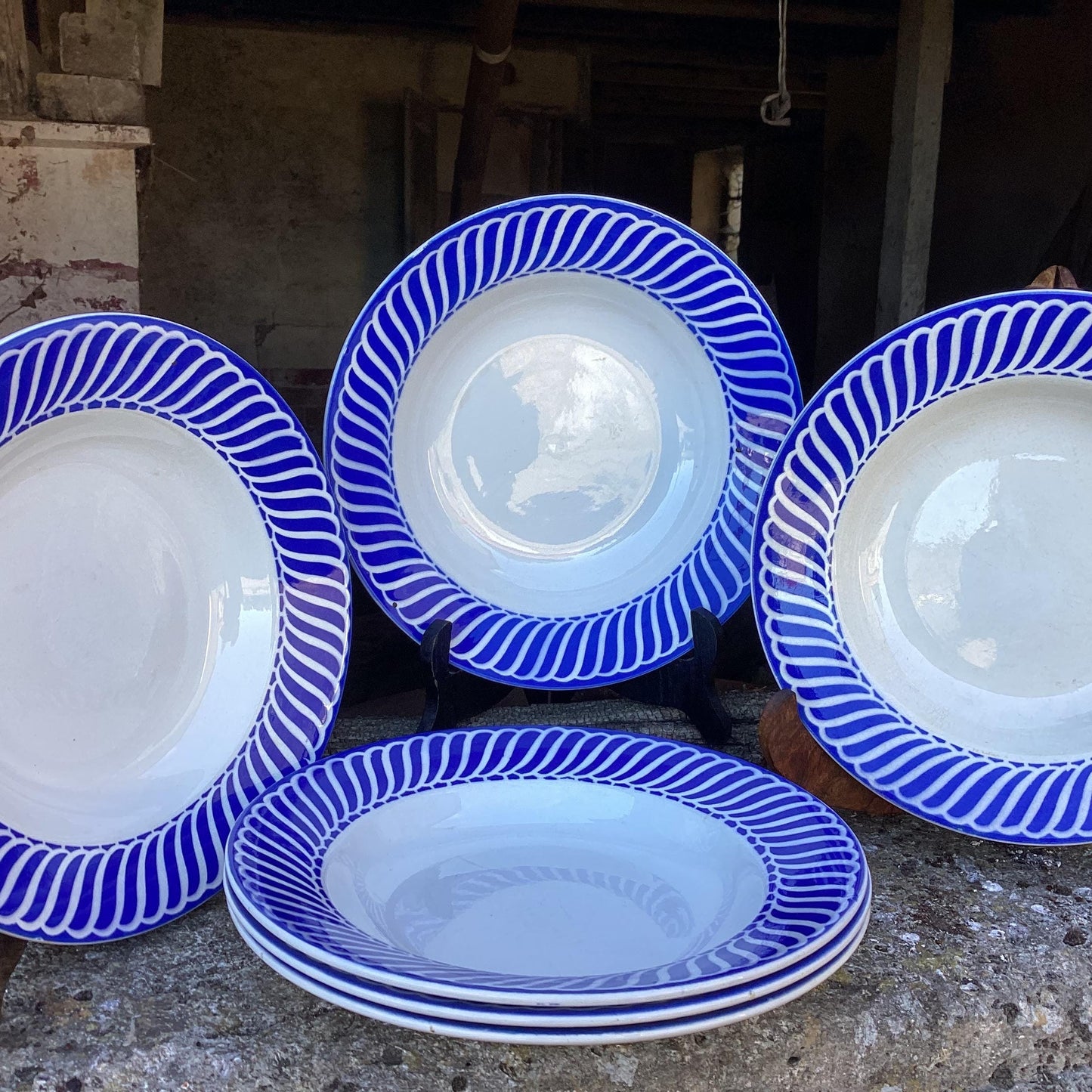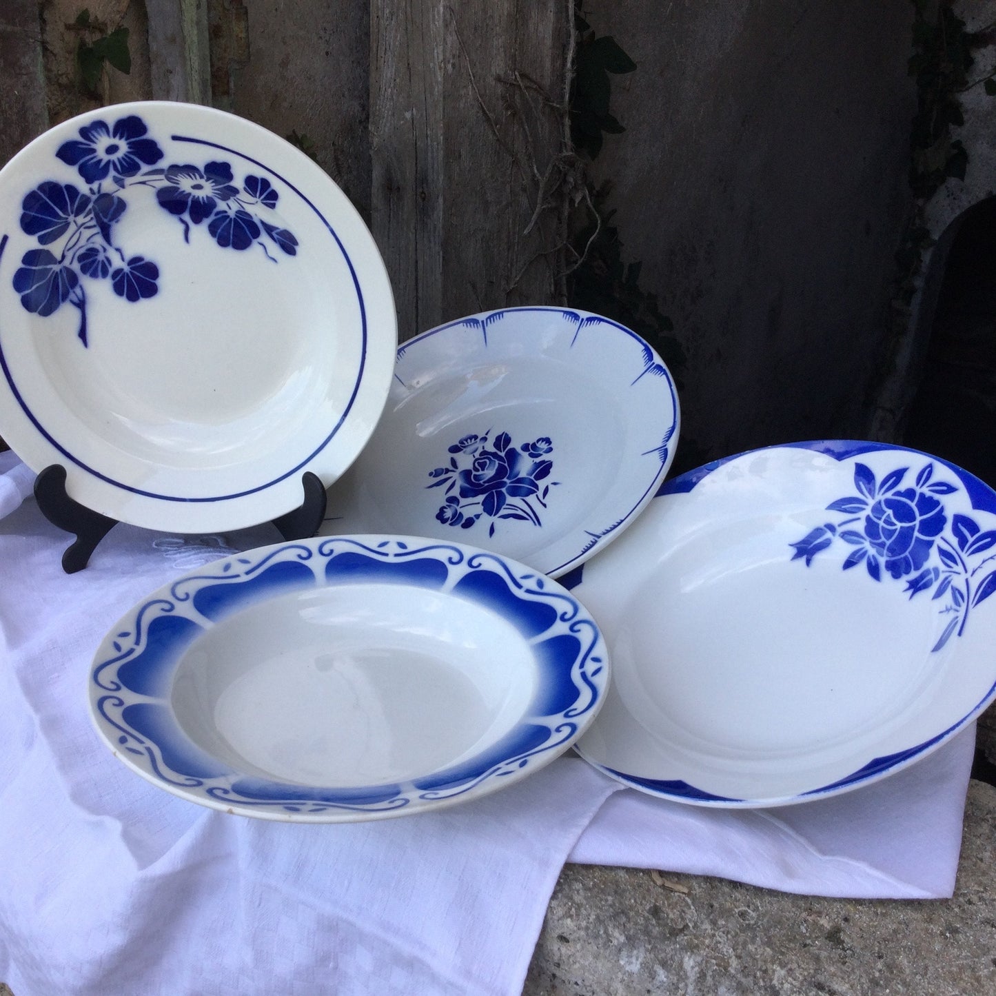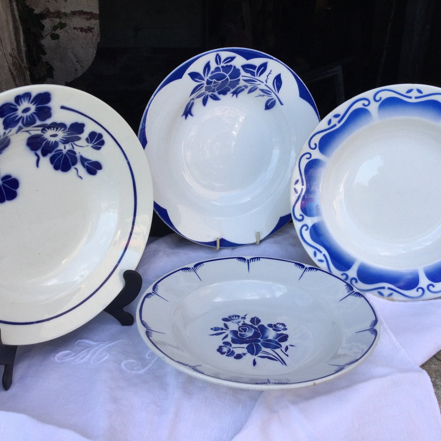 Add 4 Vintage French Soup Bowls, Blue and White Faïence Tableware to the cart