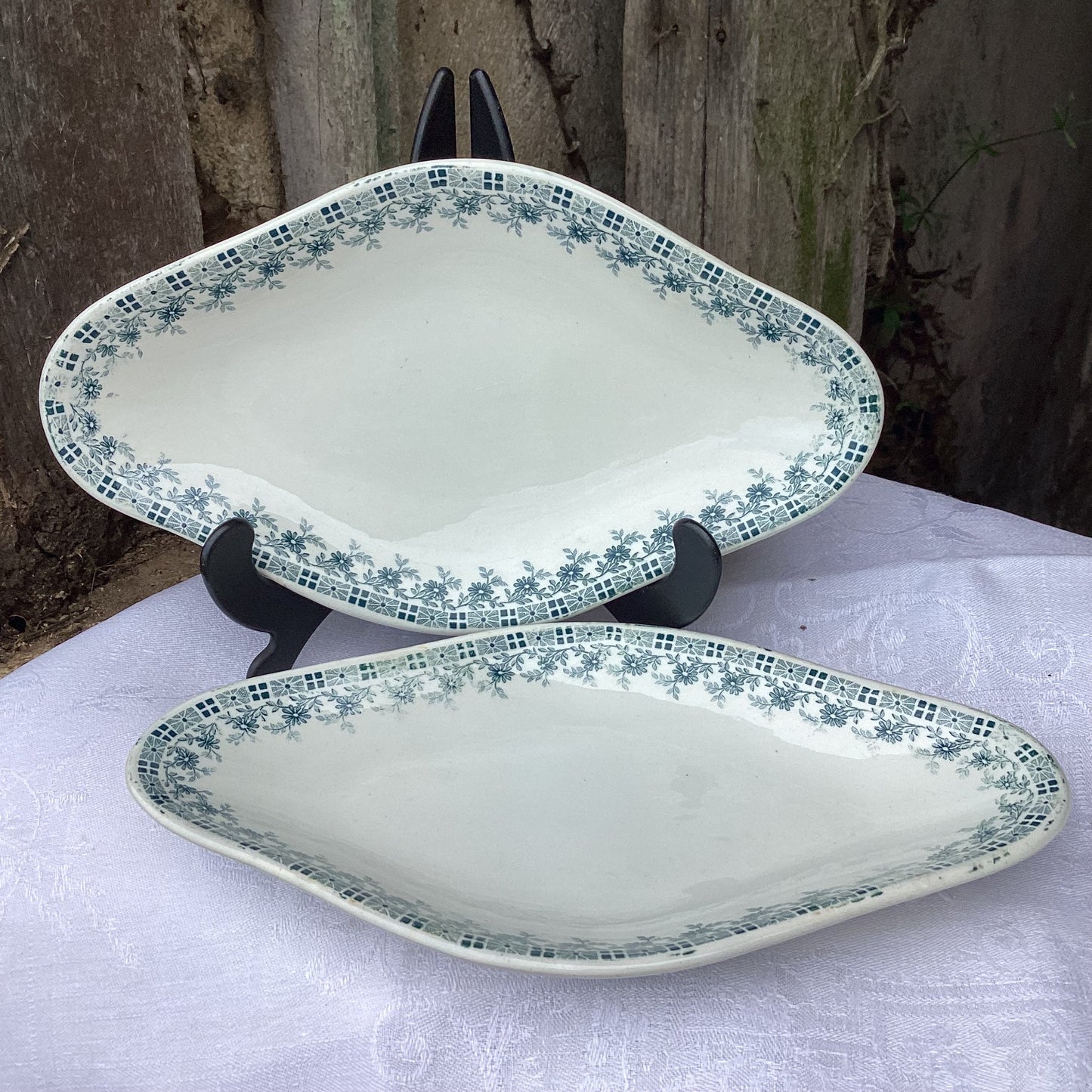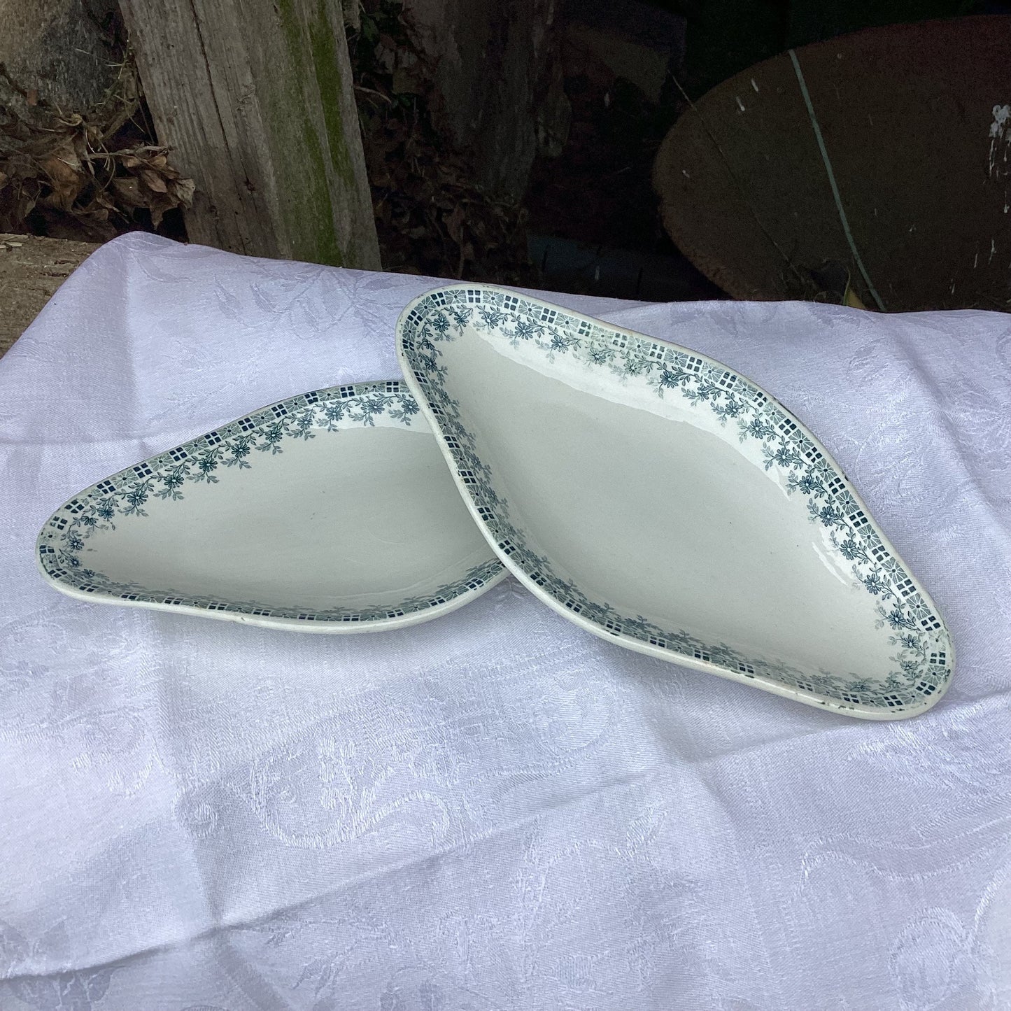 Add French Vintage Diamond Relish Dishes, Sea Green Floral Frieze, Set of 2 to the cart