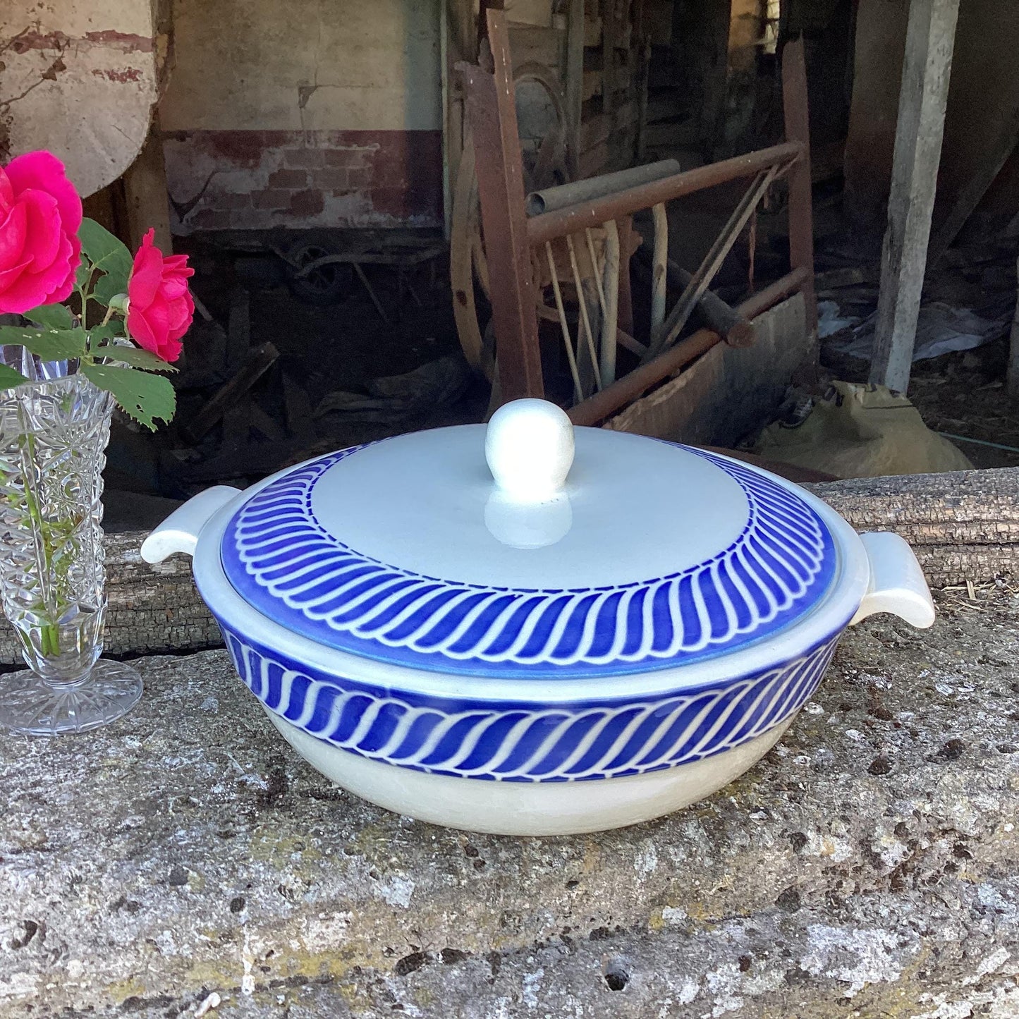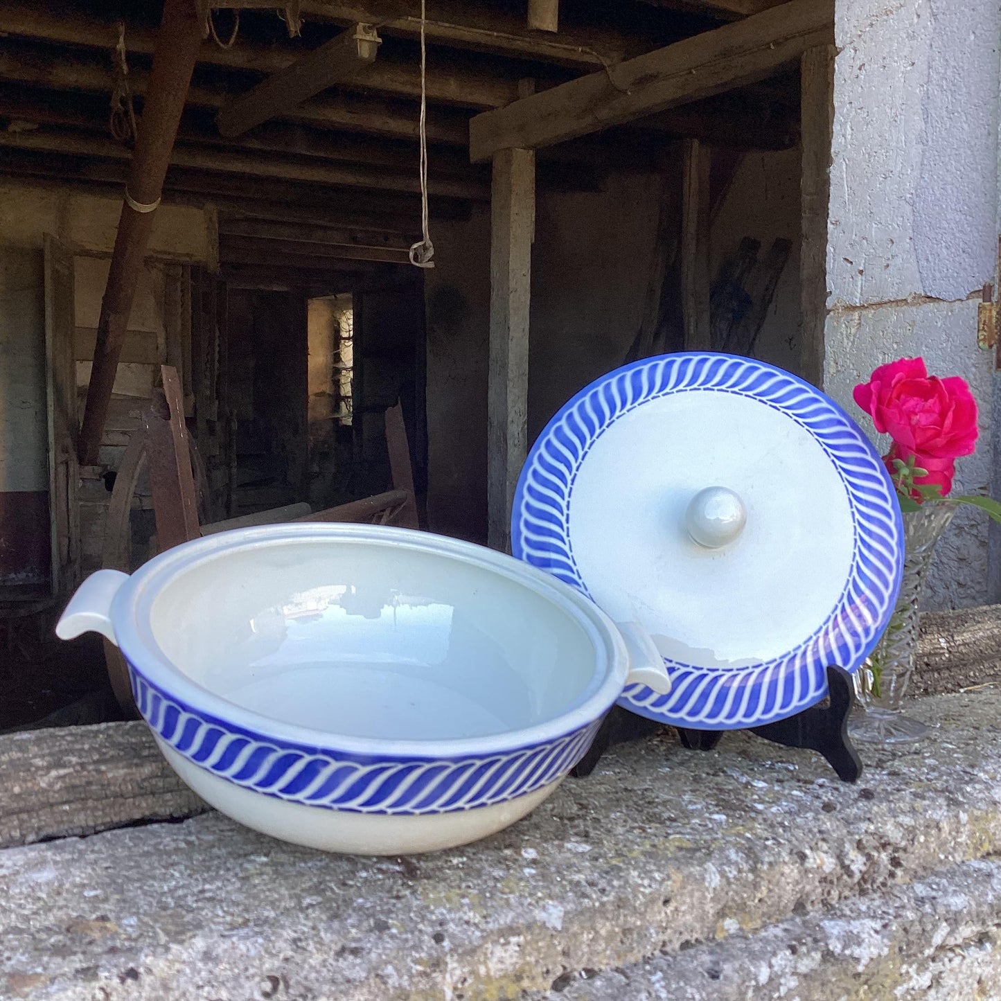 Add Vintage Digoin Sarreguemines Covered Bowl, Jacquot Blue Design to the cart