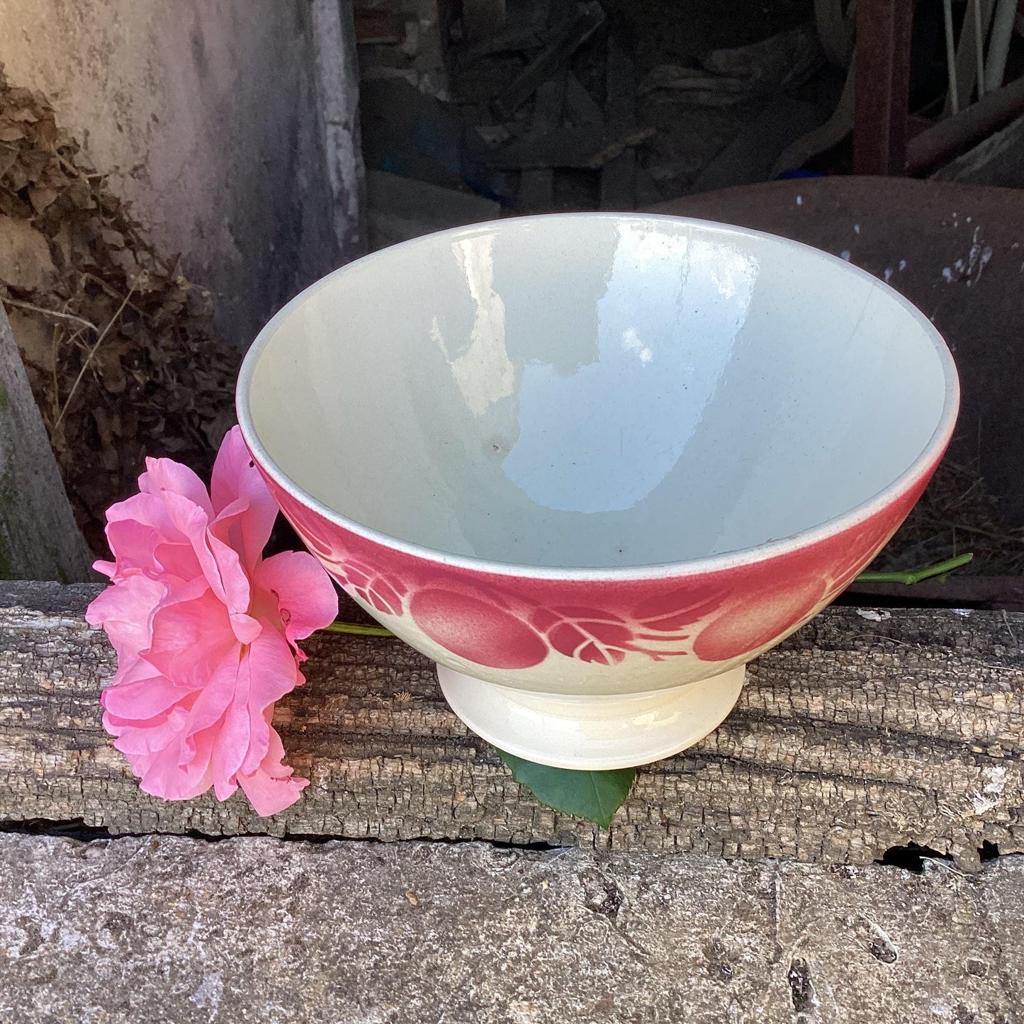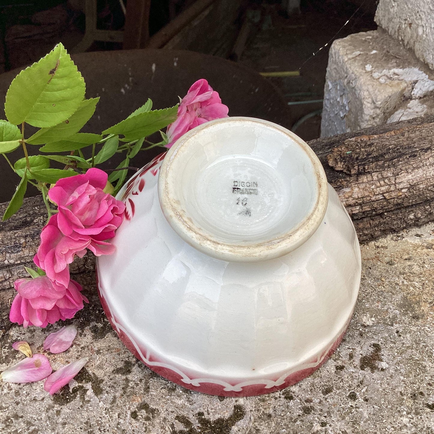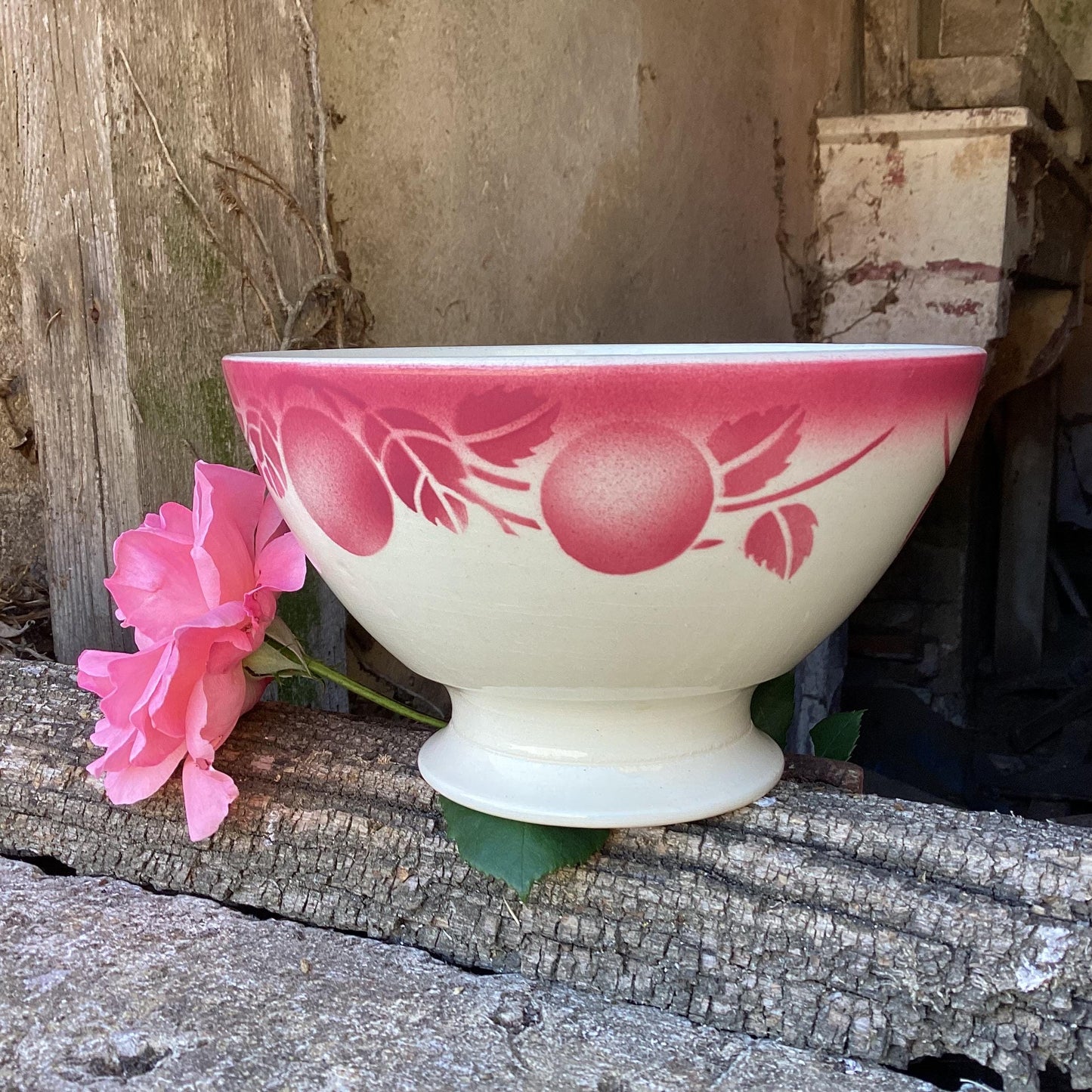 Add Antique Digoin Café au Lait Bowl: French country red rose faïence to the cart