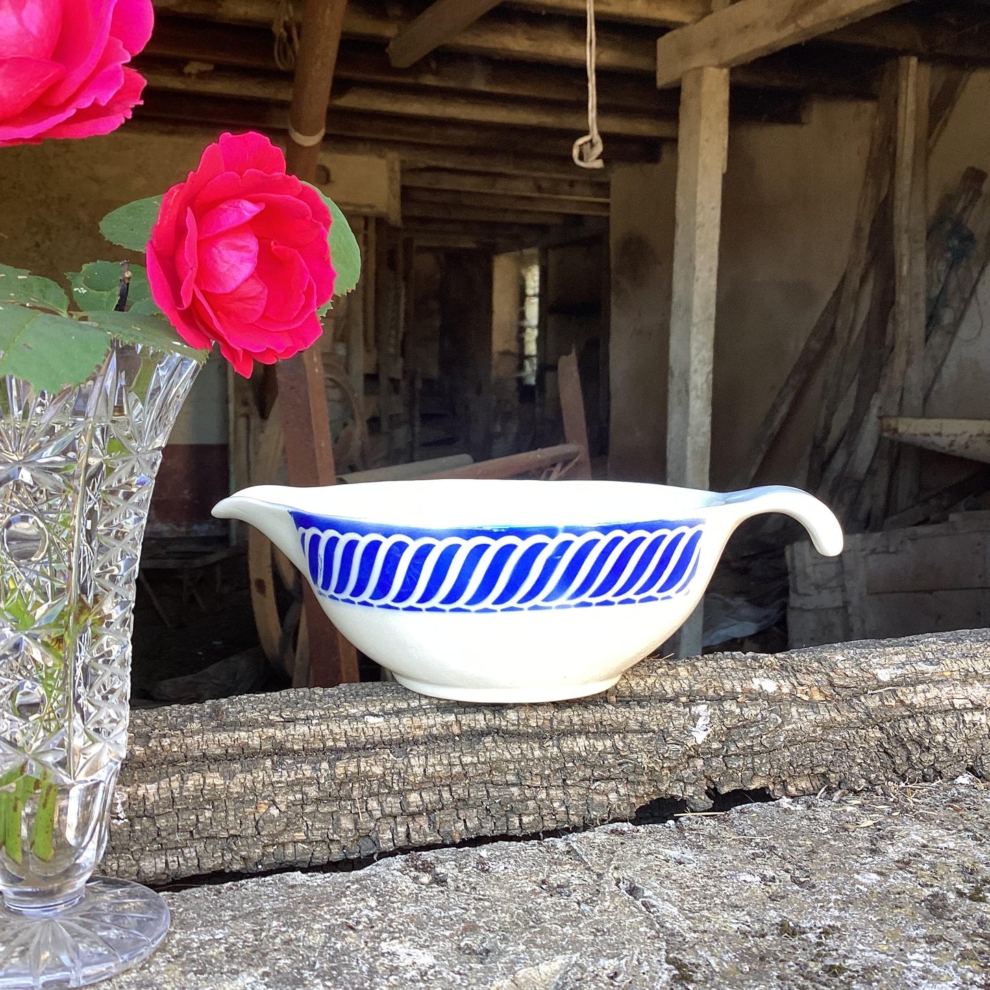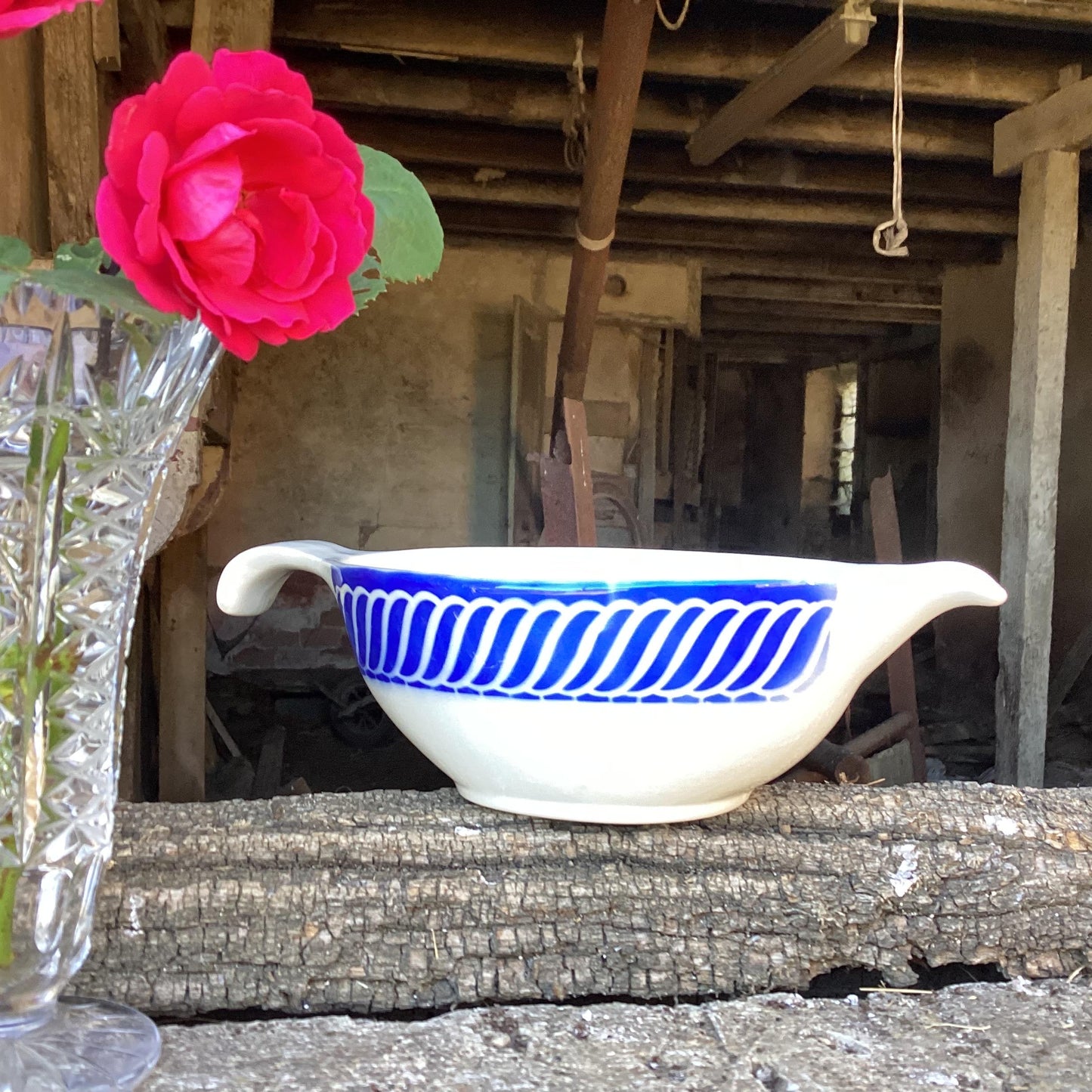 Add Vintage Digoin Sarreguemines Gravy Boat, Jacquot Blue Design to the cart