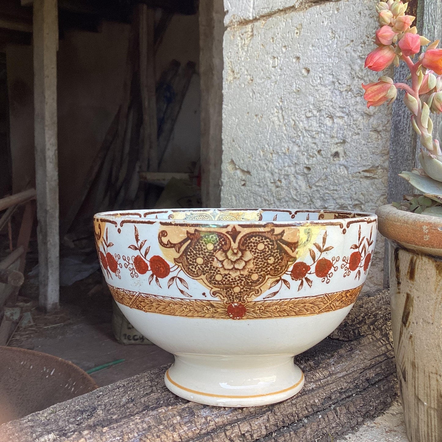 Add Antique Badonviller Cafe au Lait Bowl, Pink French Faience to the cart