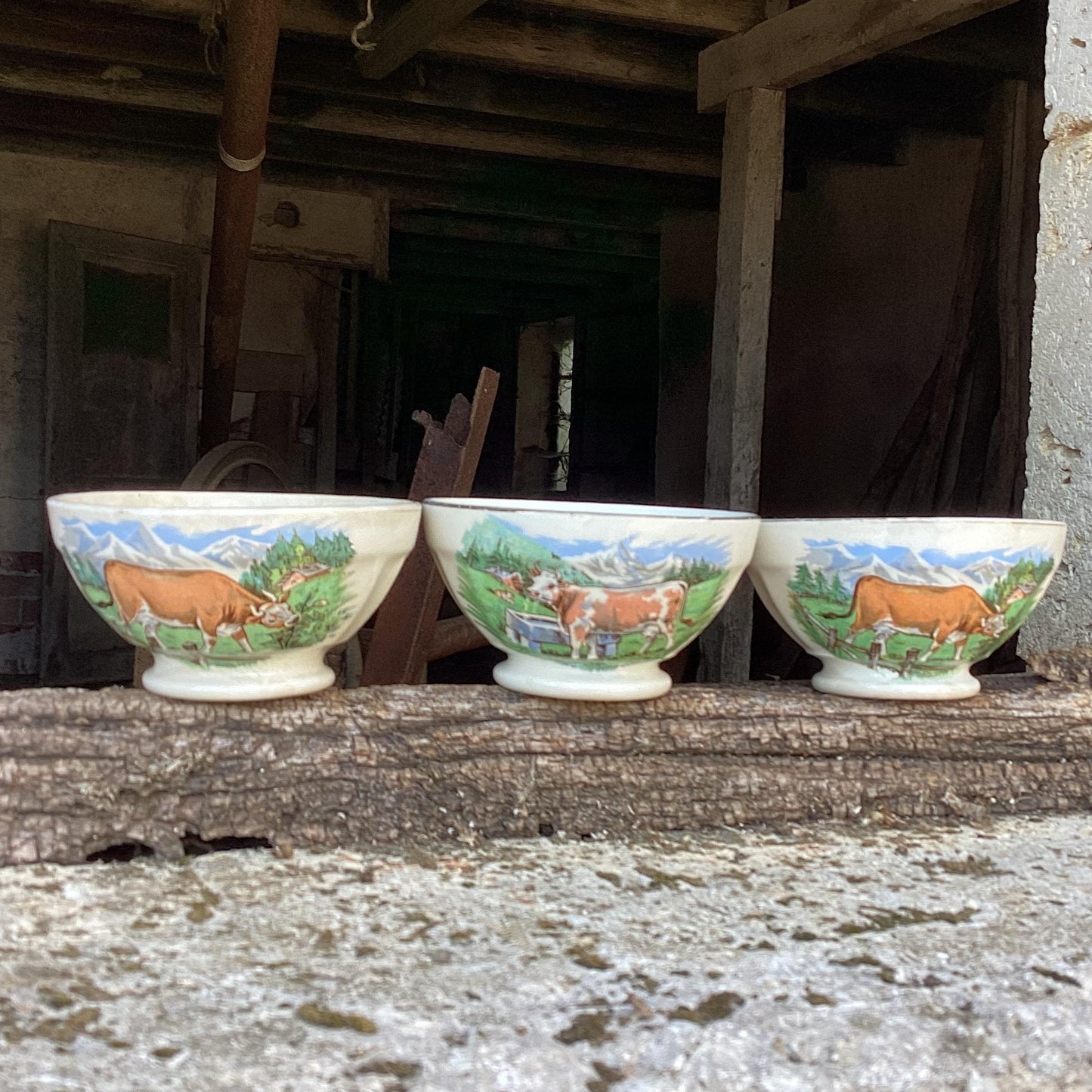 Add Antique Digoin Café au Lait Bowls: French farmhouse ceramics, pastoral transferware to the cart
