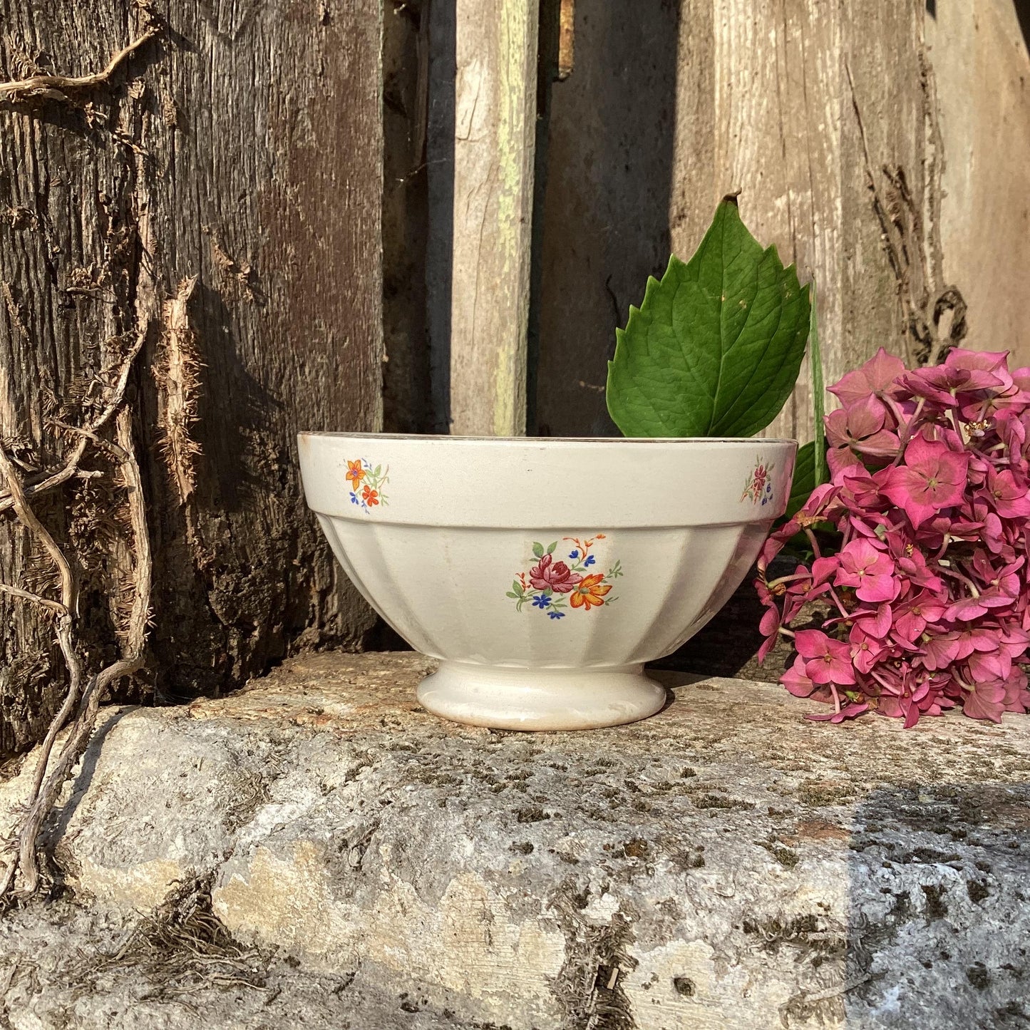 Add Antique Digoin café au lait bowl: French country faïence, wild flower decor to the cart