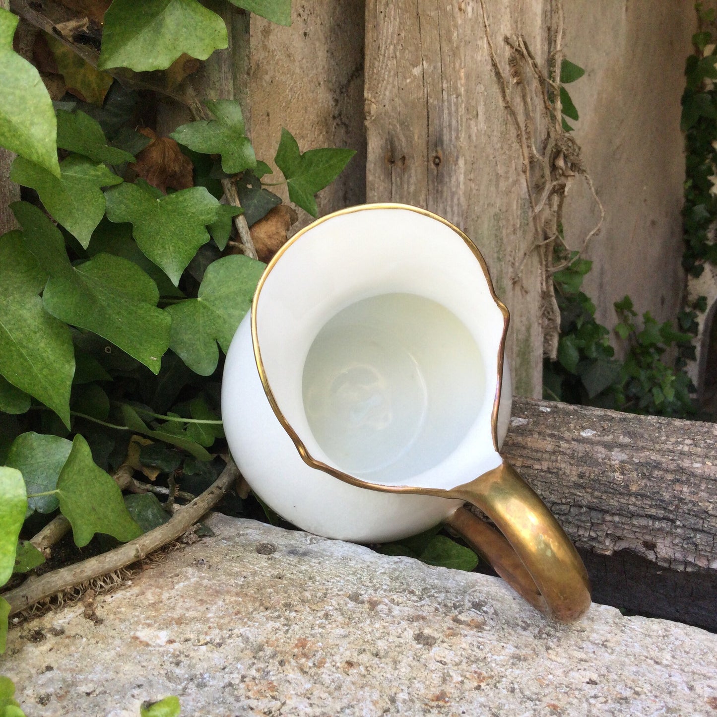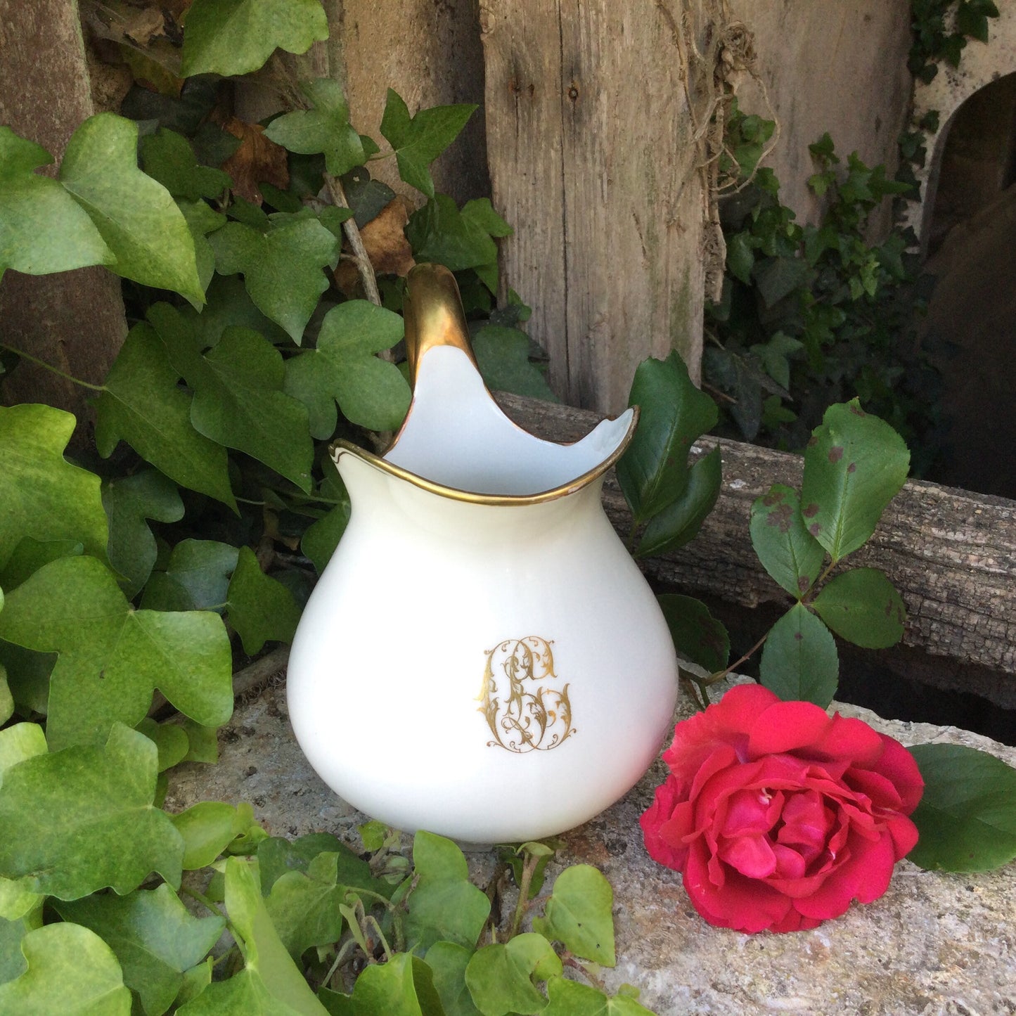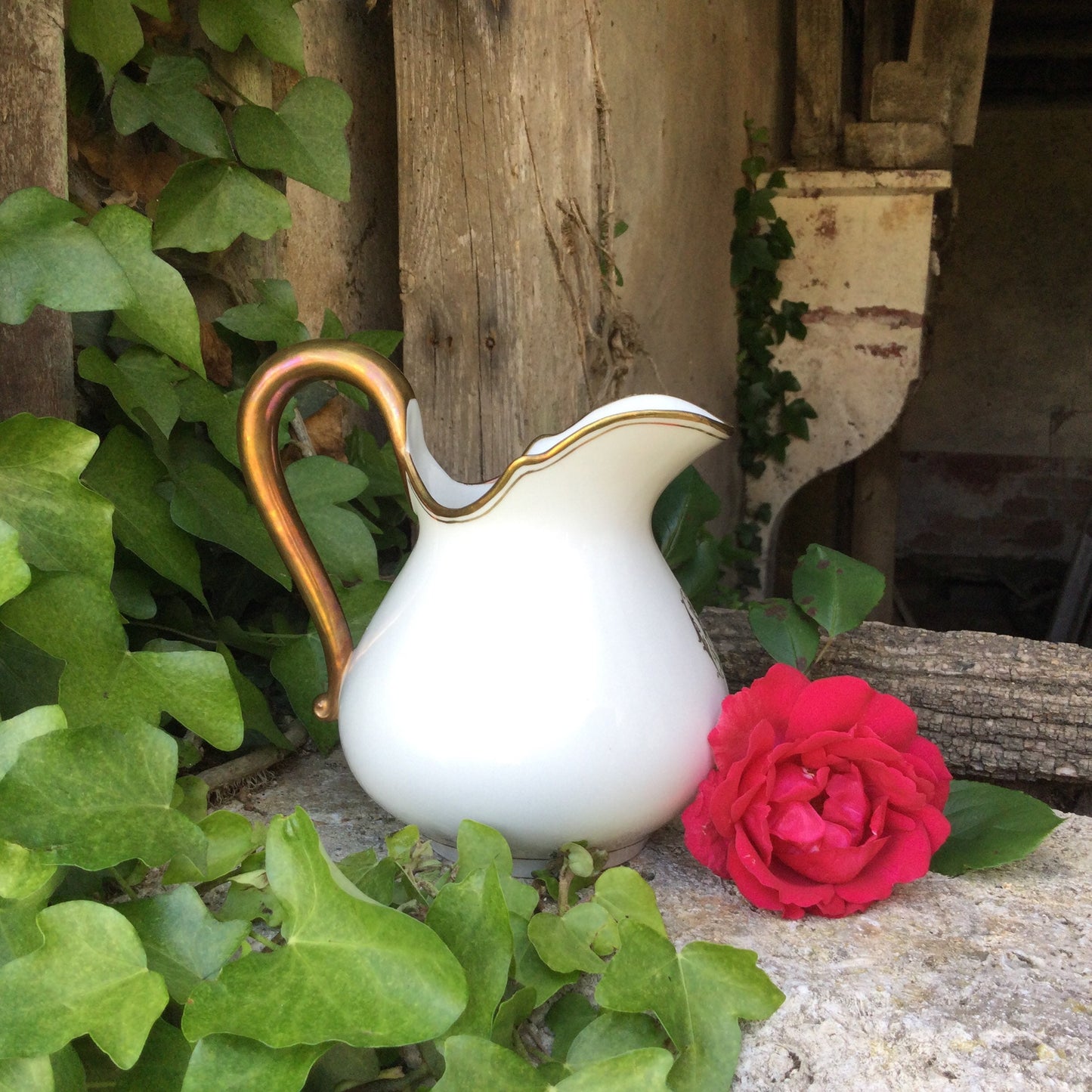 1920's Limoges Porcelain Creamer: French Country Chic Gold Decor