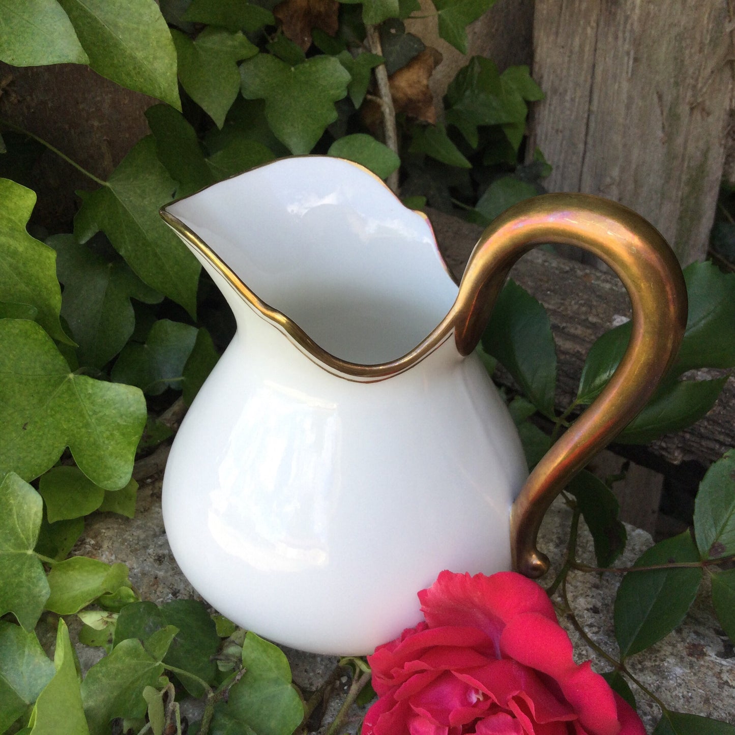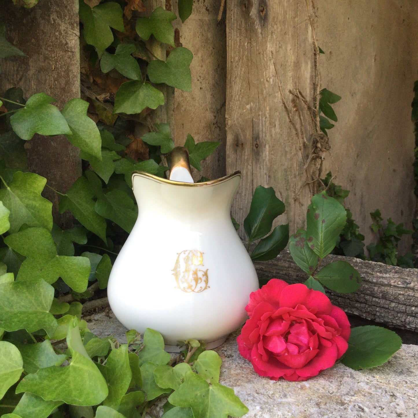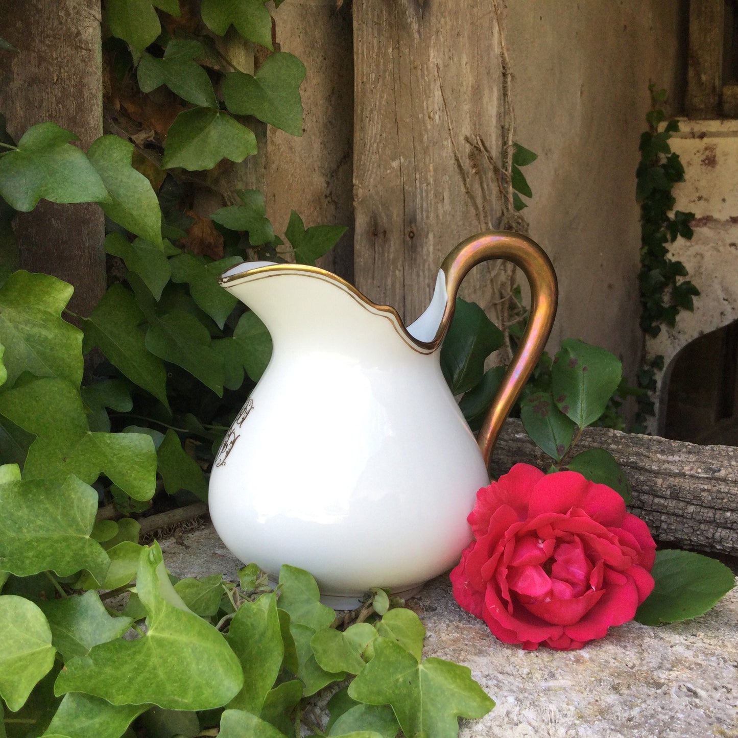 1920's Limoges Porcelain Creamer: French Country Chic Gold Decor