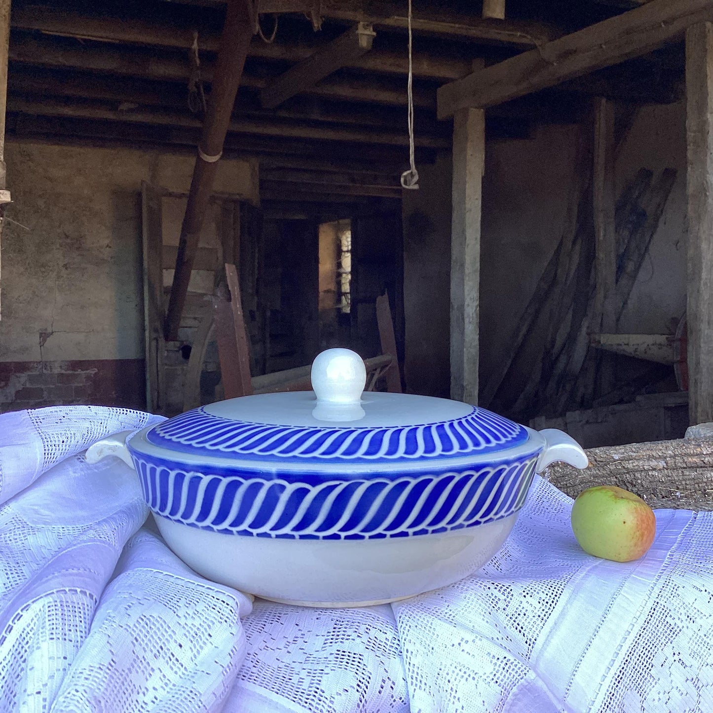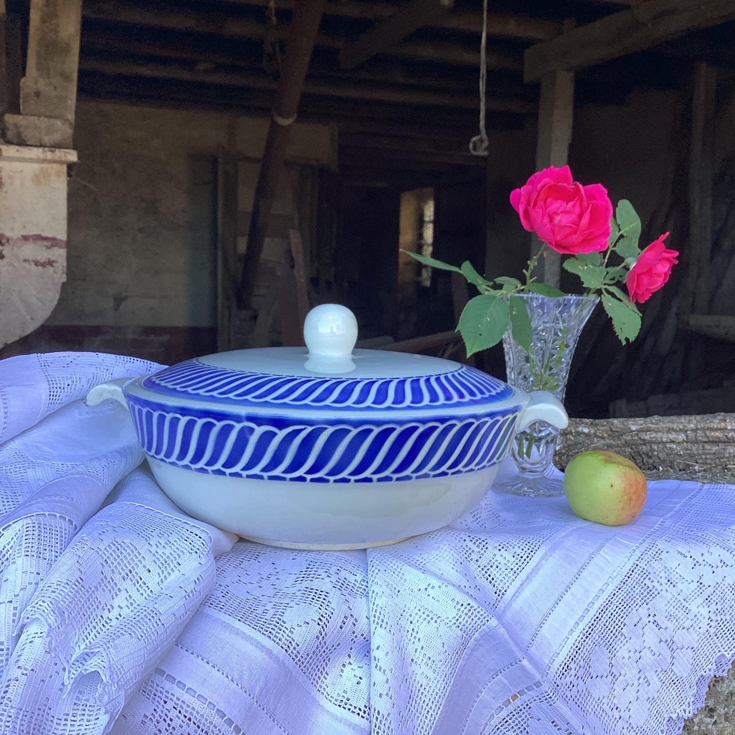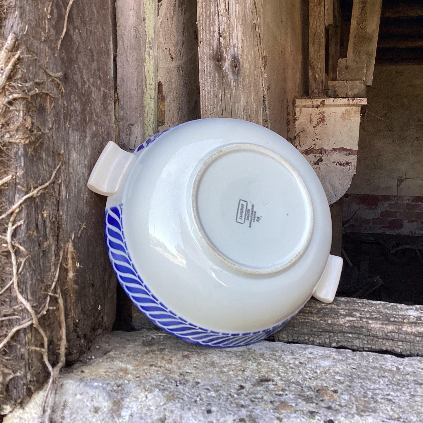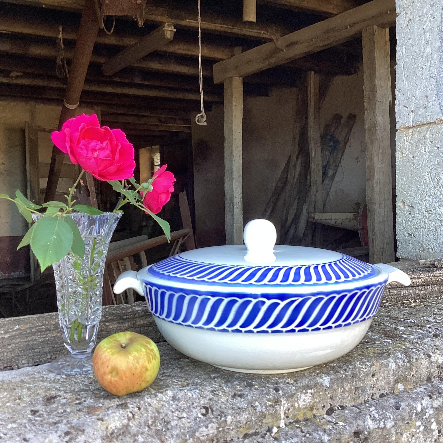 Vintage Digoin Sarreguemines Covered Bowl, Jacquot Blue Design