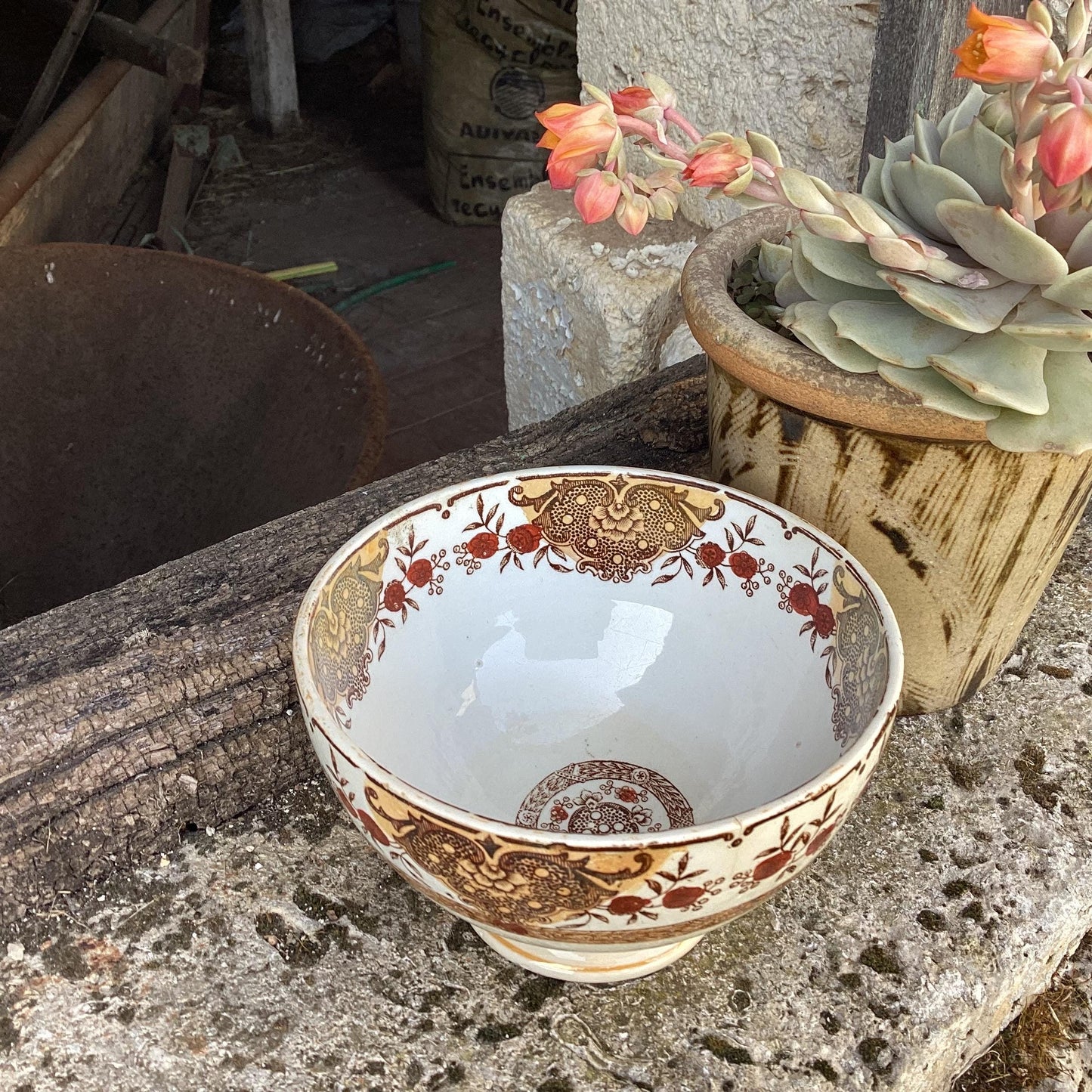 Antique French Cafe Au Lait Bowl, St Amand Faience, 1920s