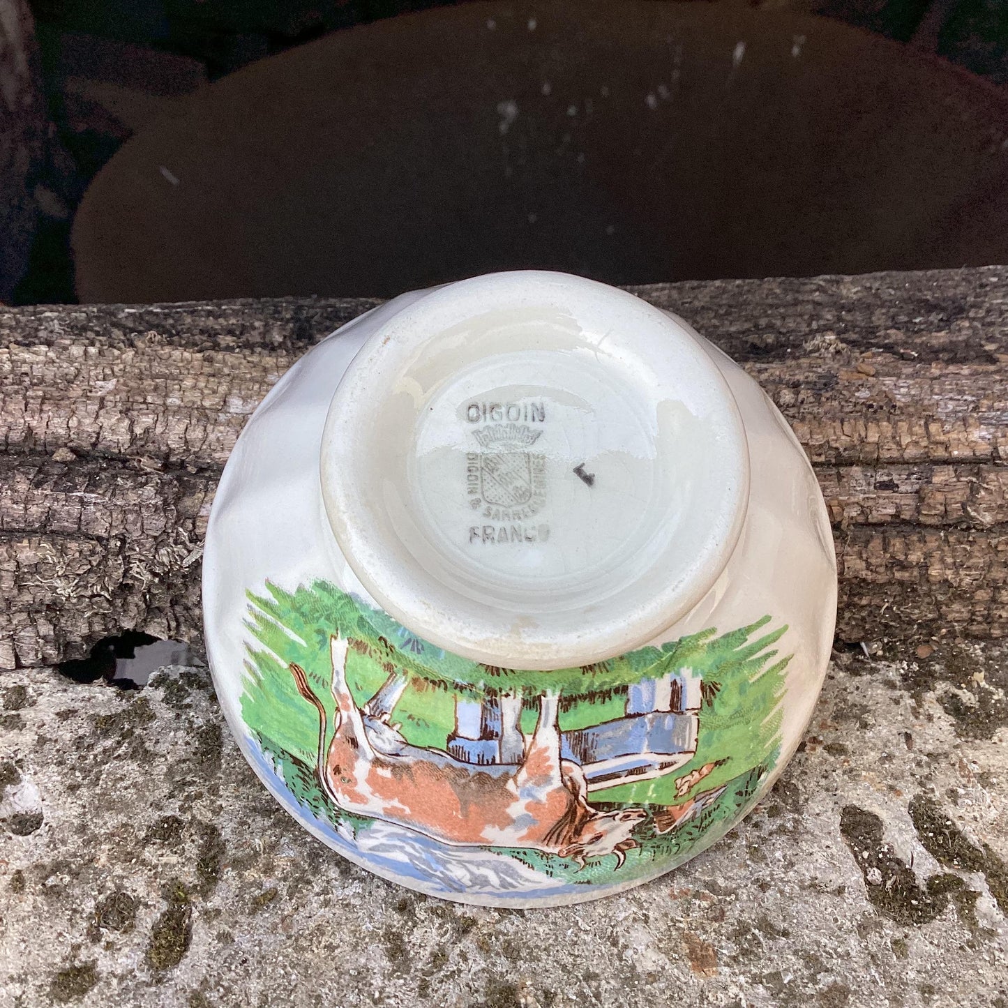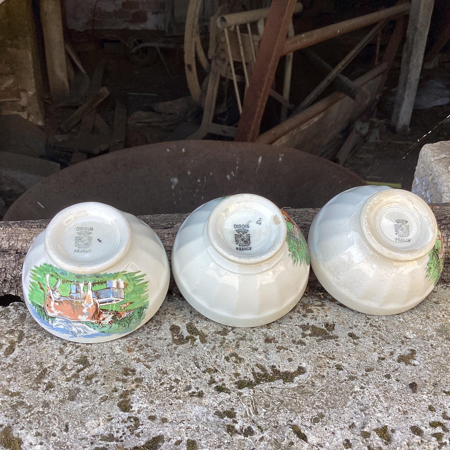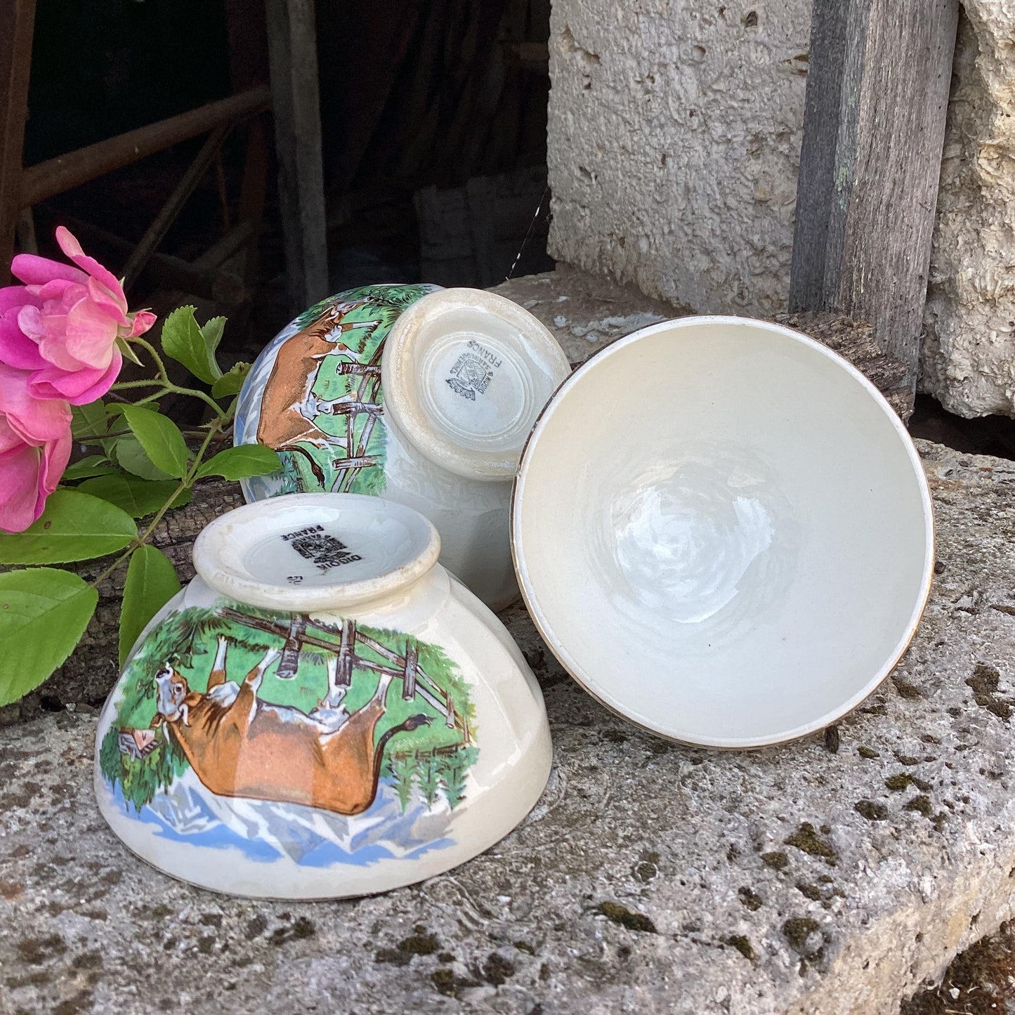 Antique Digoin Café au Lait Bowls: French farmhouse ceramics, pastoral transferware
