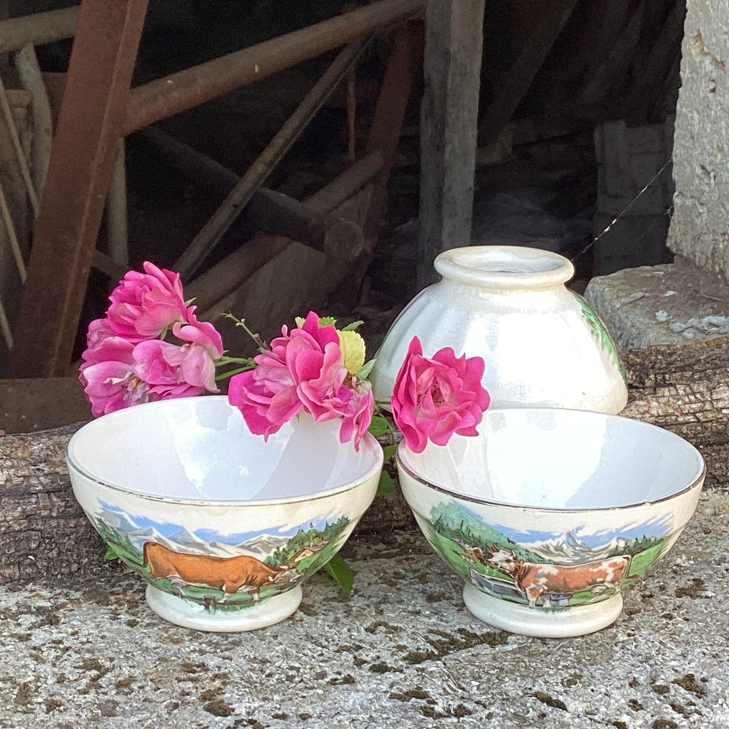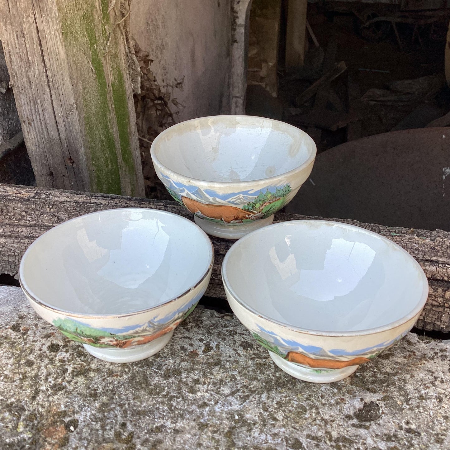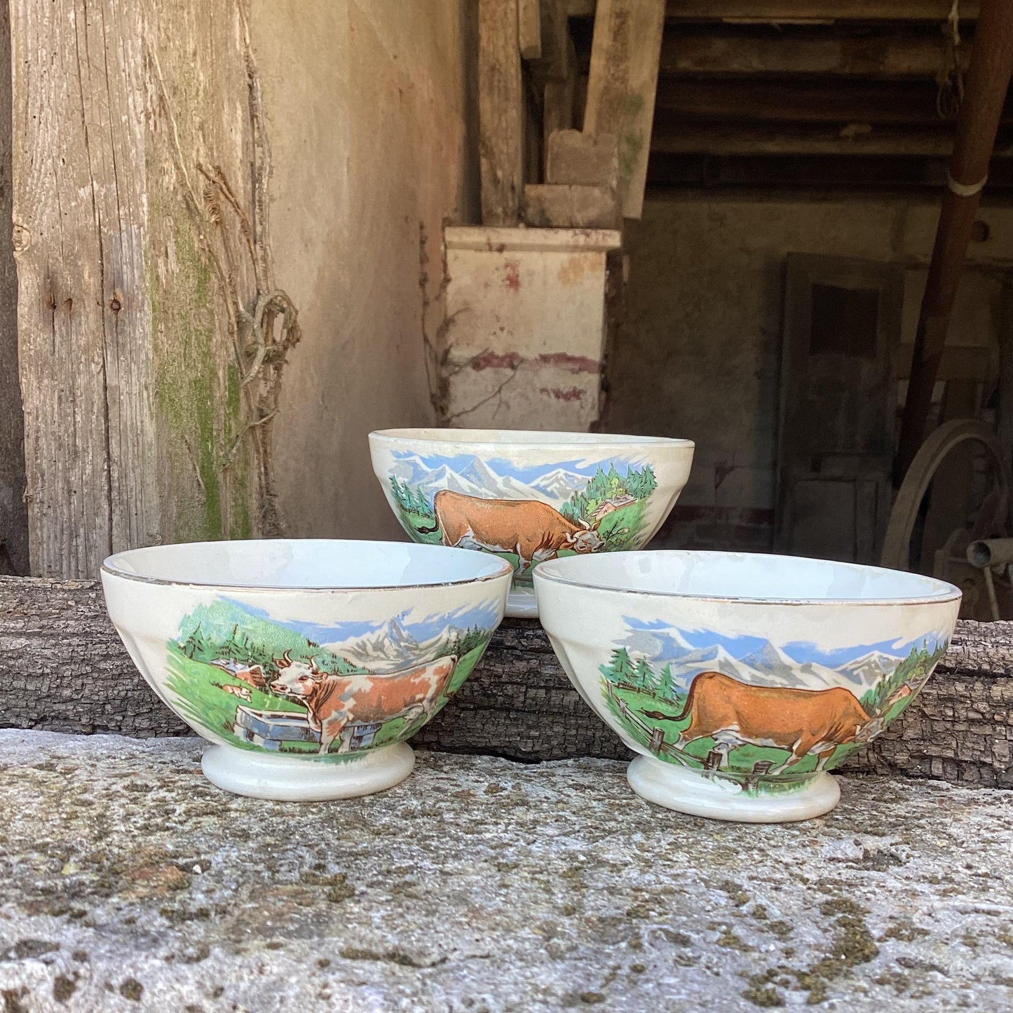 Antique Digoin Café au Lait Bowls: French farmhouse ceramics, pastoral transferware