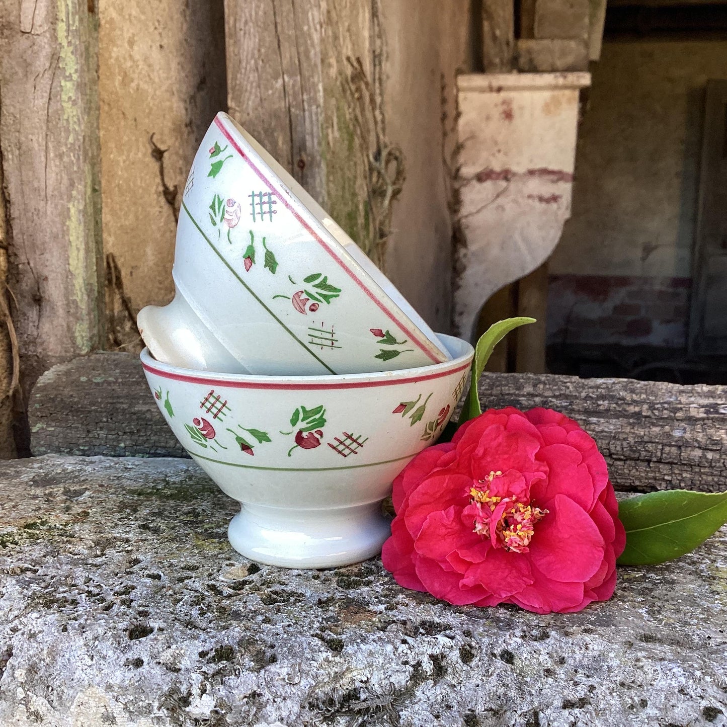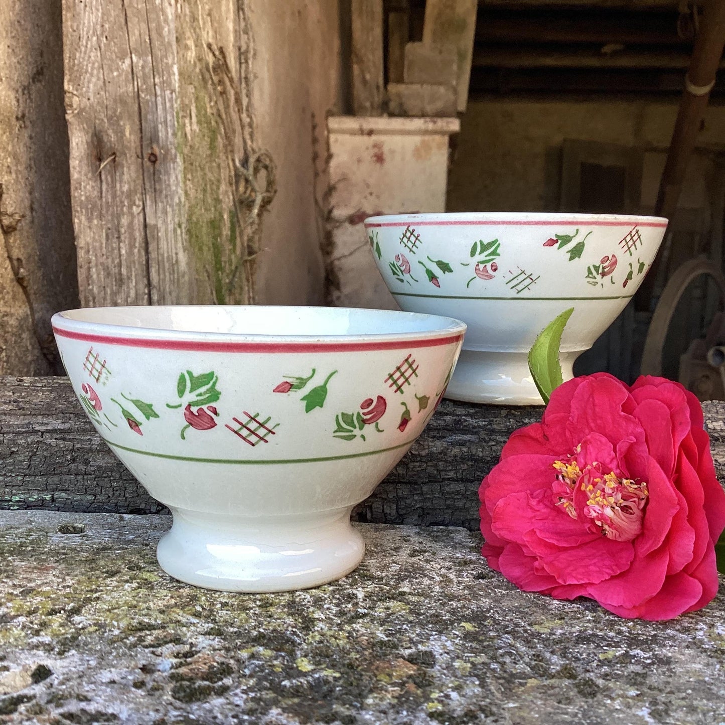 Add French Vintage Cafe Au Lait Bowls, Floral Ceramic Pair to the cart