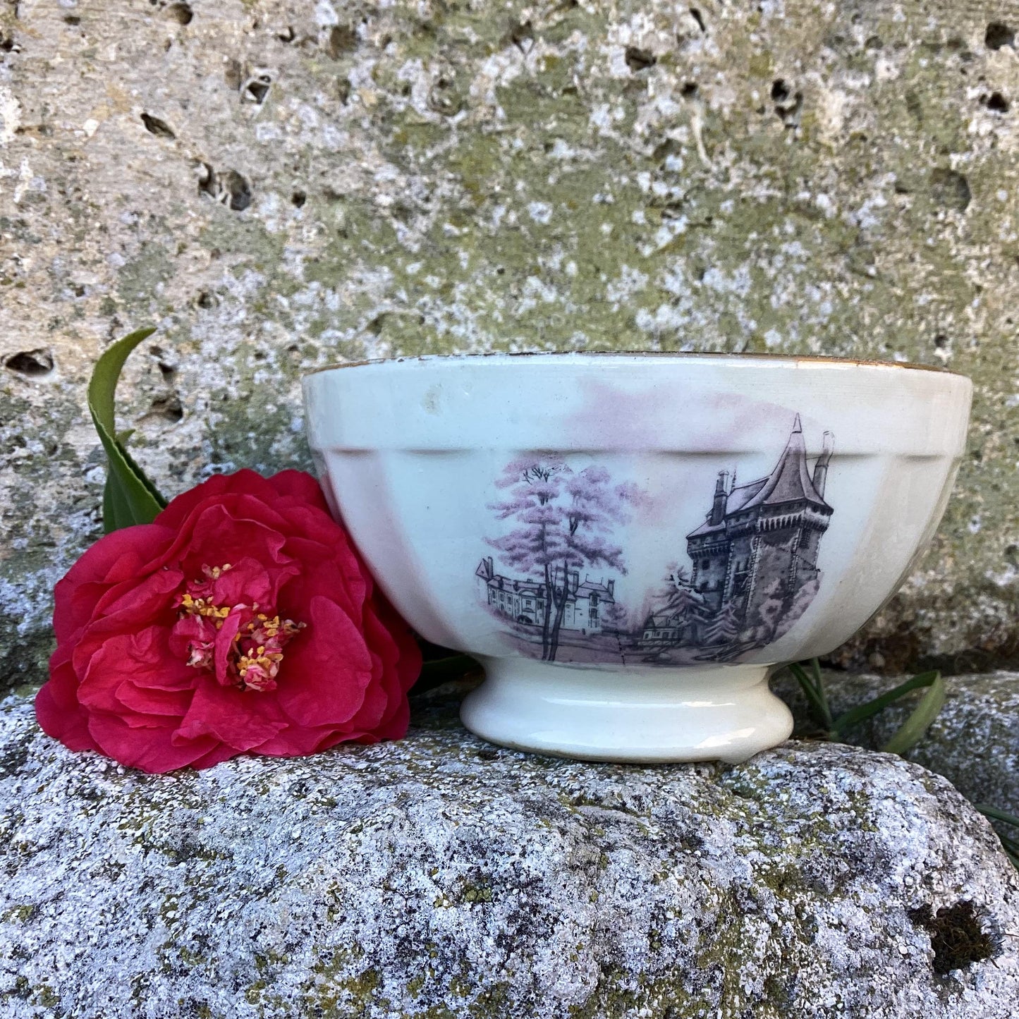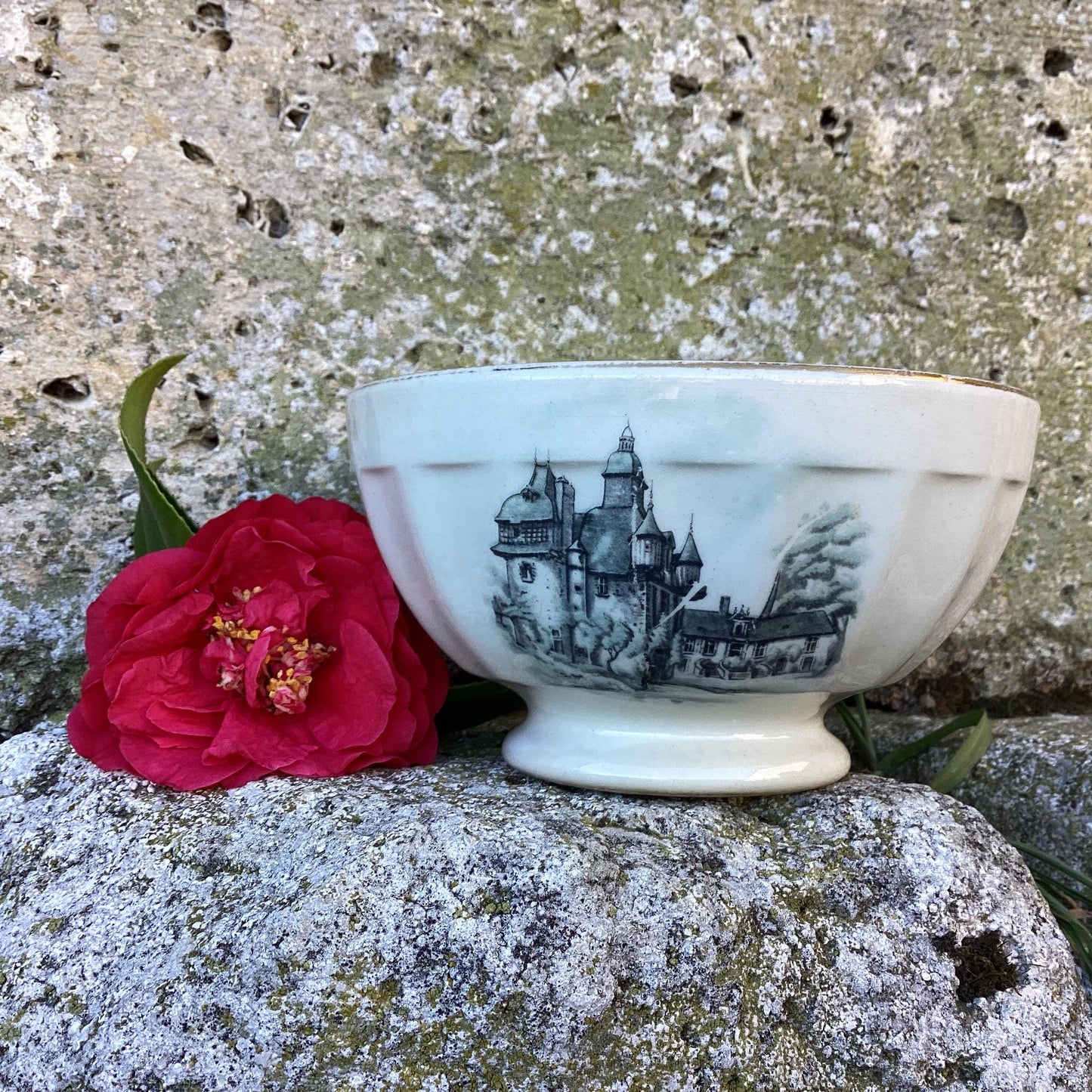 Add Vintage French Cafe au Lait Bowl, Chateau Scene Faience to the cart