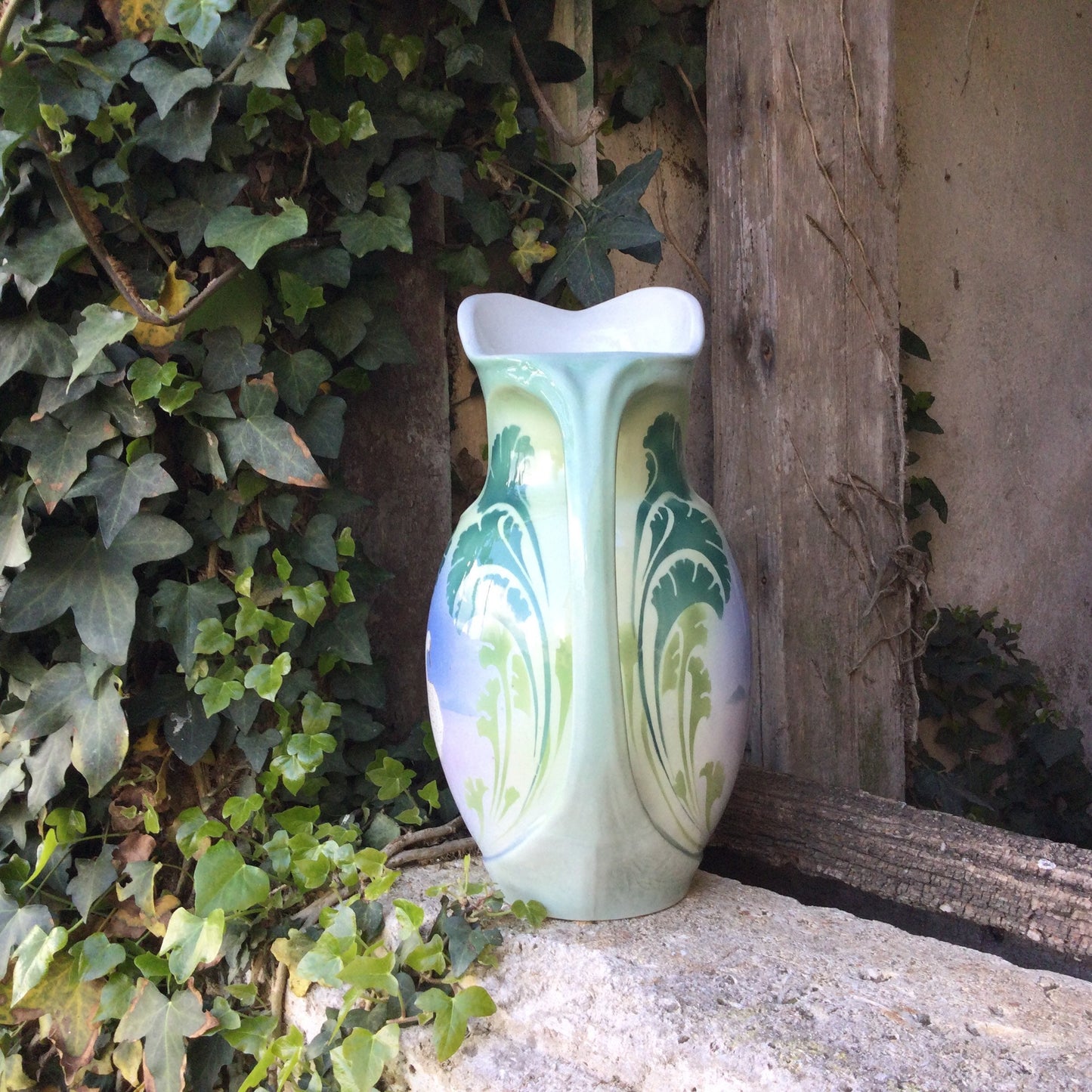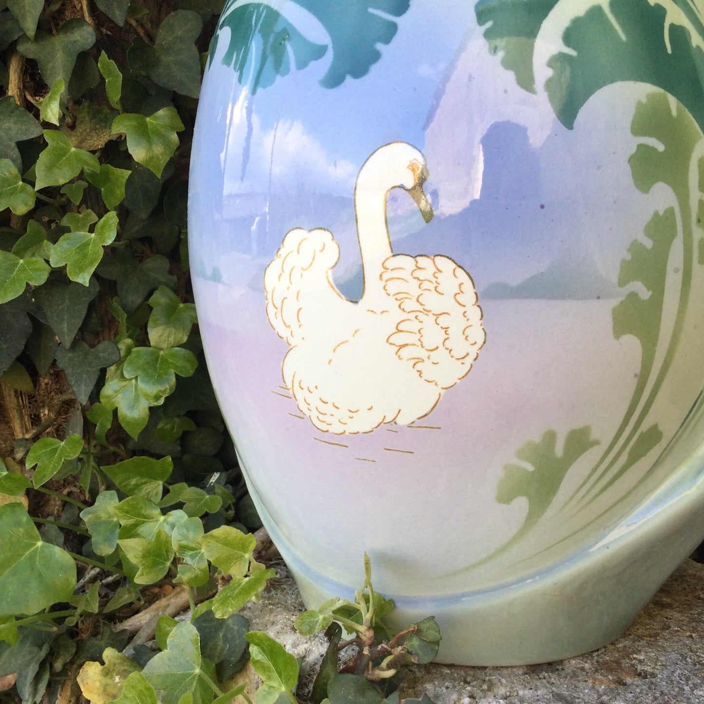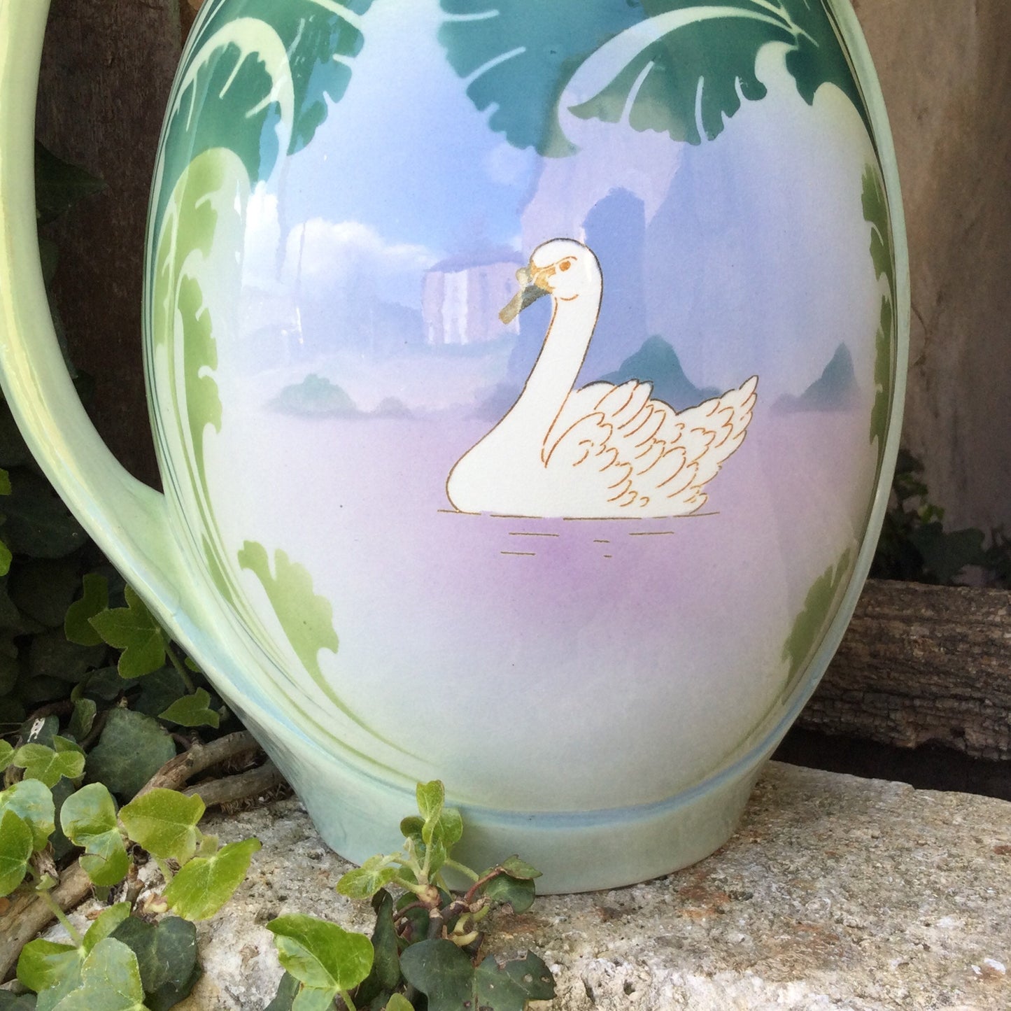 Art Deco Bathroom Pitcher : Luneville ceramics, hand painted, swan decor