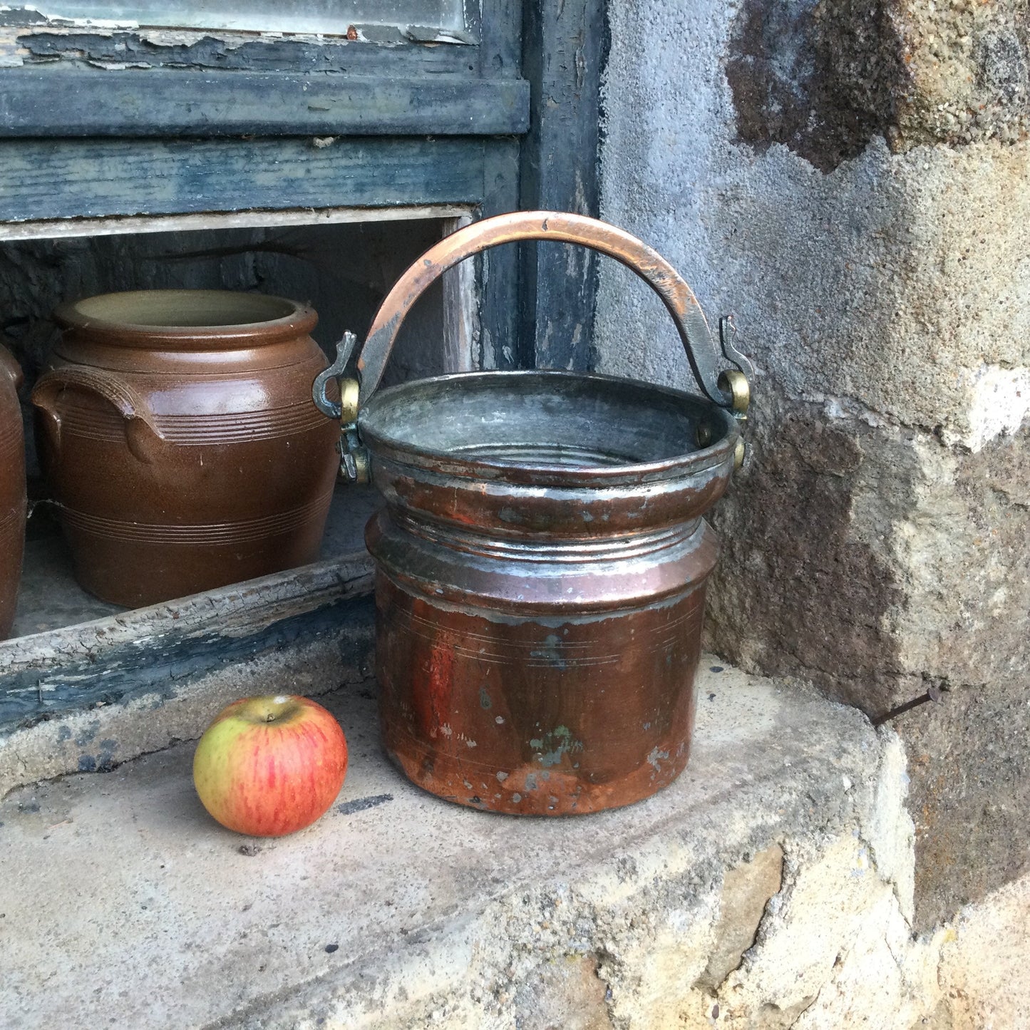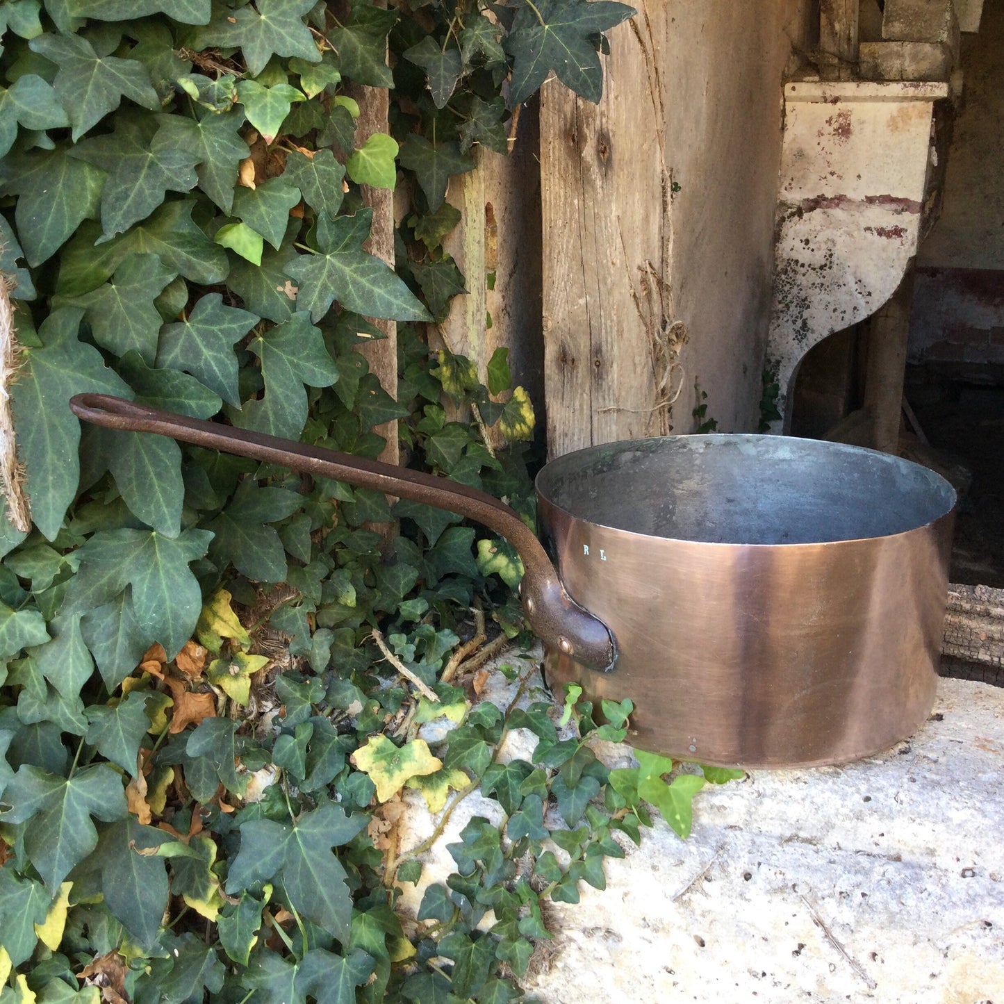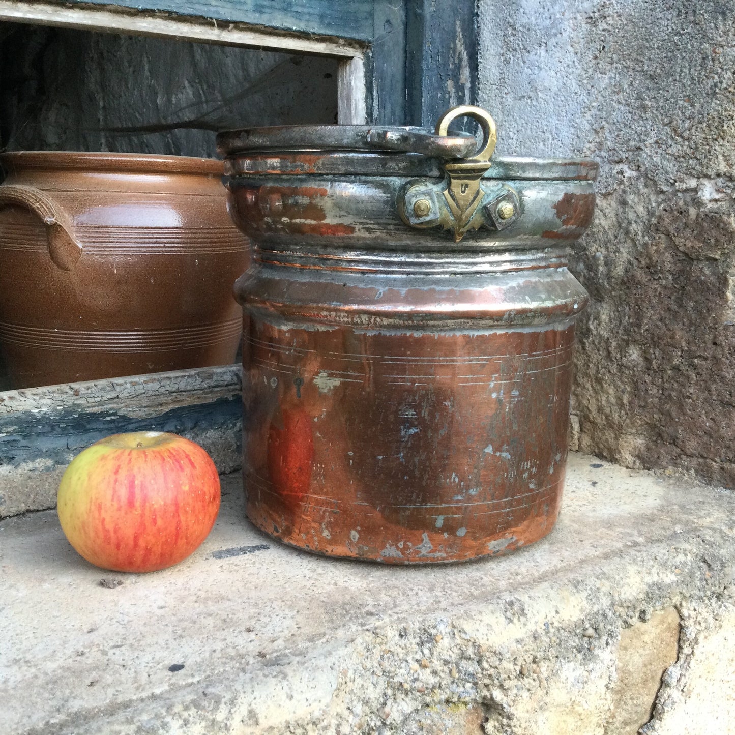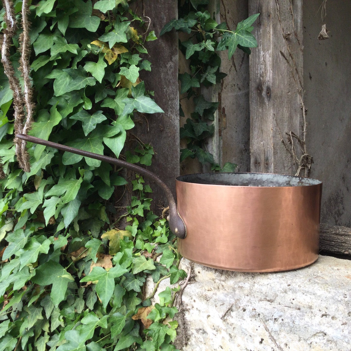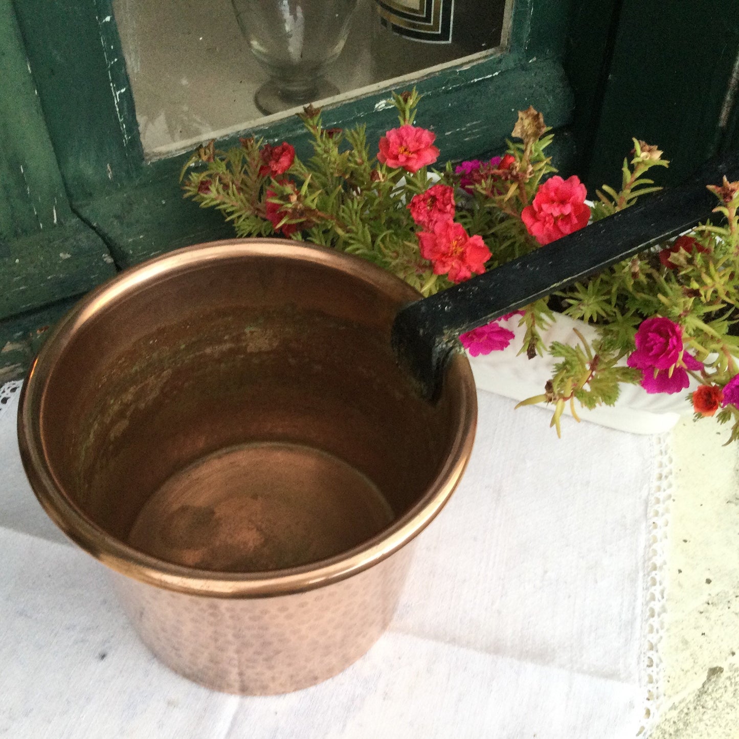 Add French Antique Copper Saucepan, Rustic Farmhouse Decor to the cart