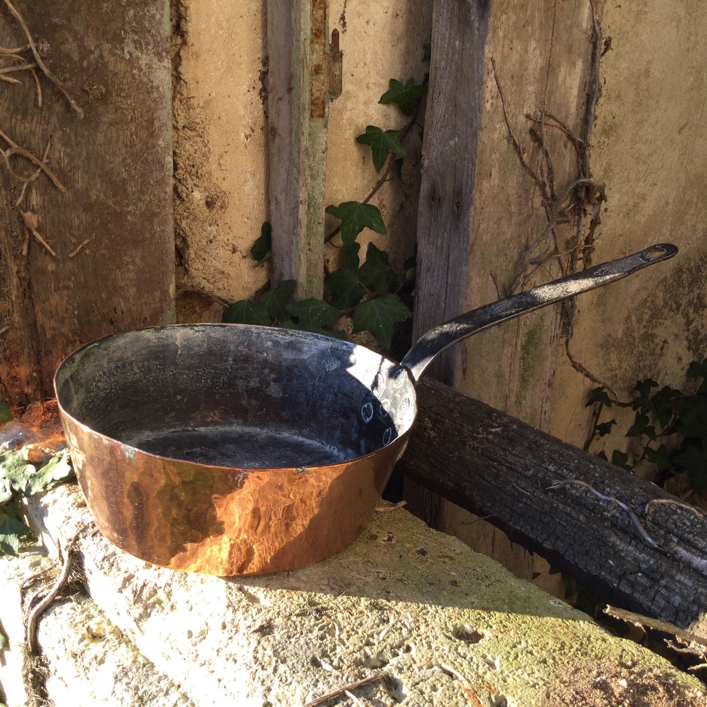 Add French Antique Copper Sauté Pan, Rustic Farmhouse Cookware to the cart