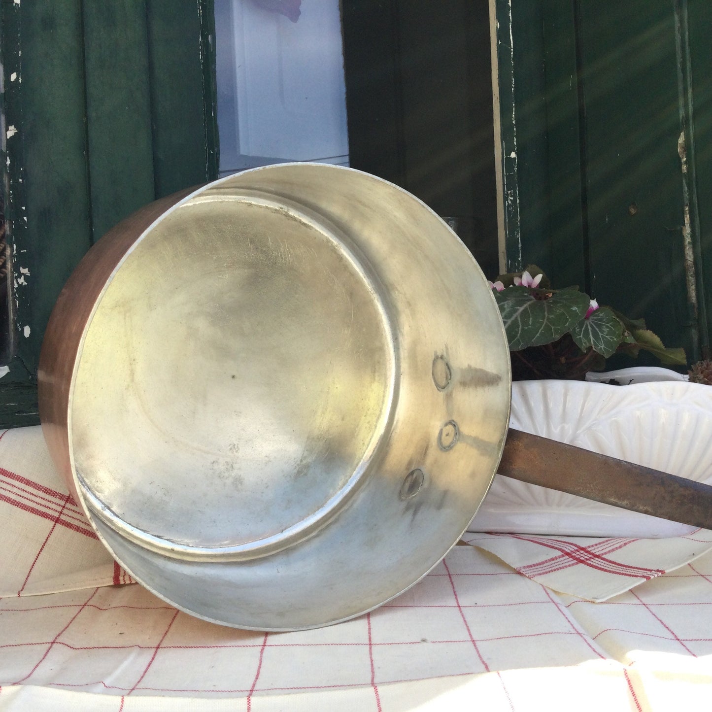 Add French Antique Copper Saucepan, Artisan Signed, Farmhouse Decor to the cart