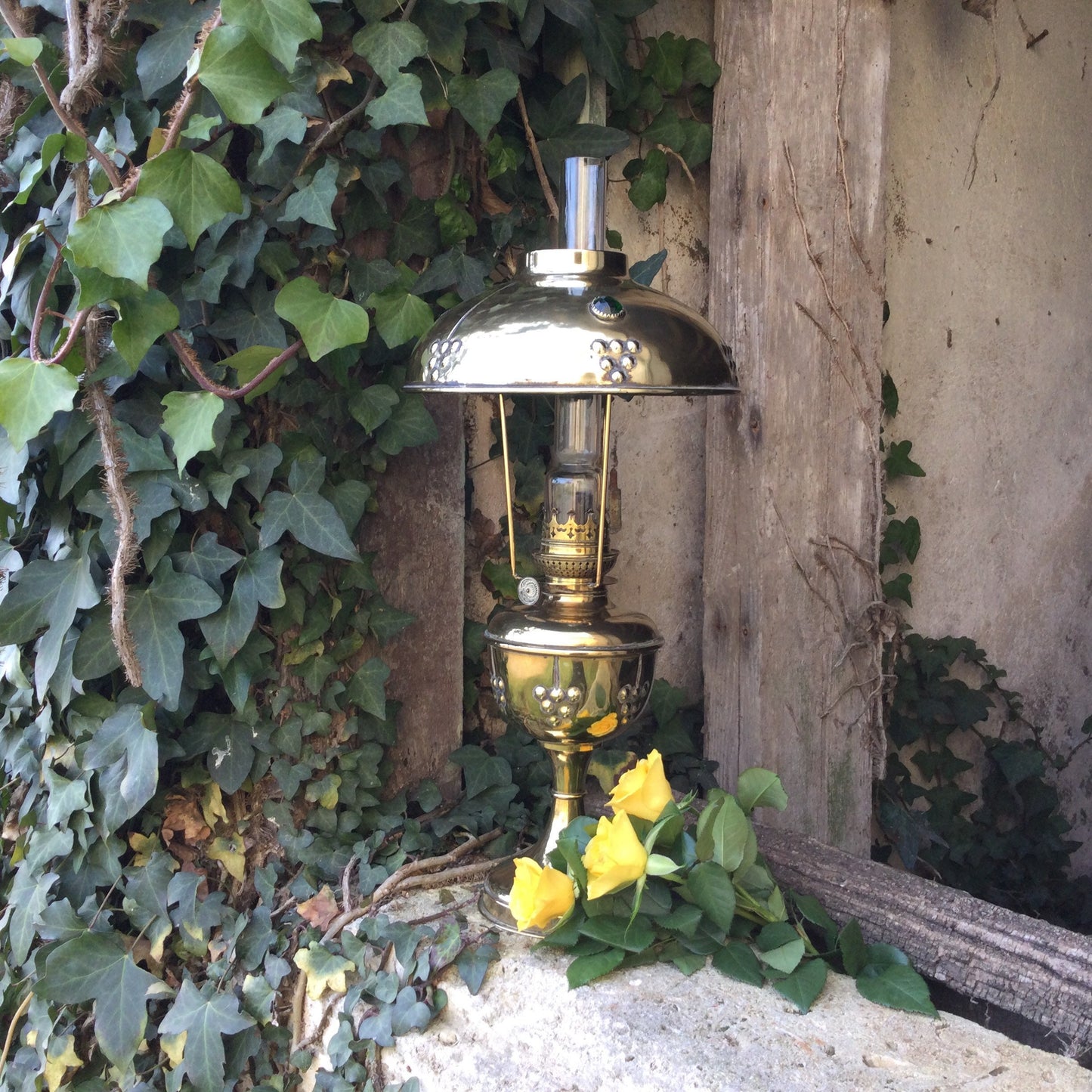 Add 1930s French Brass Oil Lamp with Crystal Accents to the cart