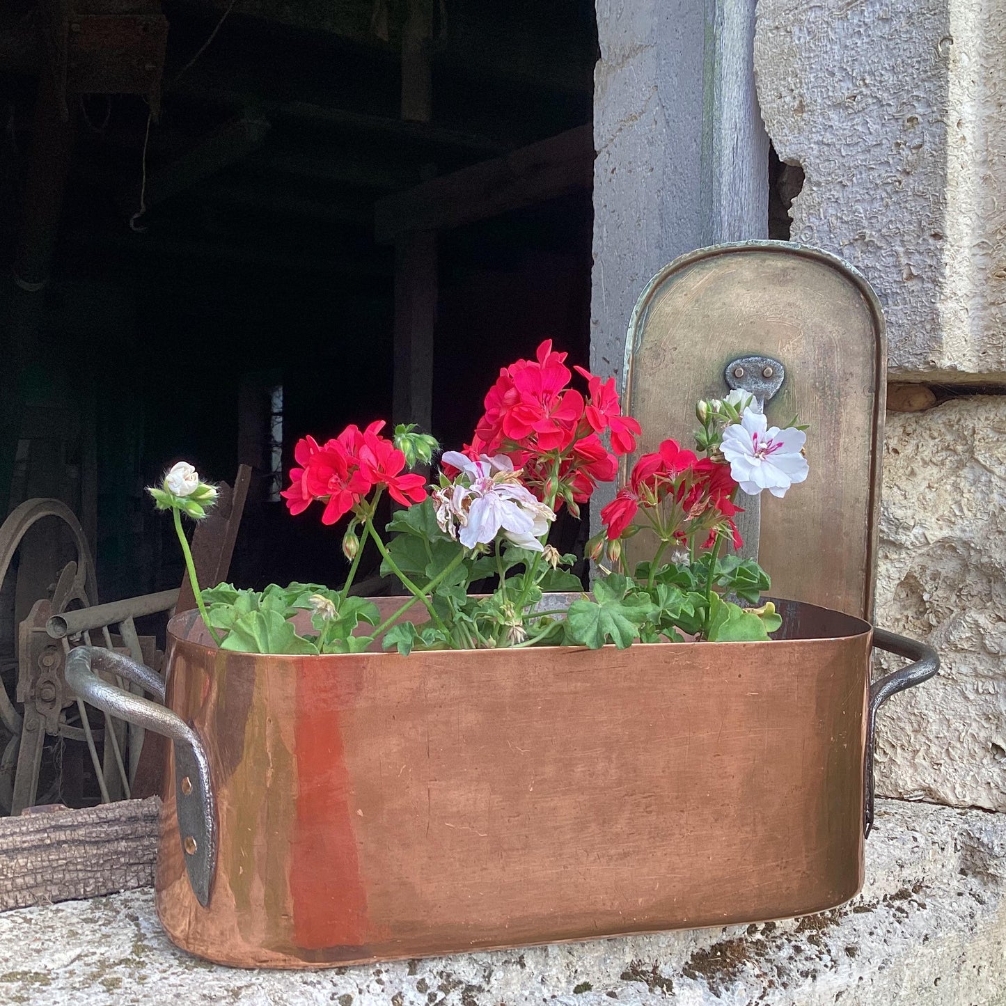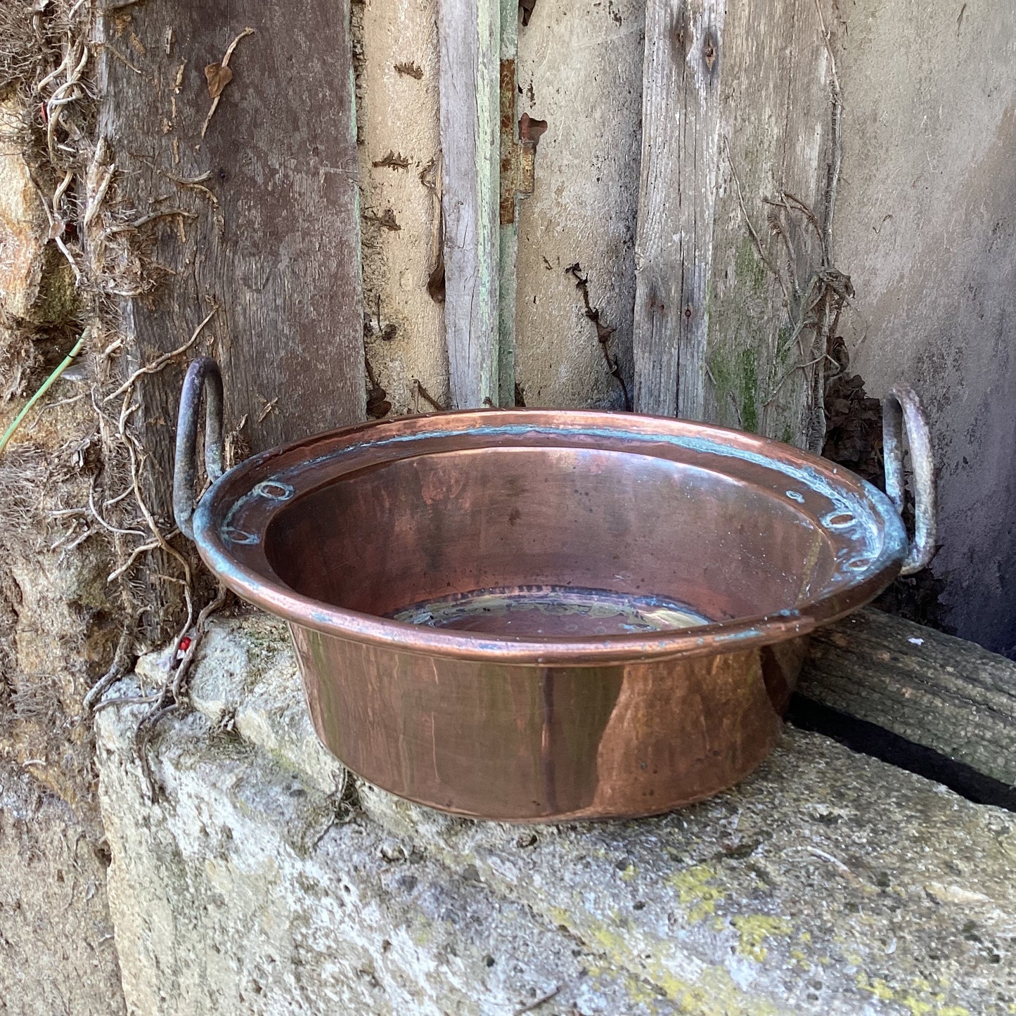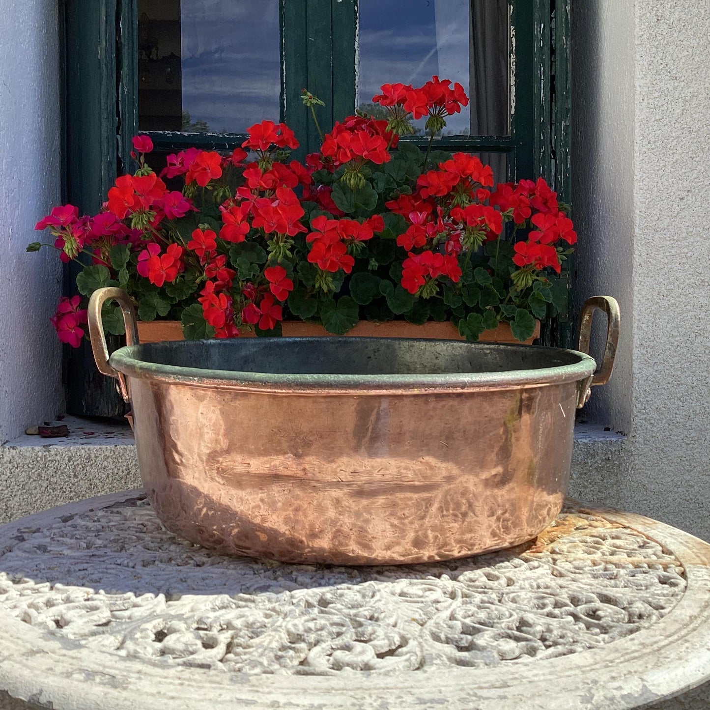 Add Antique French Copper Skillet: Large Handmade Farmhouse Planter to the cart
