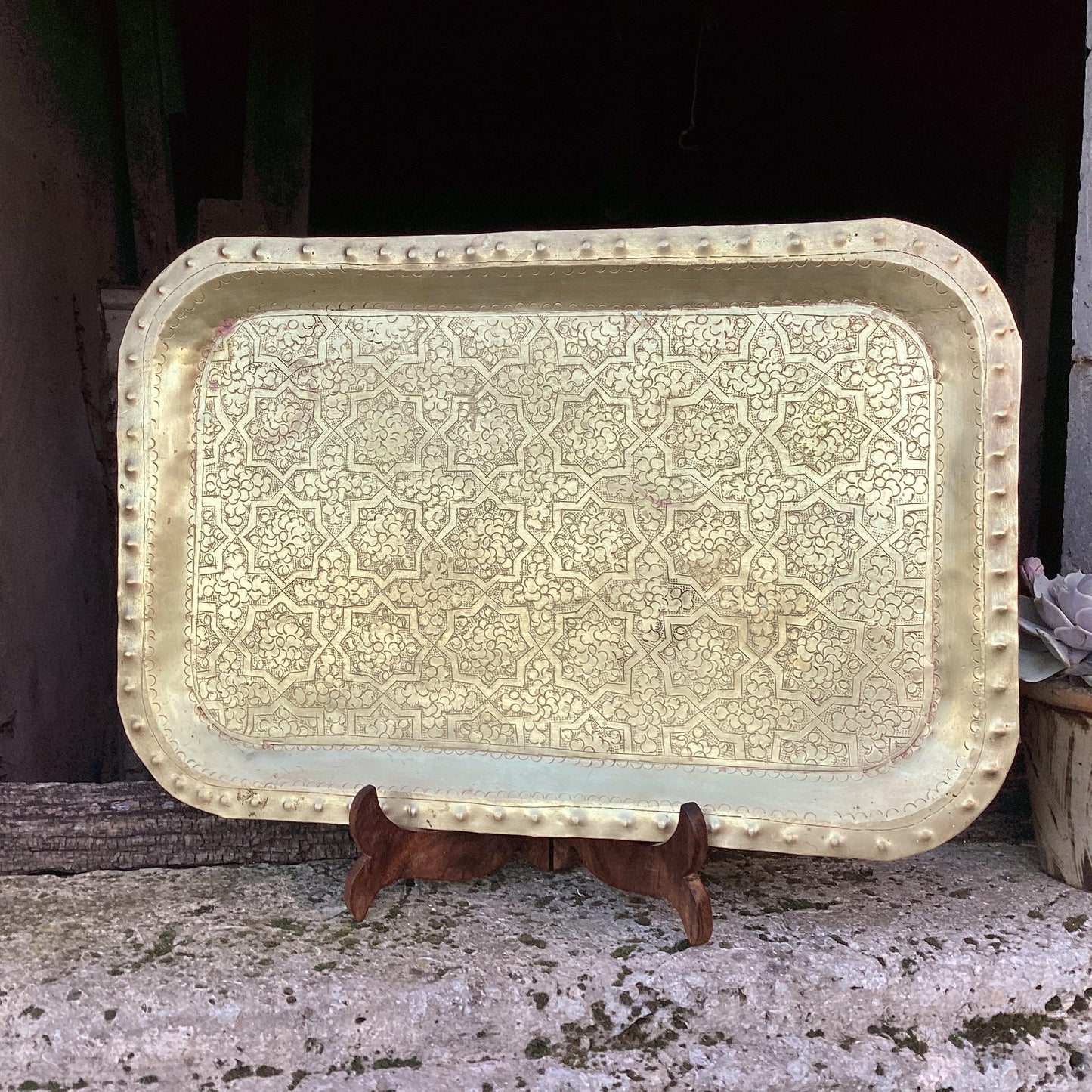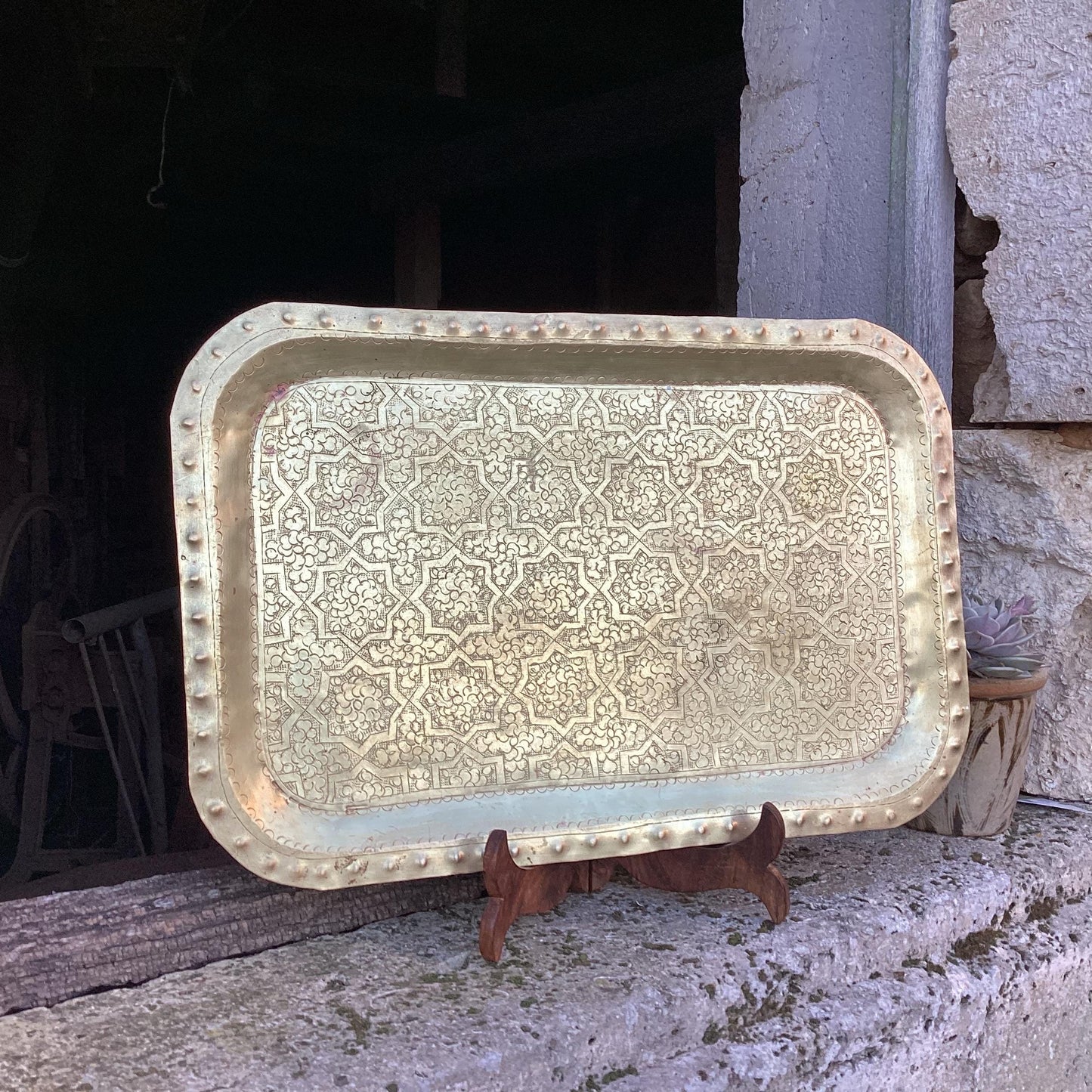 Add Vintage North African Brass Tray, Engraved Gold Decor to the cart