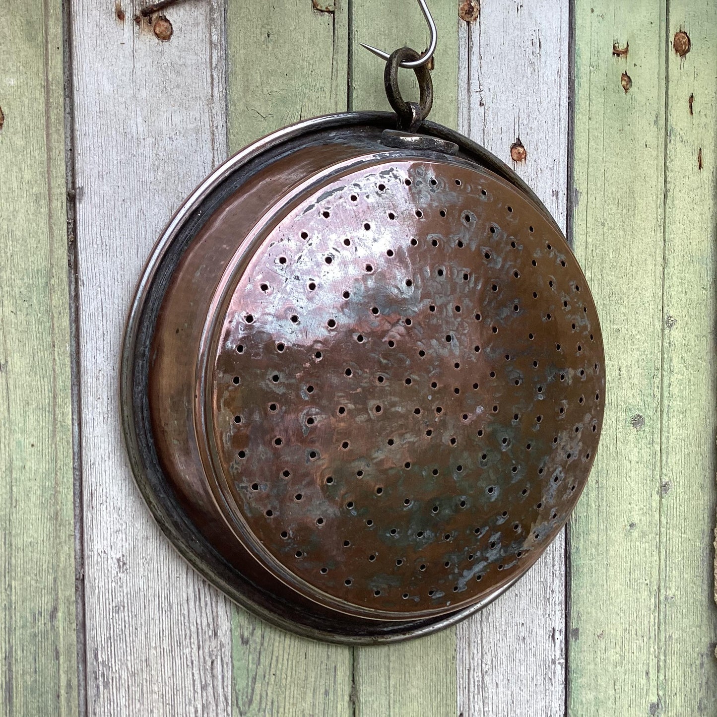 Add Antique Copper Colander: French farmhouse kitchen decor to the cart
