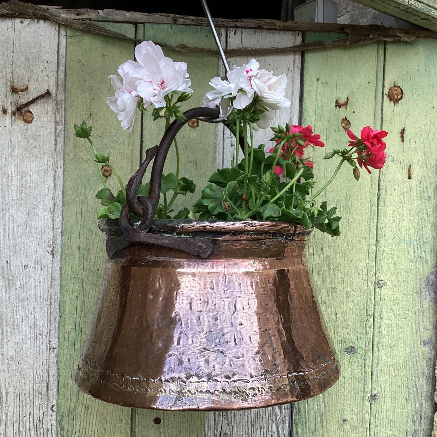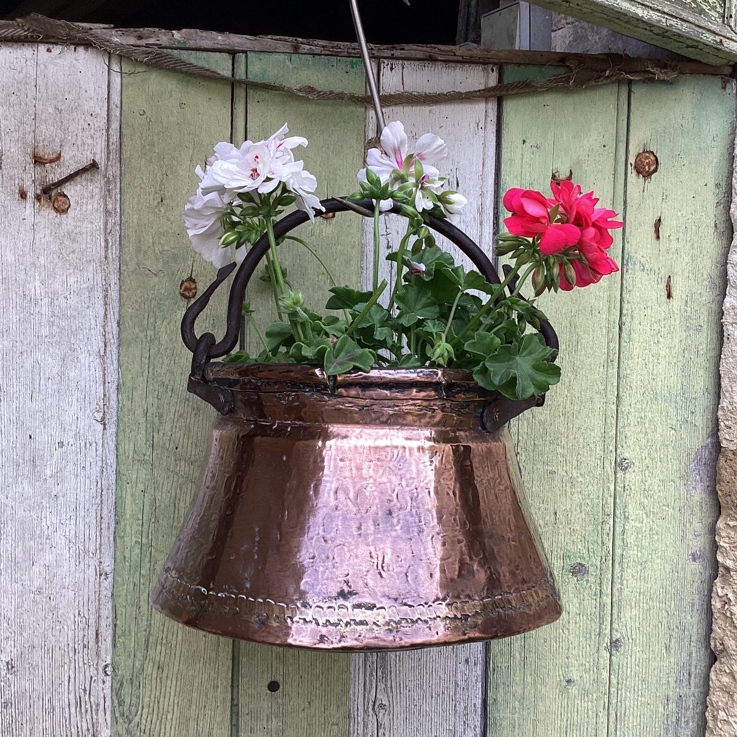 Add Antique Copper Cooking Pot: Large French Farmhouse Planter to the cart