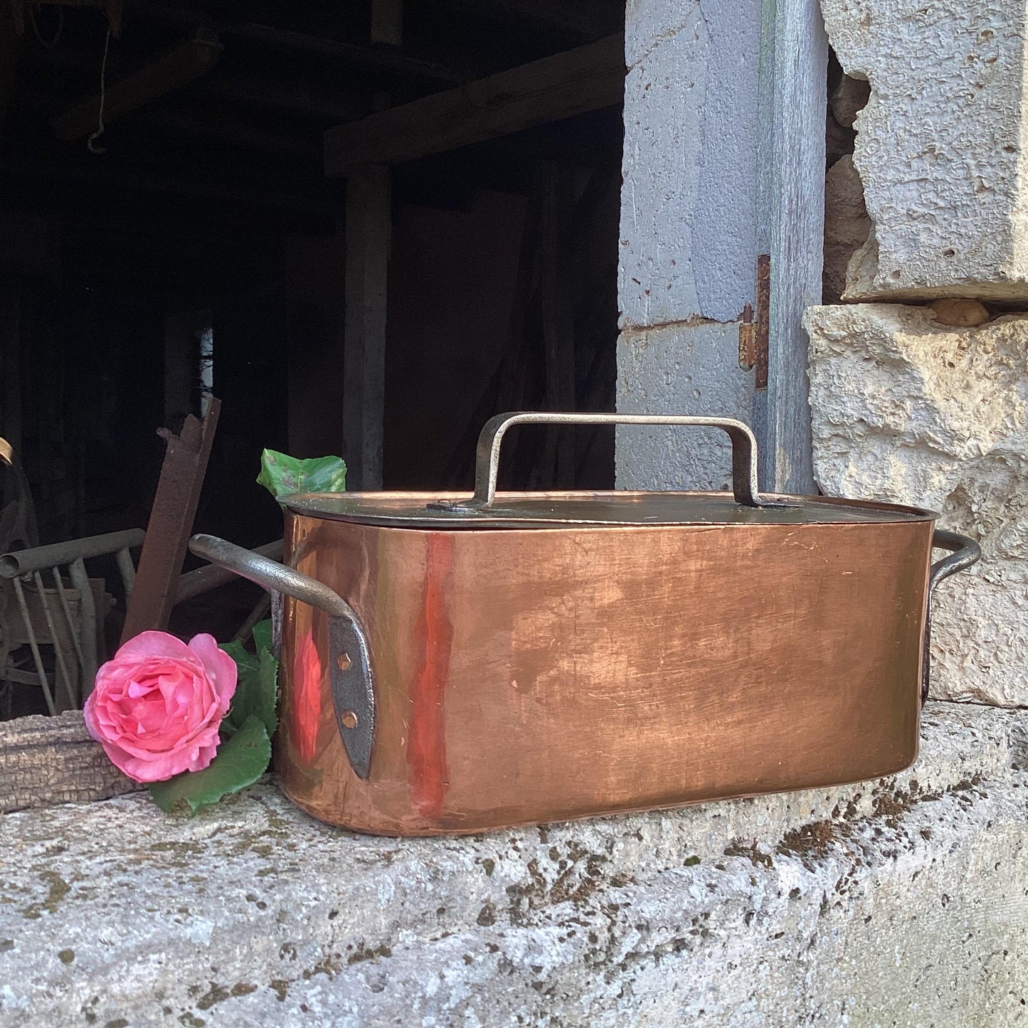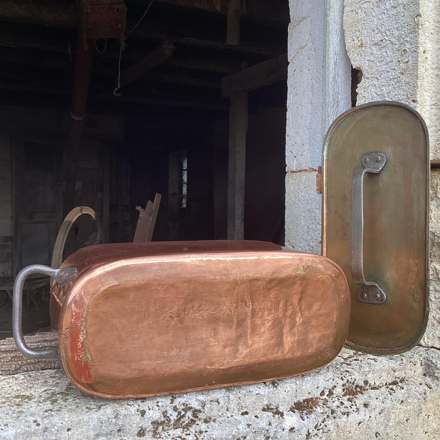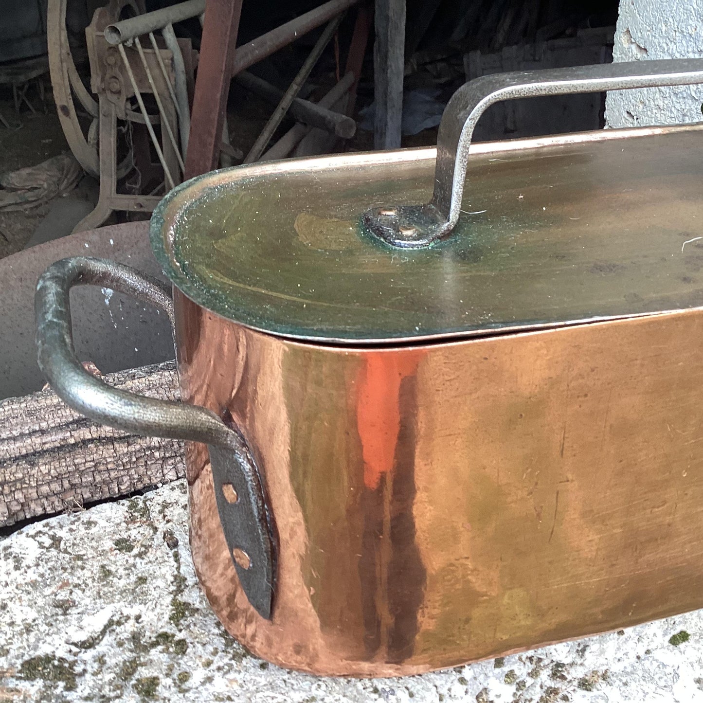 Antique French Copper Cauldron with Lid, 1900s Cookware