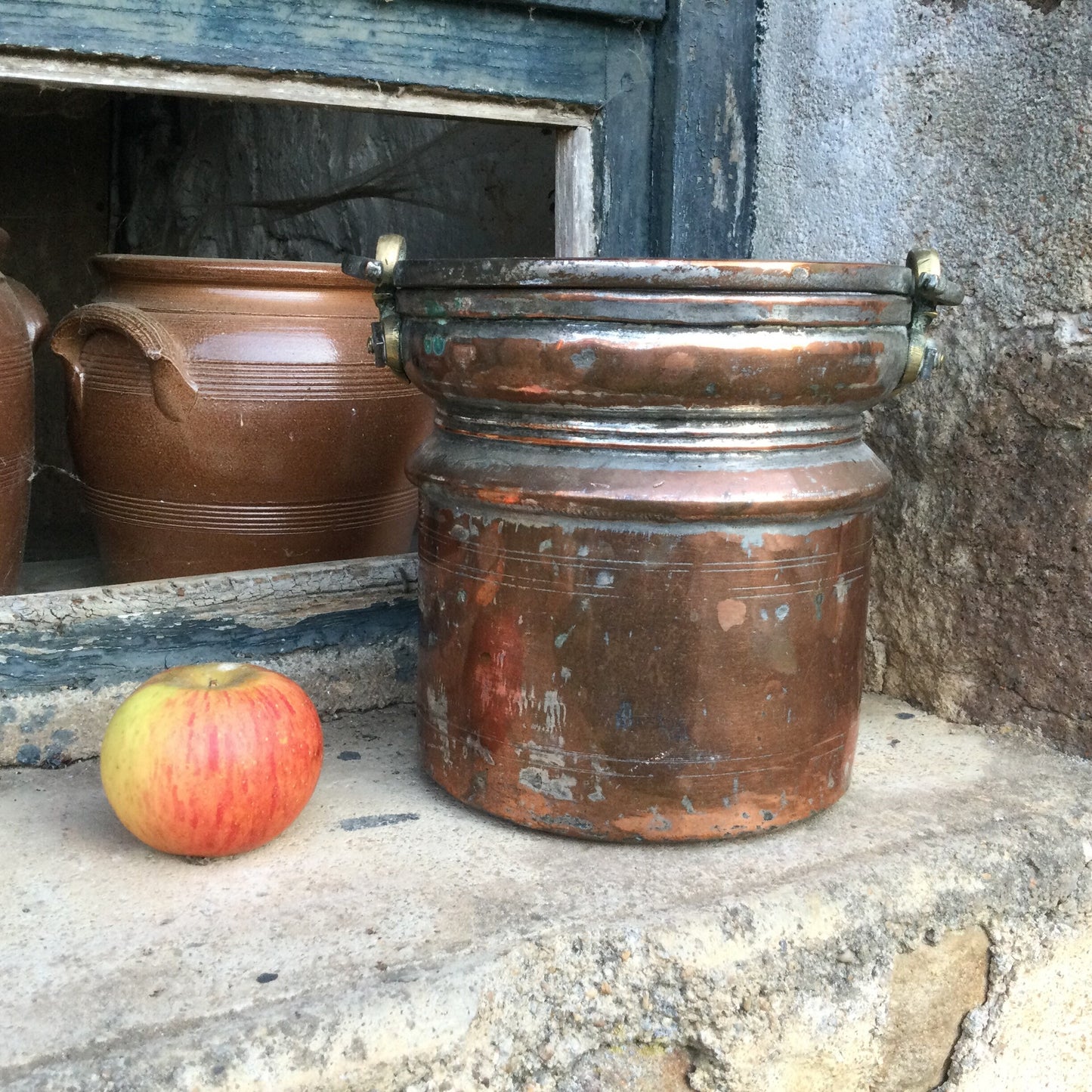 19thC French Copper Cauldron, Antique Stock Pot Planter
