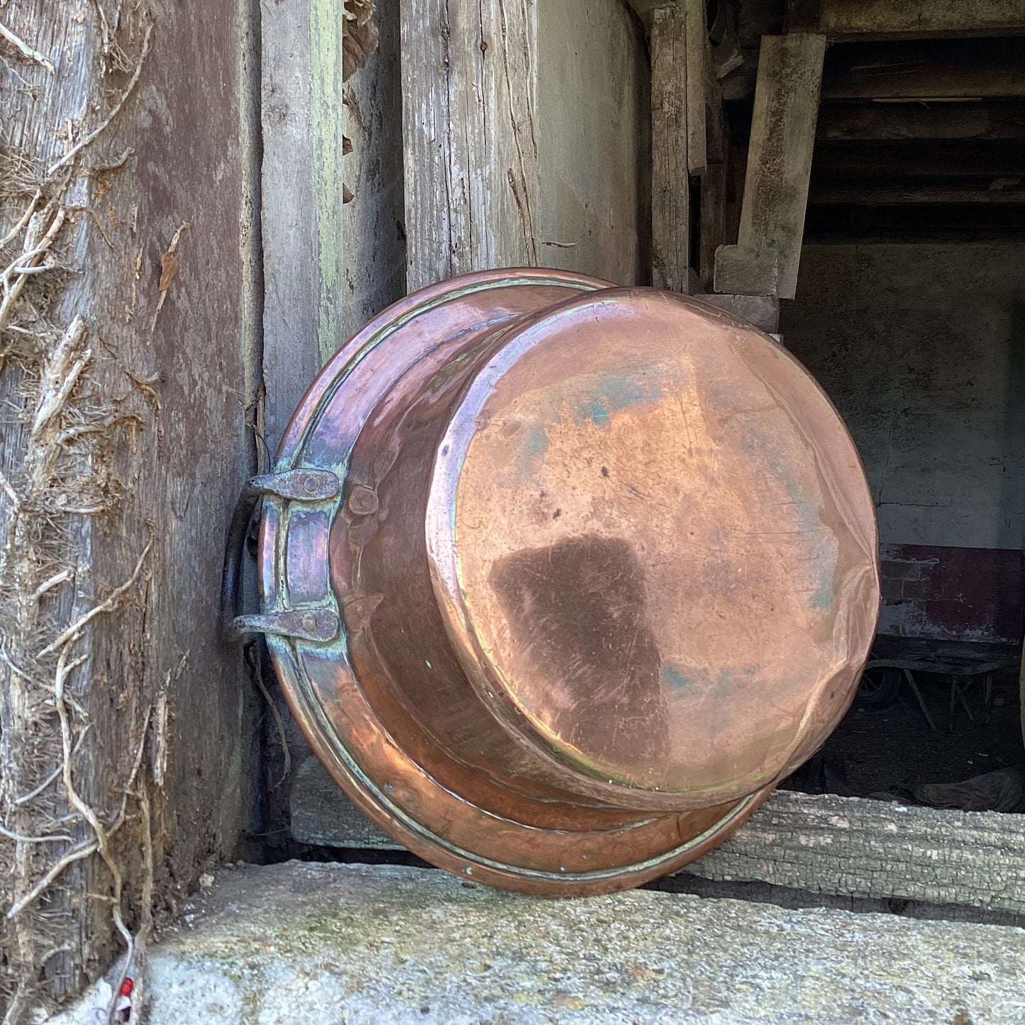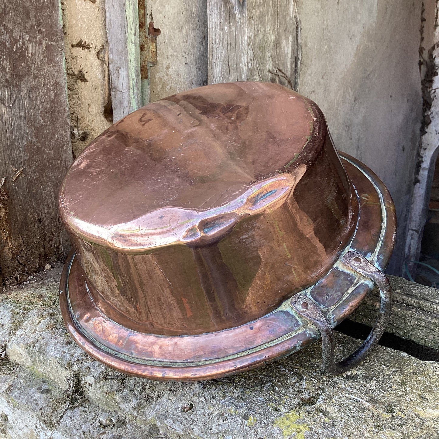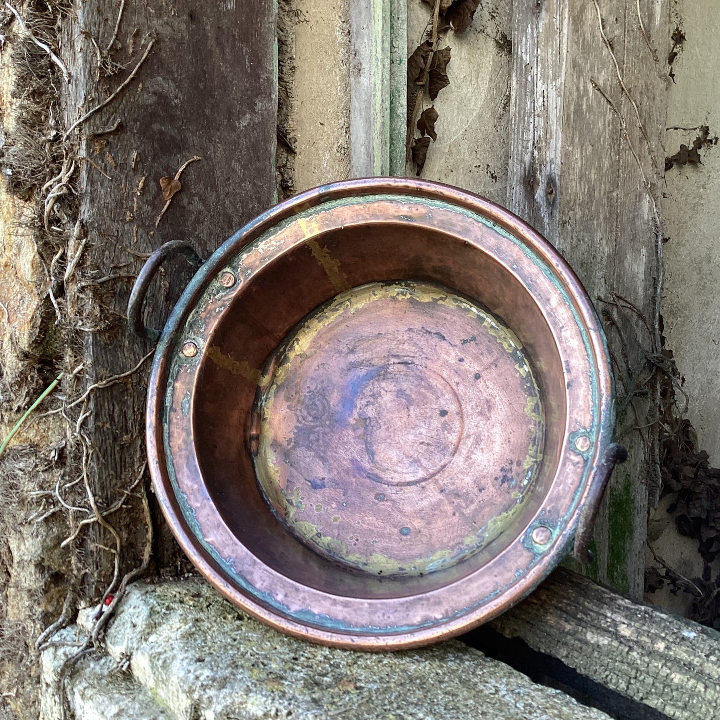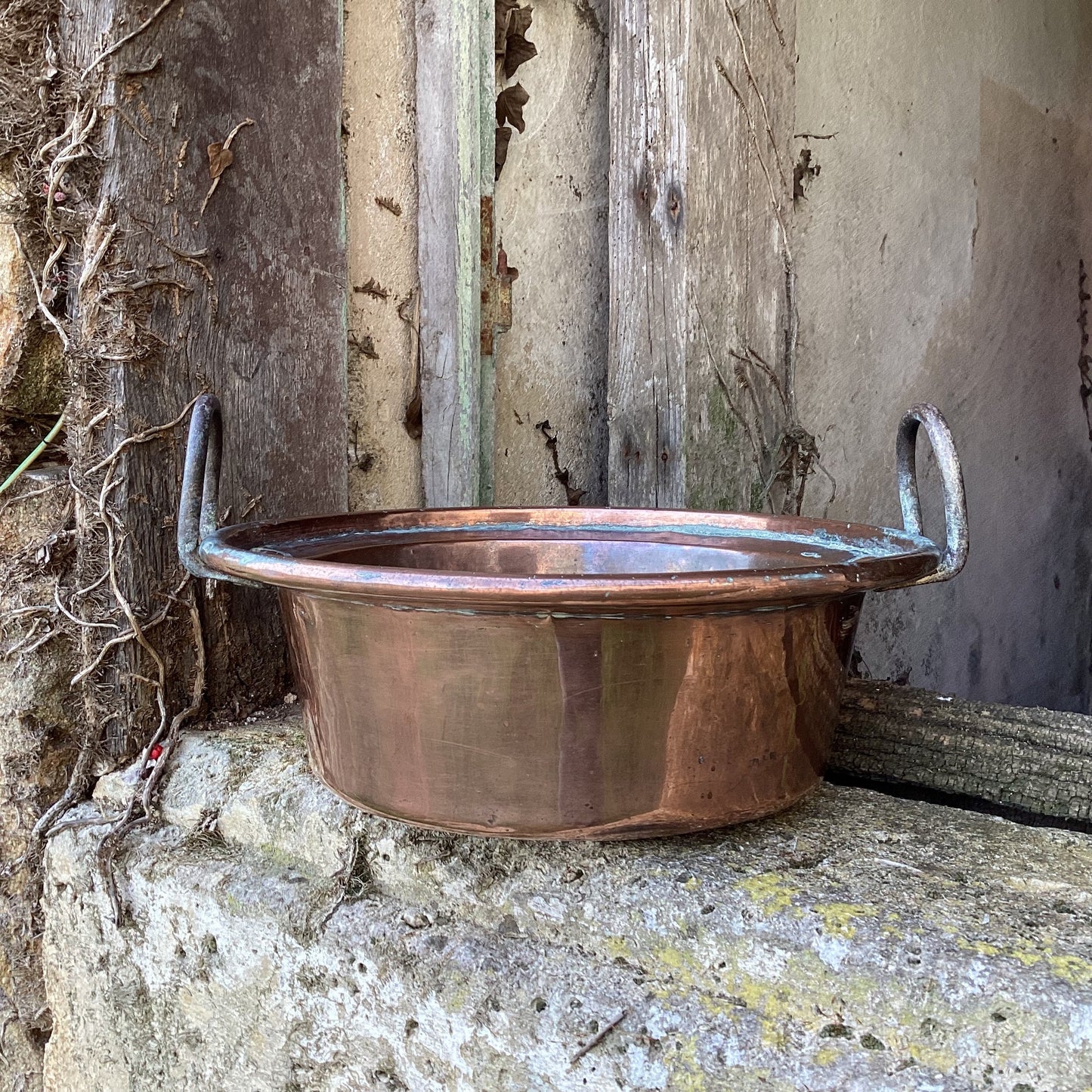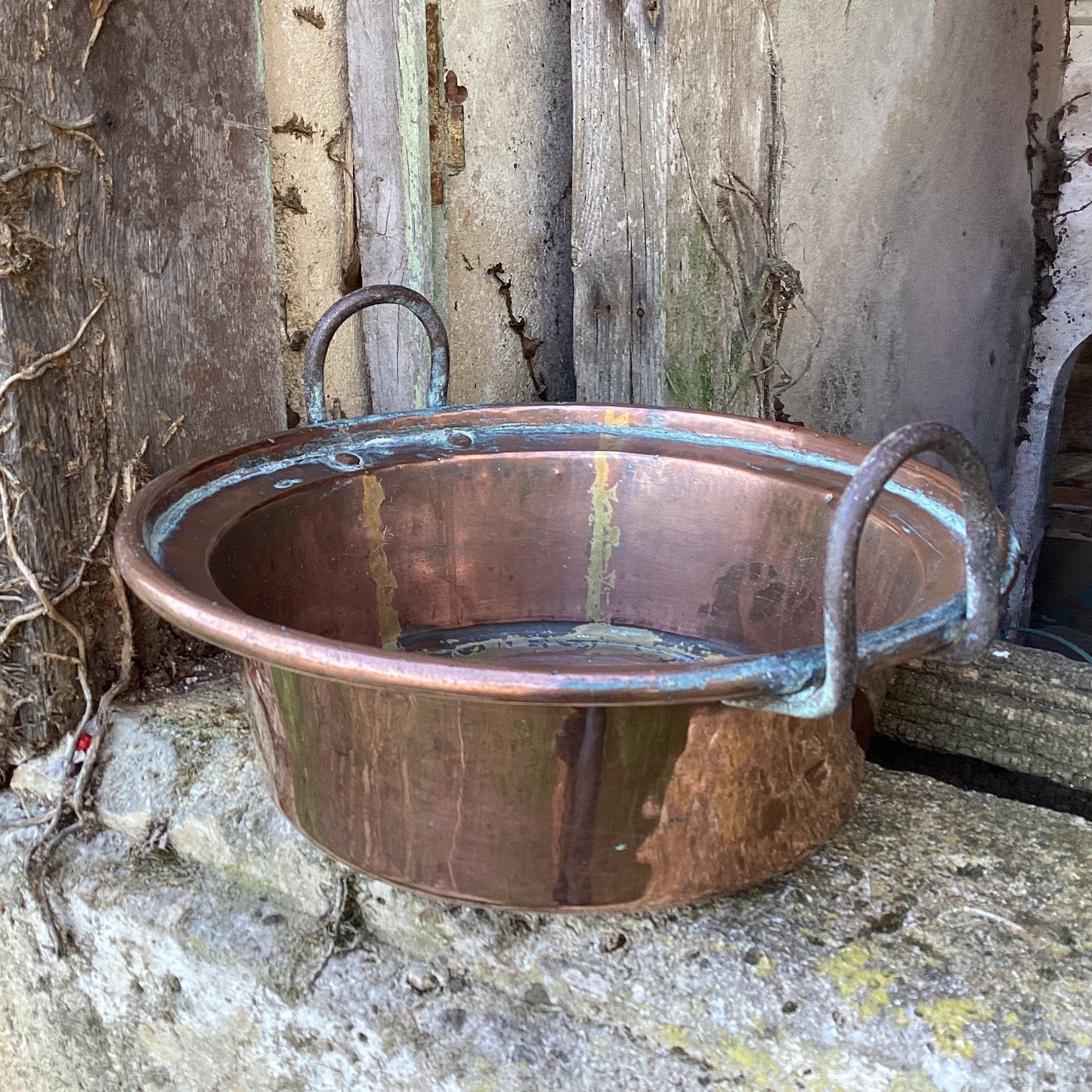 Antique French Copper Skillet: Large Handmade Farmhouse Planter