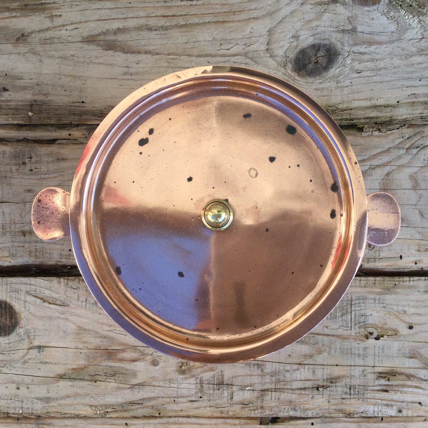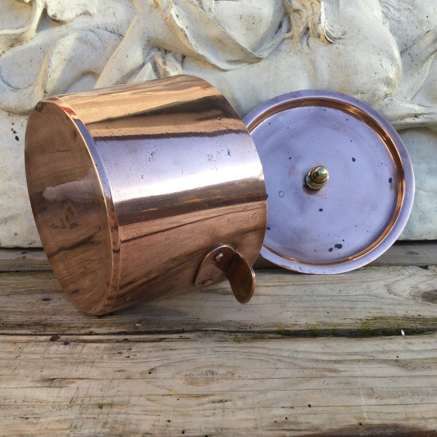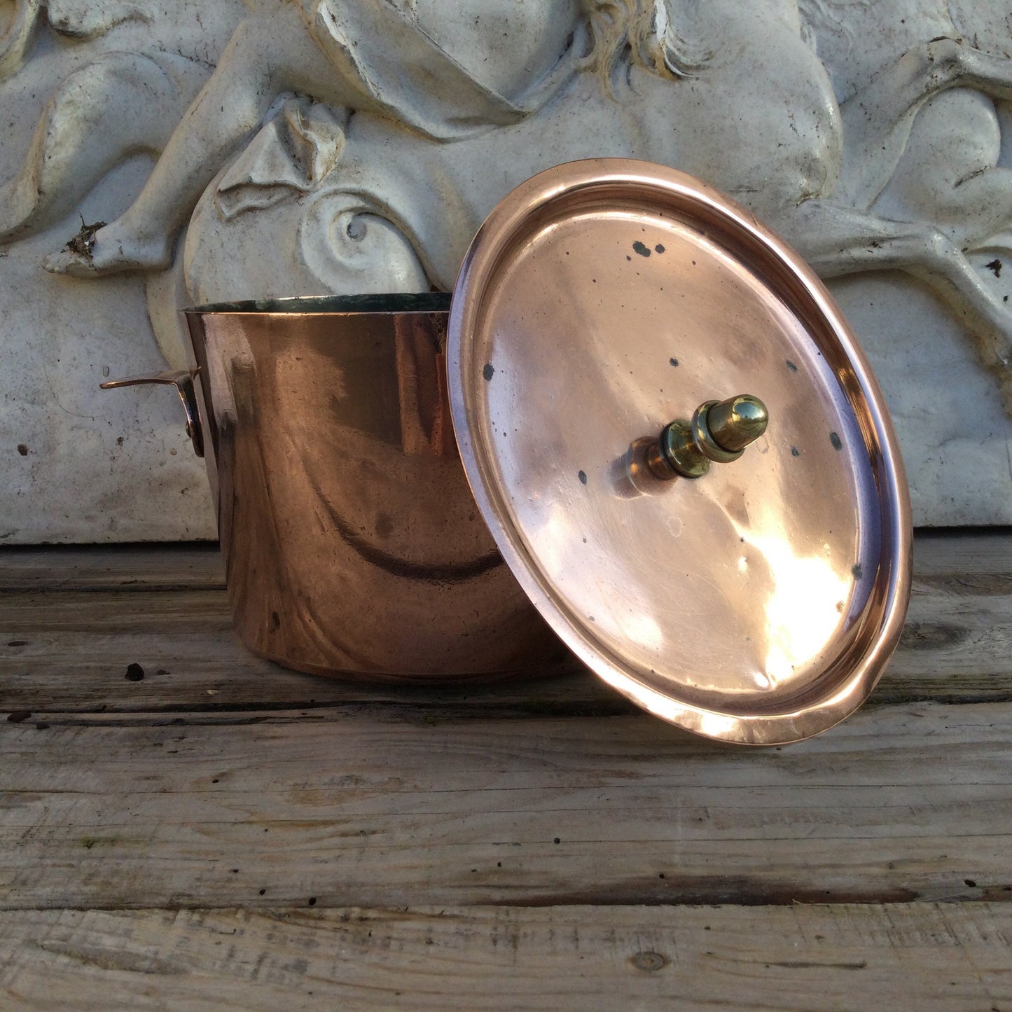 Little Copper Saucepan with Lid, Acorn Brass Handle, French Farmhouse Decor