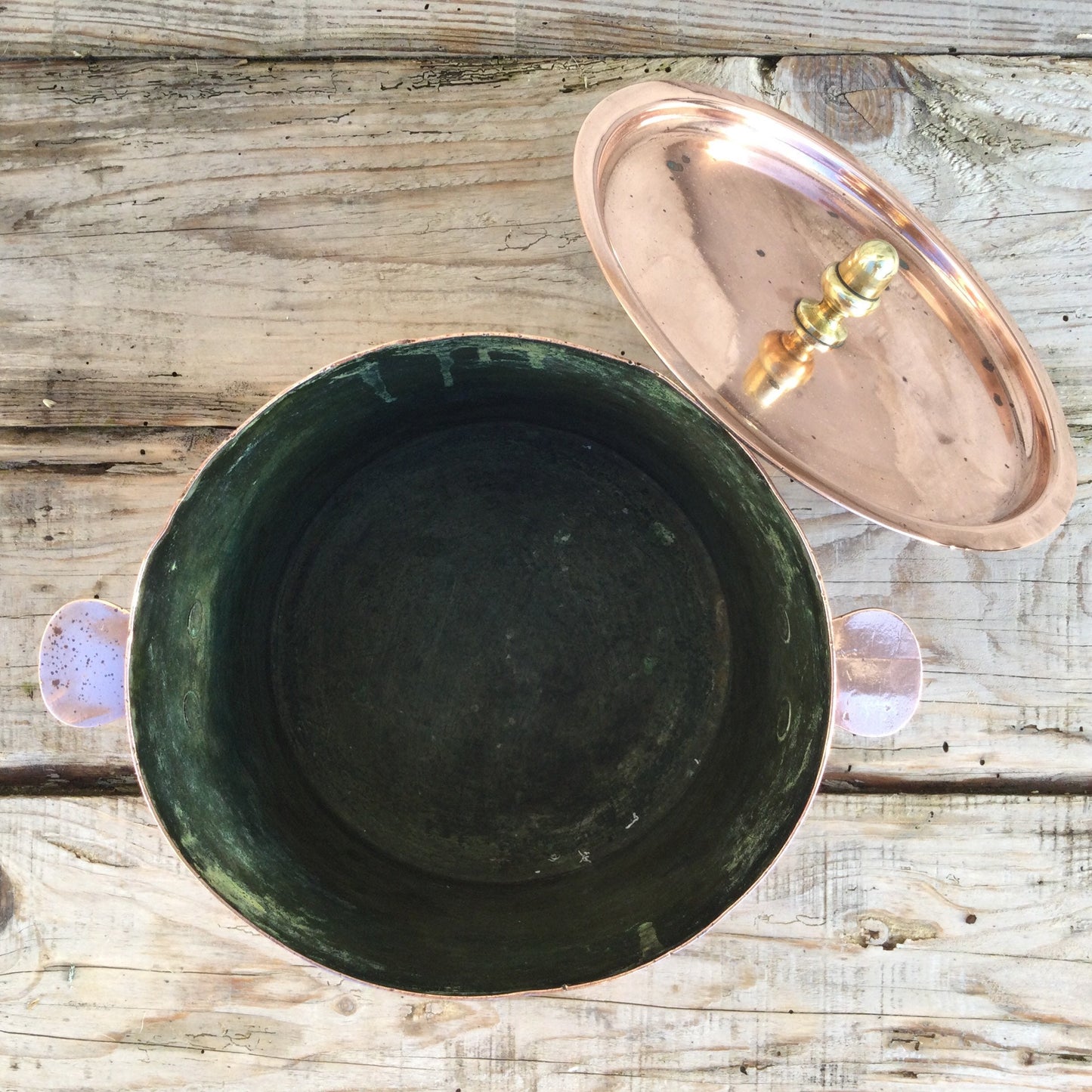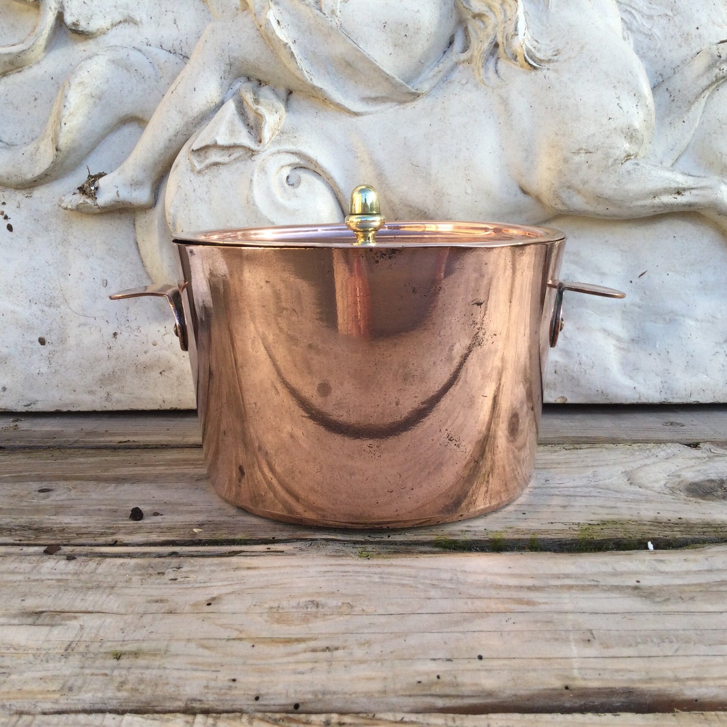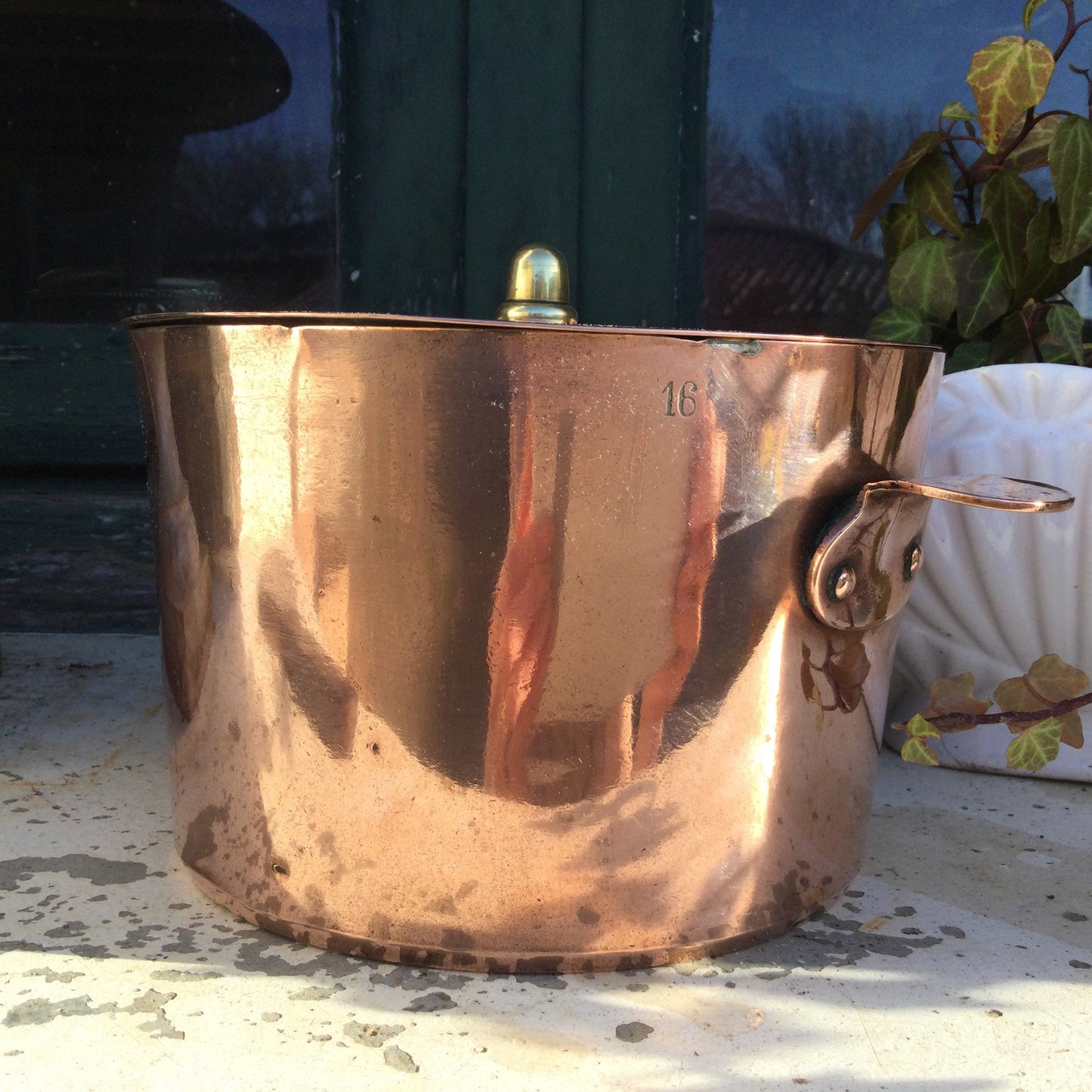 Little Copper Saucepan with Lid, Acorn Brass Handle, French Farmhouse Decor