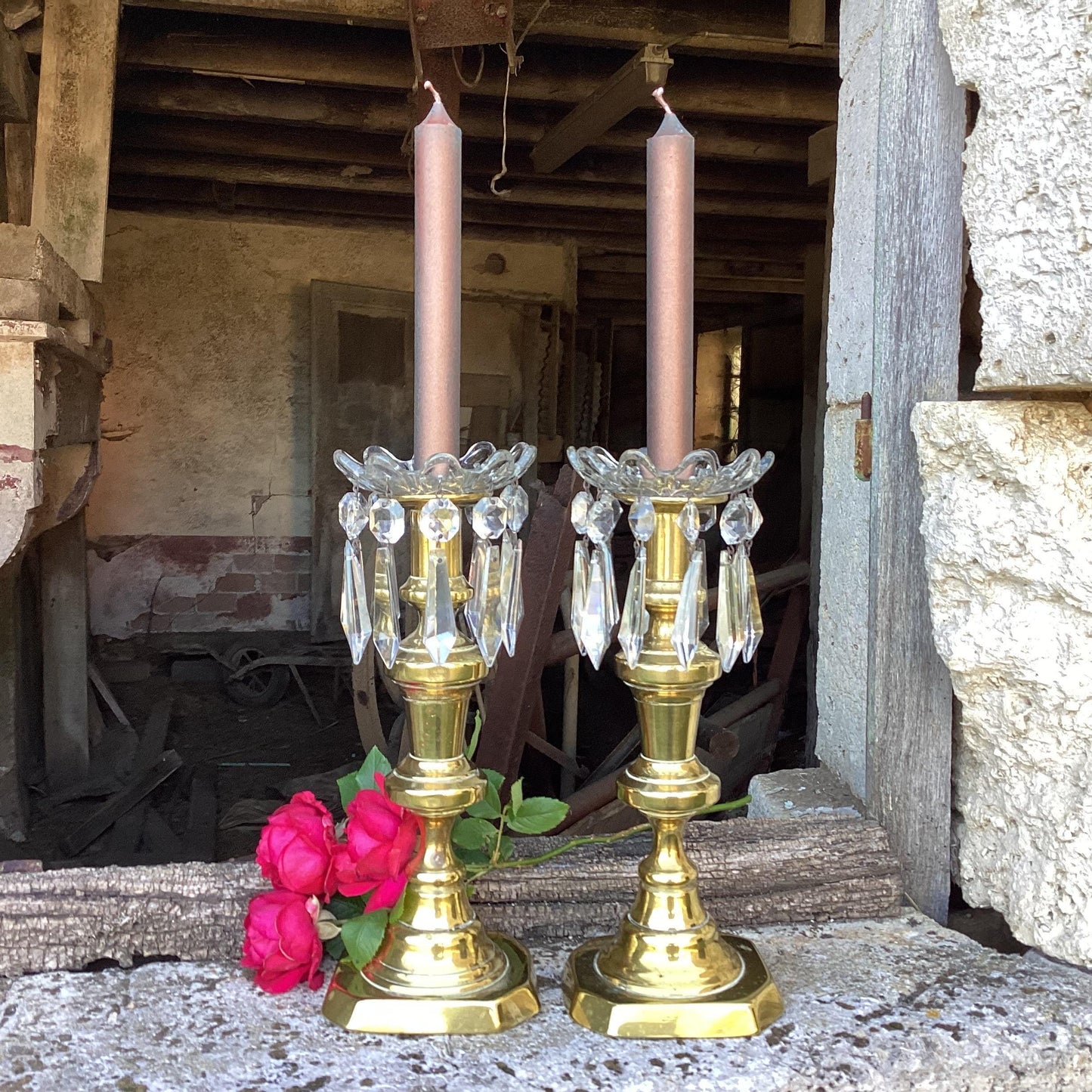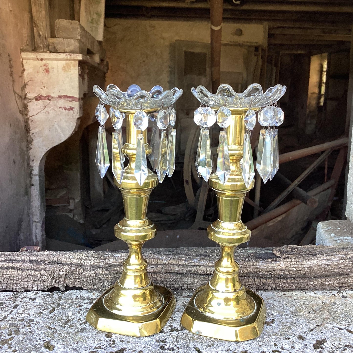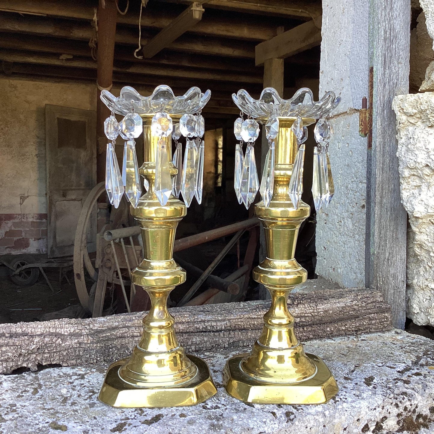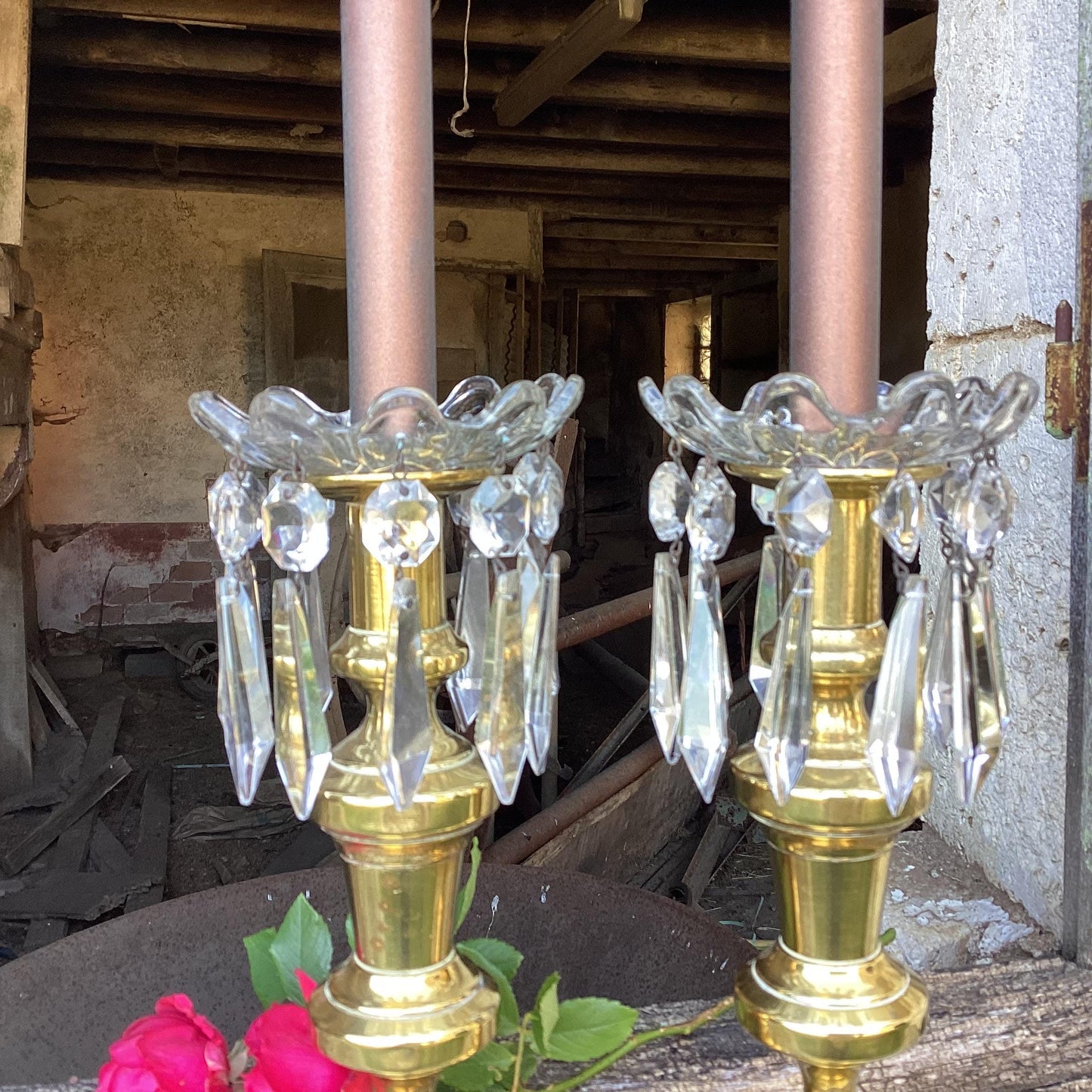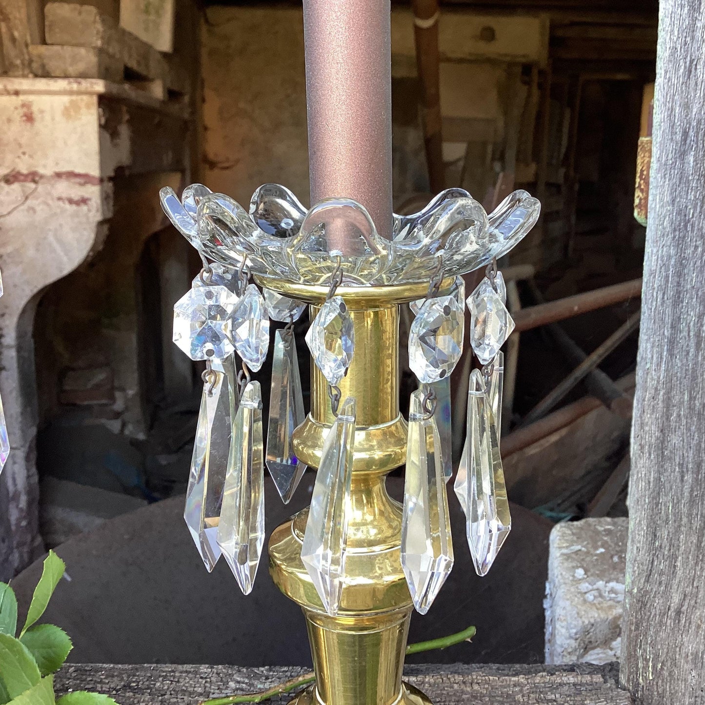 2 French Vintage Chandelier Bobèches : candle drip saucers, bowls, long crystal diamond drops