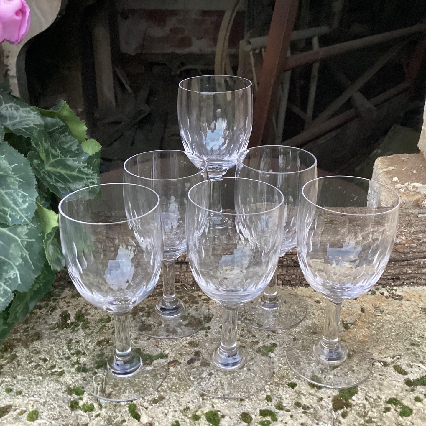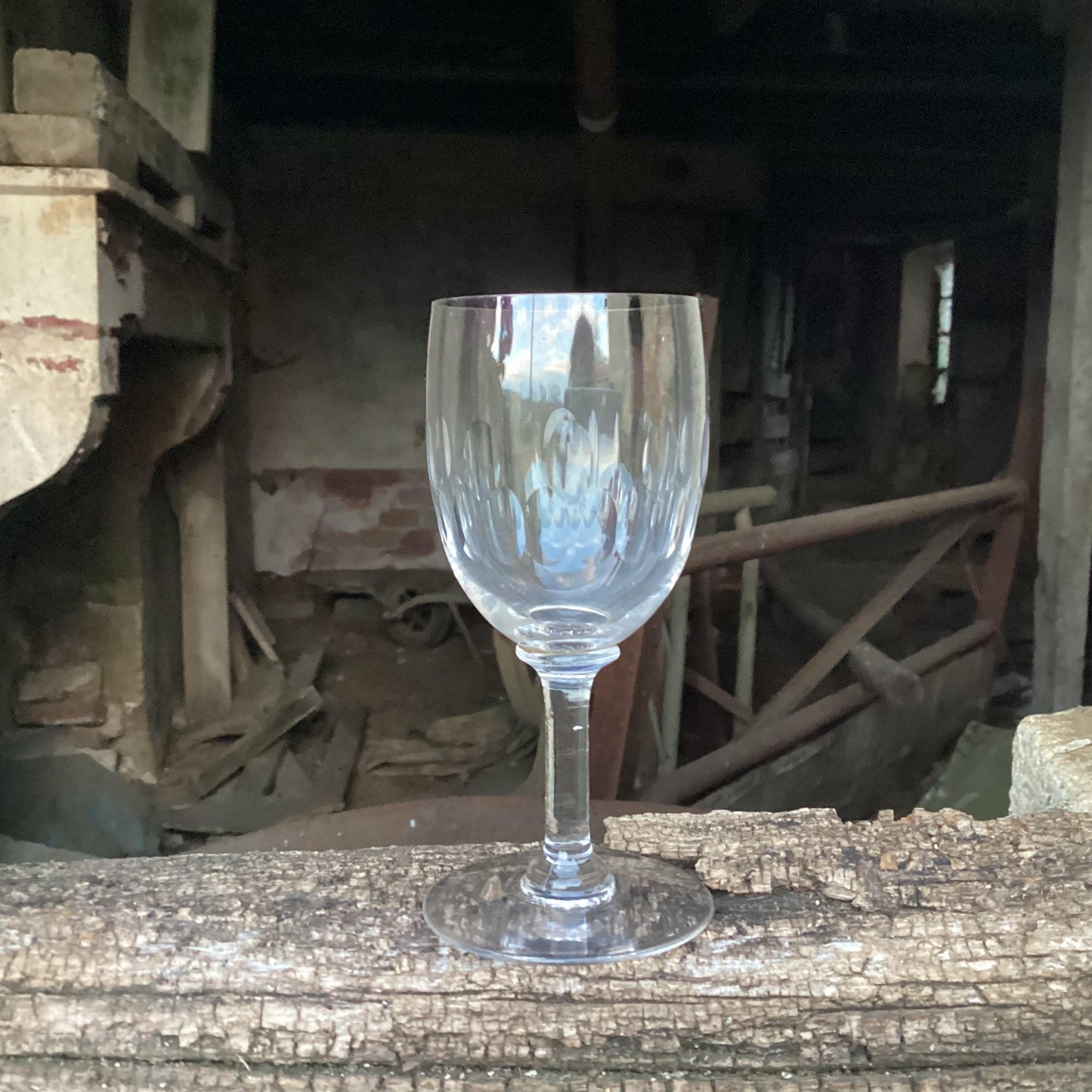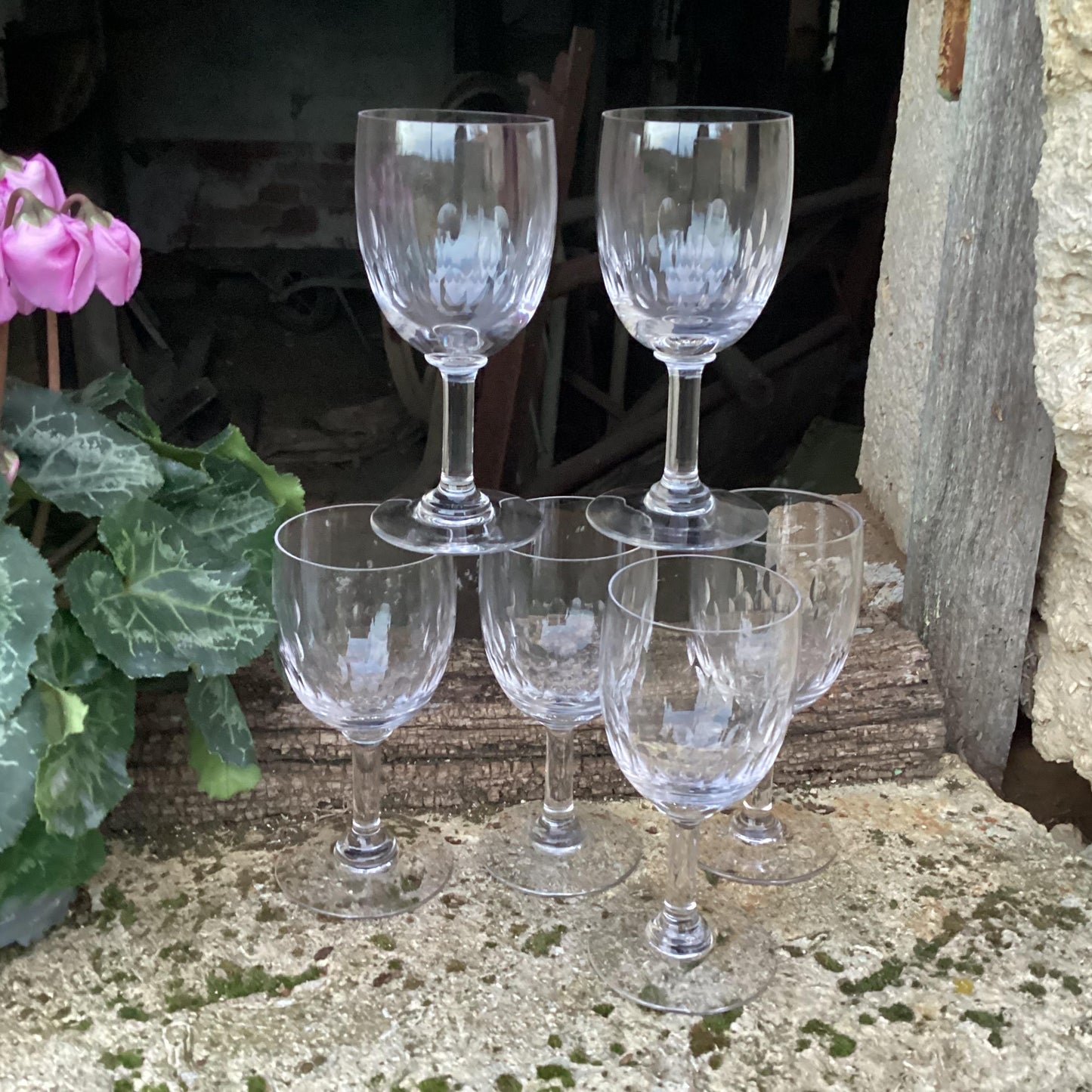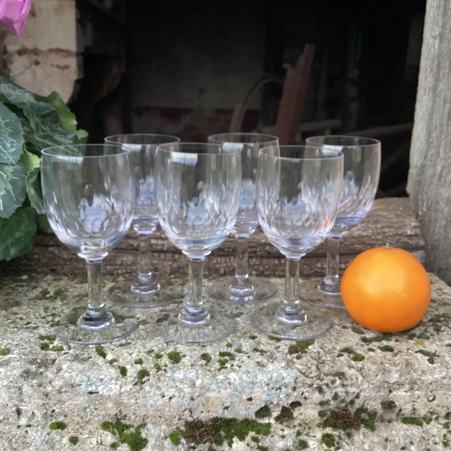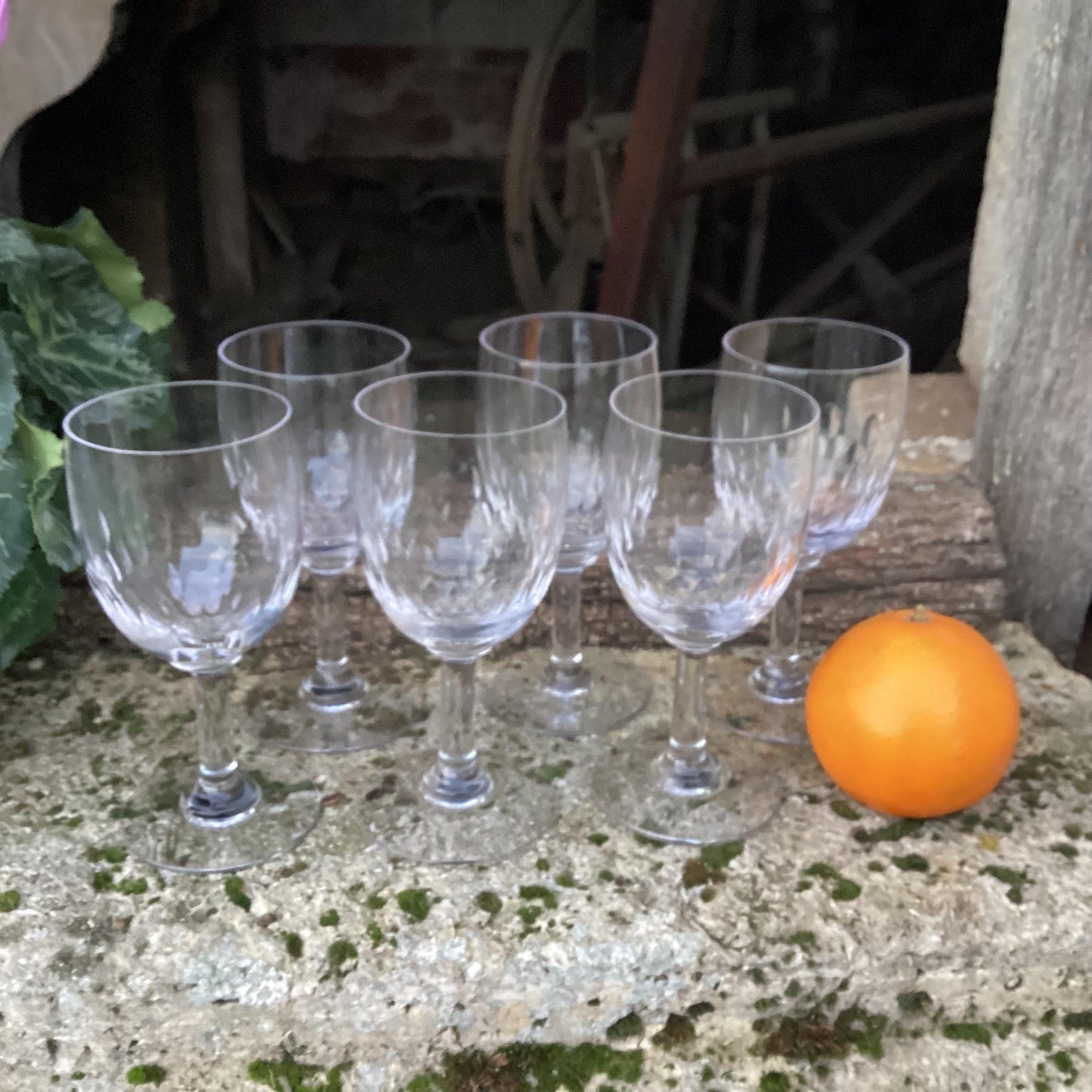 Vintage French Art Deco Crystal Glasses: Etched Aperitif Set of 6