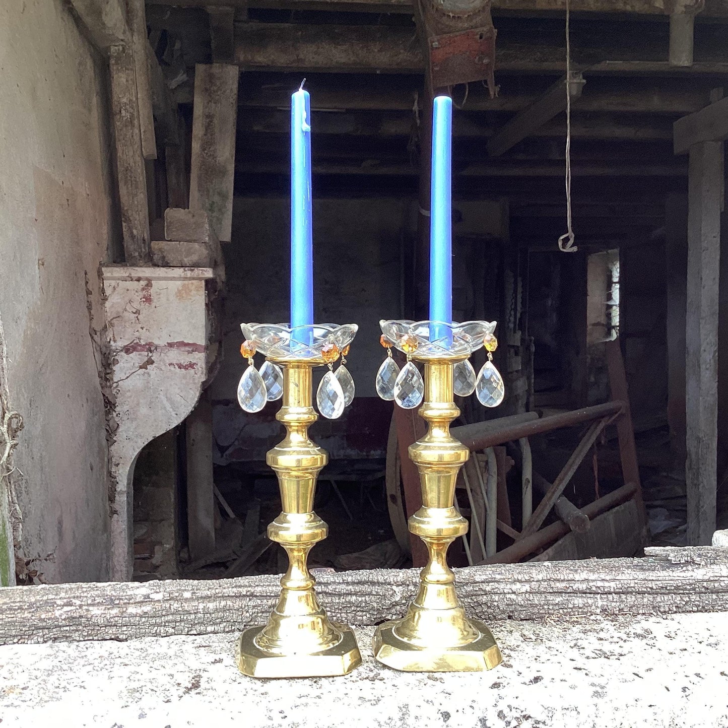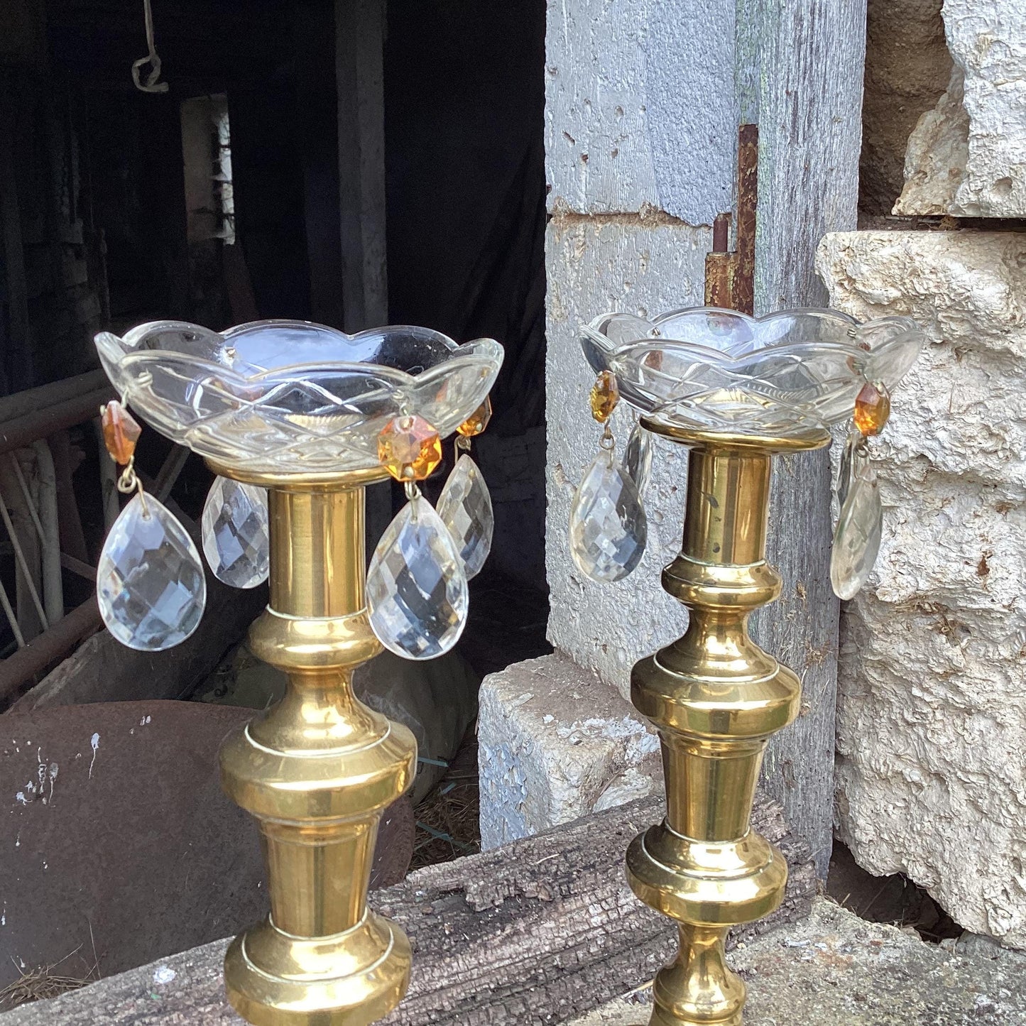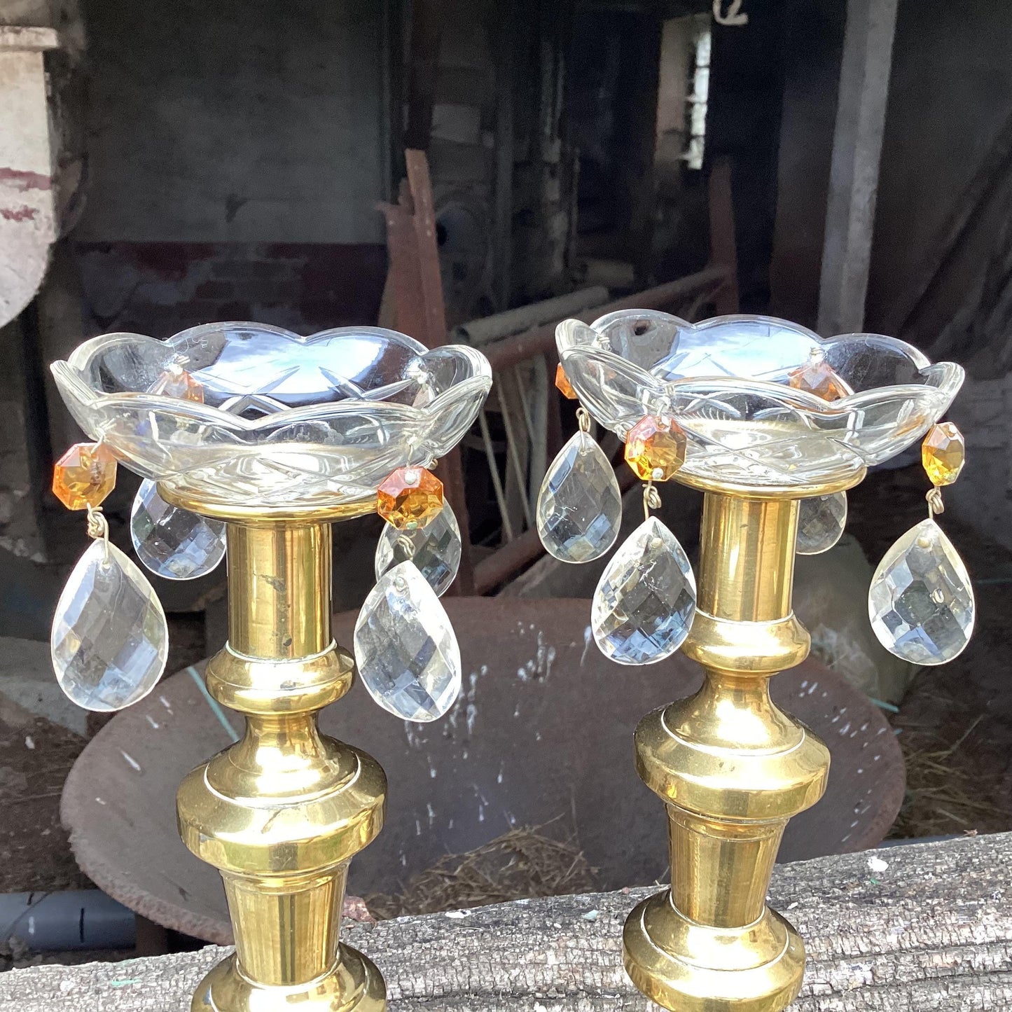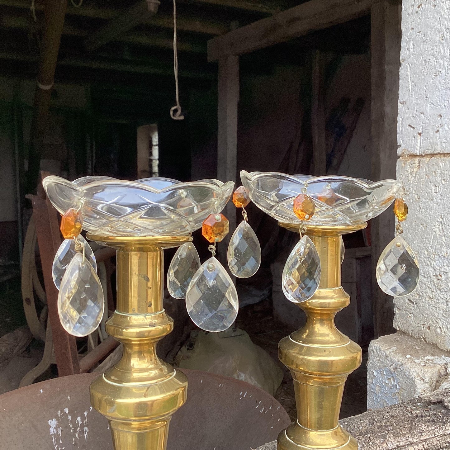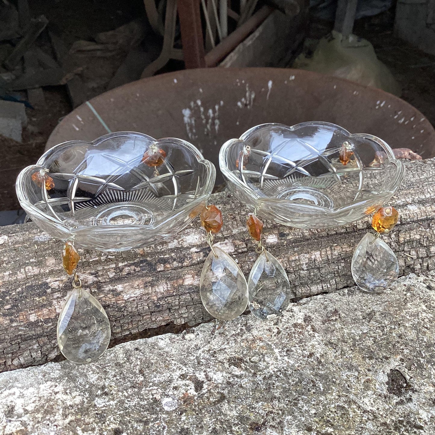 Vintage Glass Chandelier Bobèches with Crystal Drops : candle drip saucers, bowls