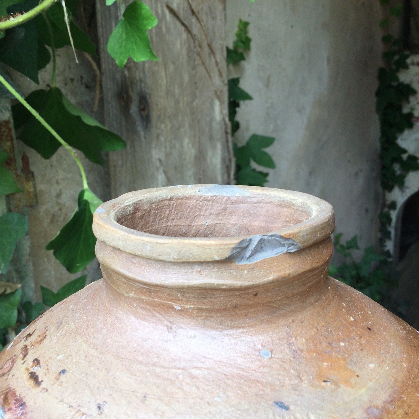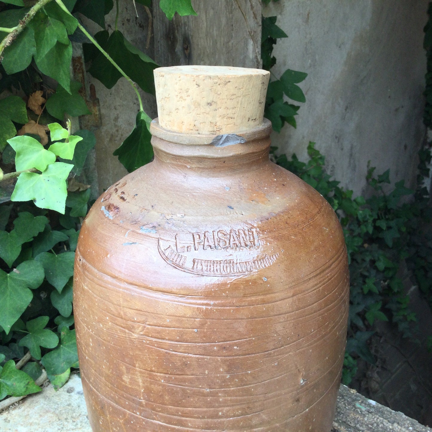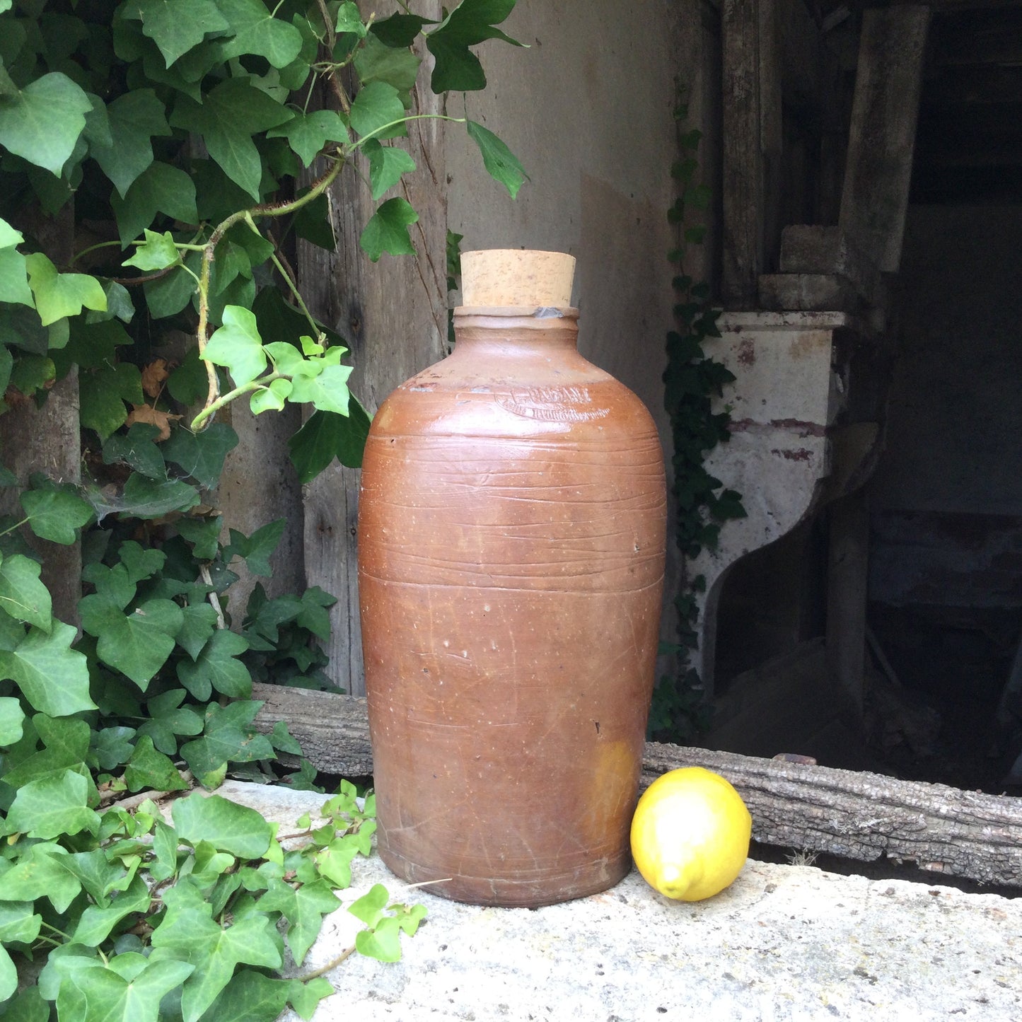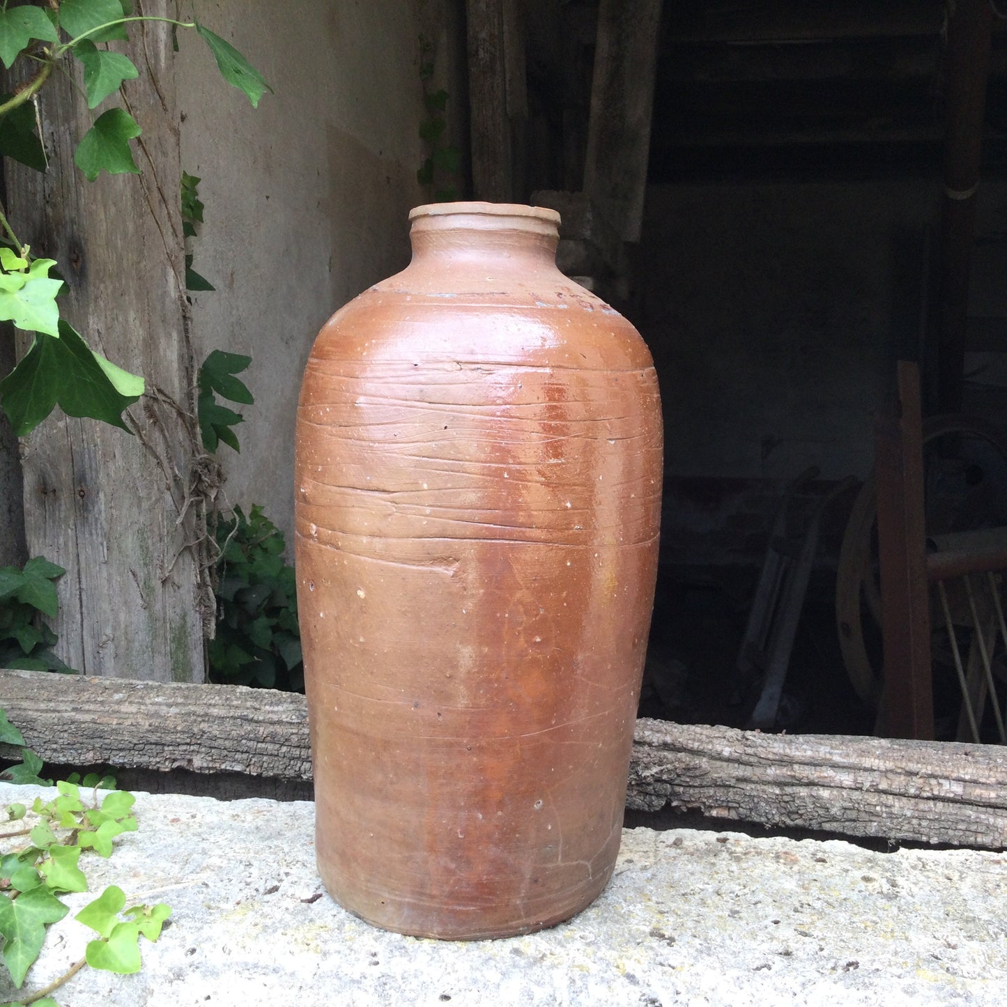 Antique French Glazed Storage Jar: Hand Thrown Pottery Bottle