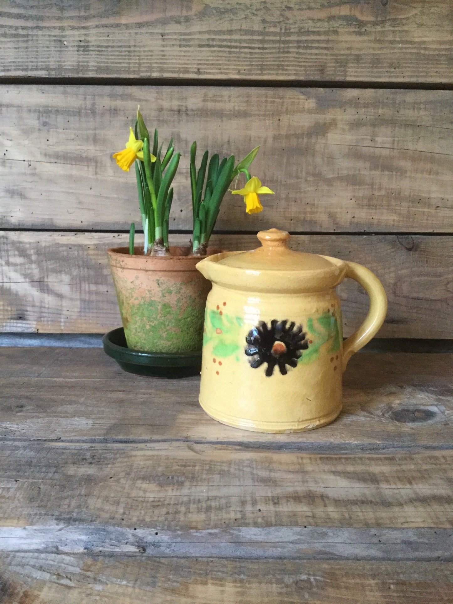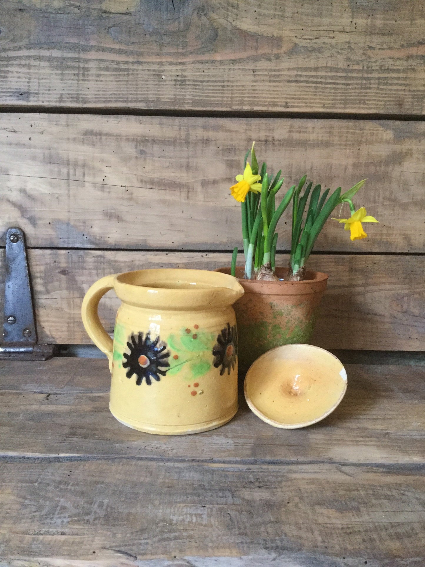 Add French Antique Creamer with Lid: Terre Cuite Milk Jug, Farmhouse Decor to the cart