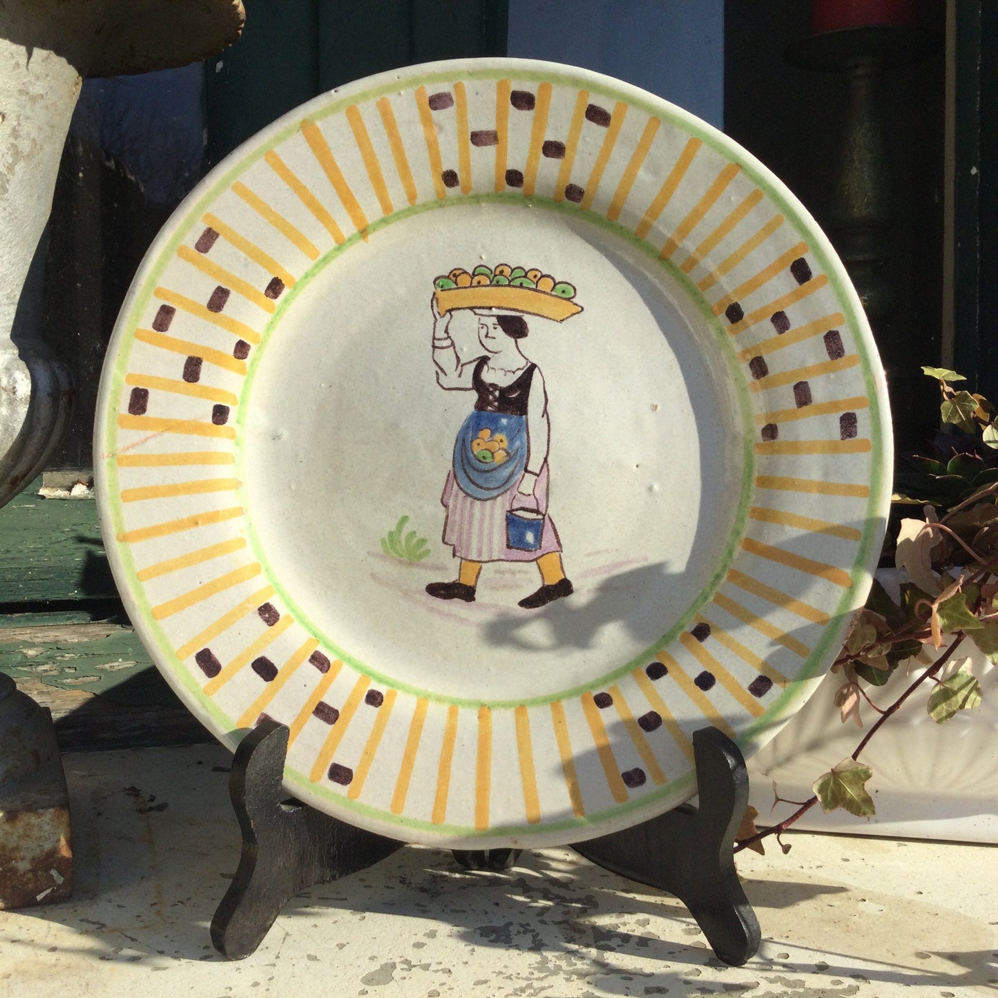 Add 1900’s Hand Painted Ceramic Plate : St. Clement or Luneville dish, French faience wall decor to the cart