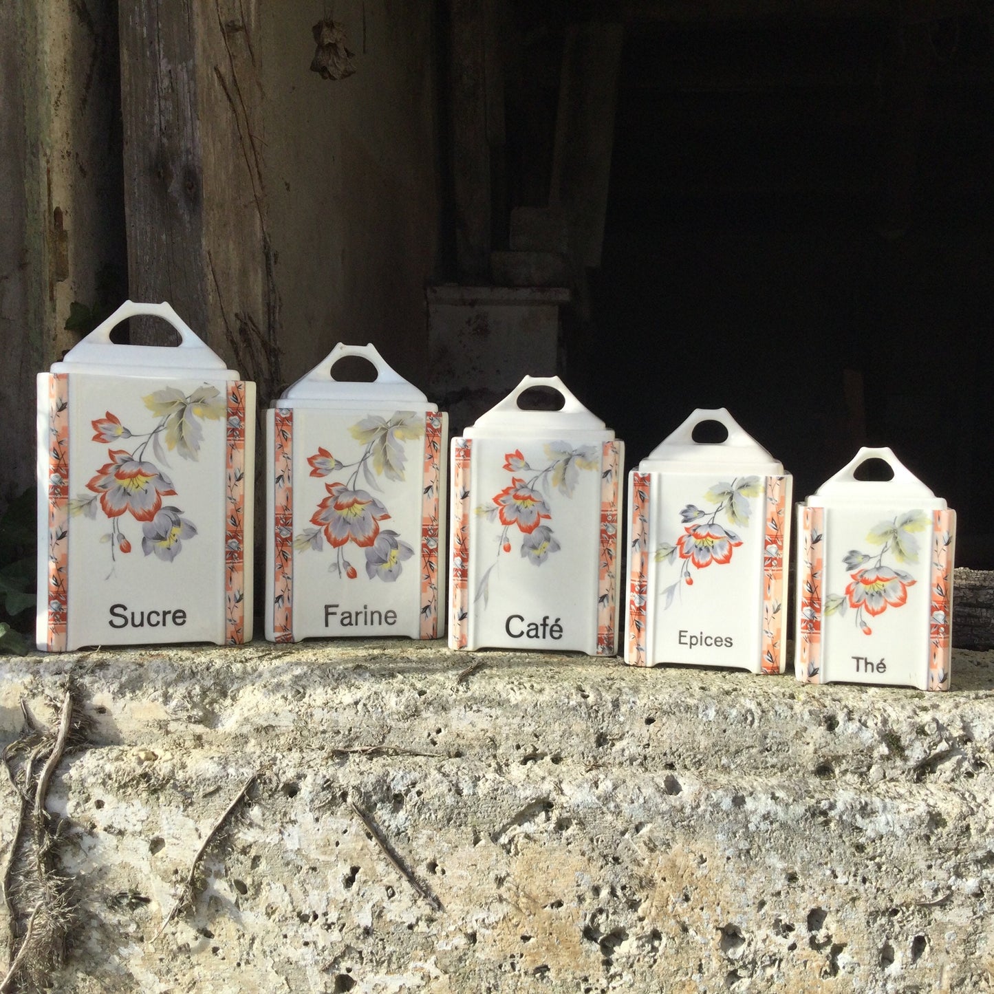 Add 5 French Vintage Storage Canisters : spice jars with lids, ceramic storage pots to the cart