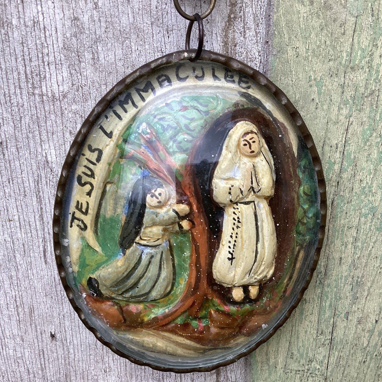 Add Religious Reliquary : decorative medallion, Virgin Mary before Bernadette to the cart